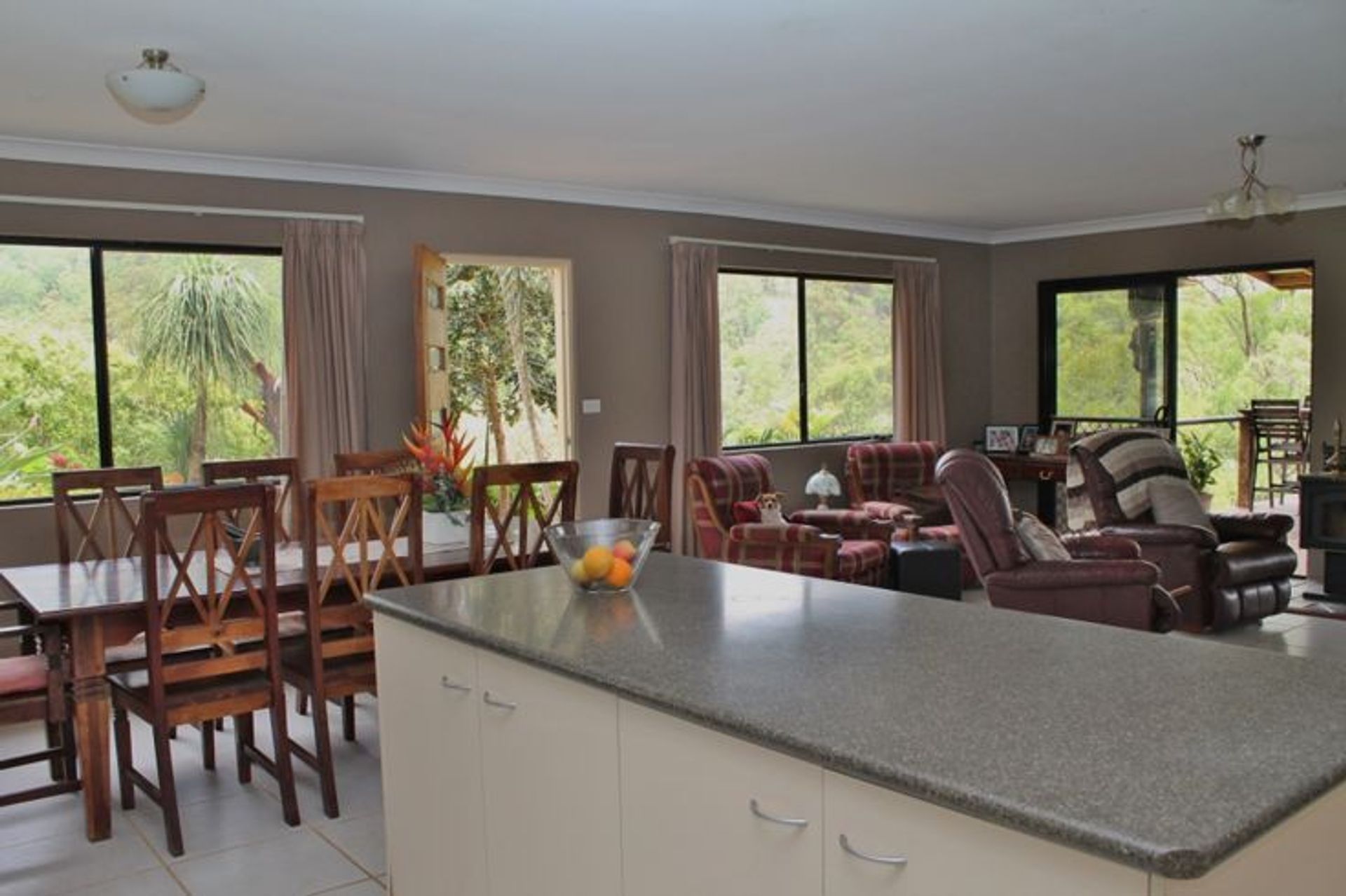 * Adjoining dining and living areas includes the whole family and is featured with air conditioning, a combustion wood heater & tiled floors for easy care living.