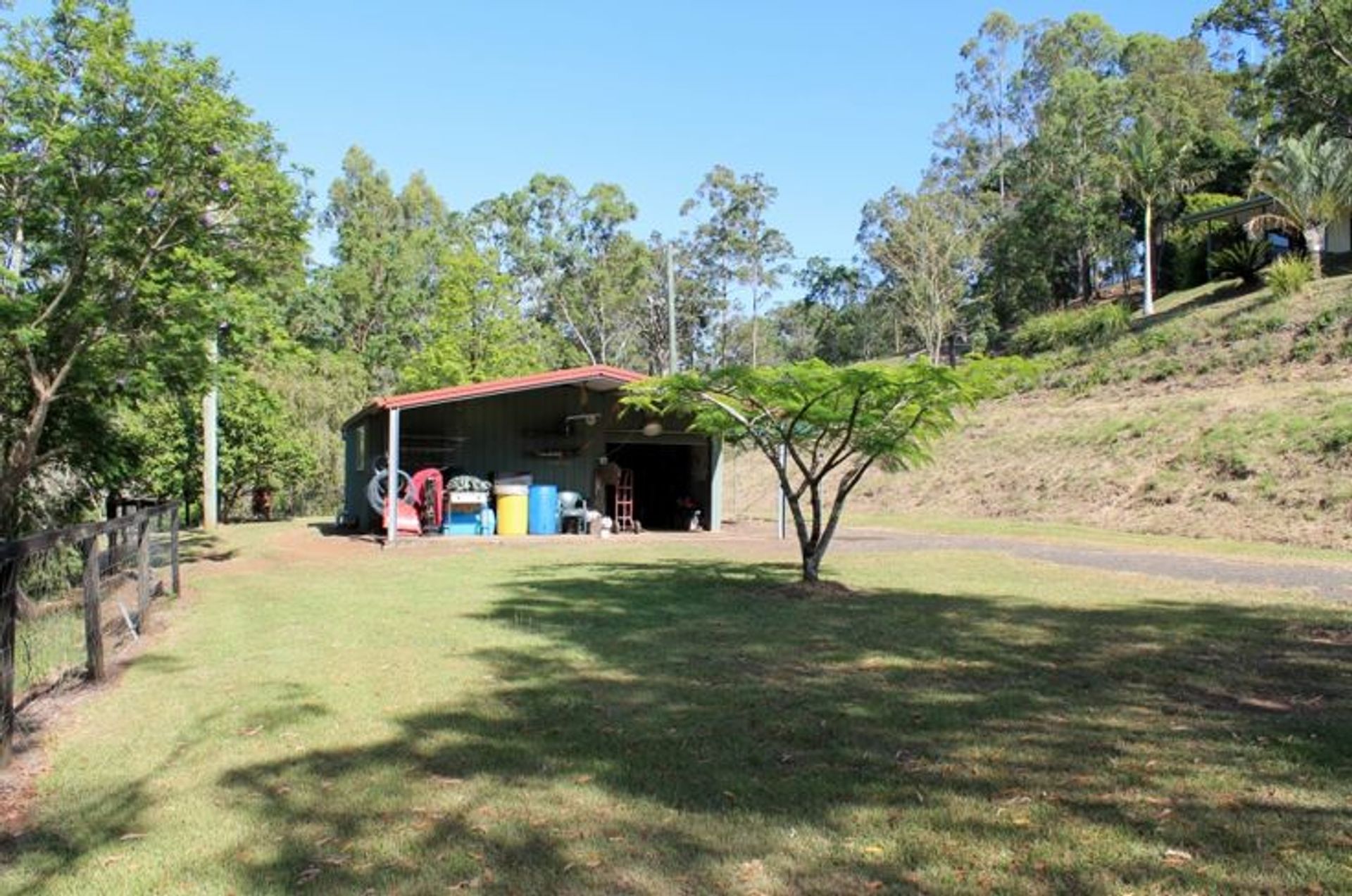 * A lockable 7m x 7.5m colorbond shed has a full concrete floor a shower with gas hot water and toilet. The front awning is 7.5m x 3.5m with concrete floor great for parking machinery