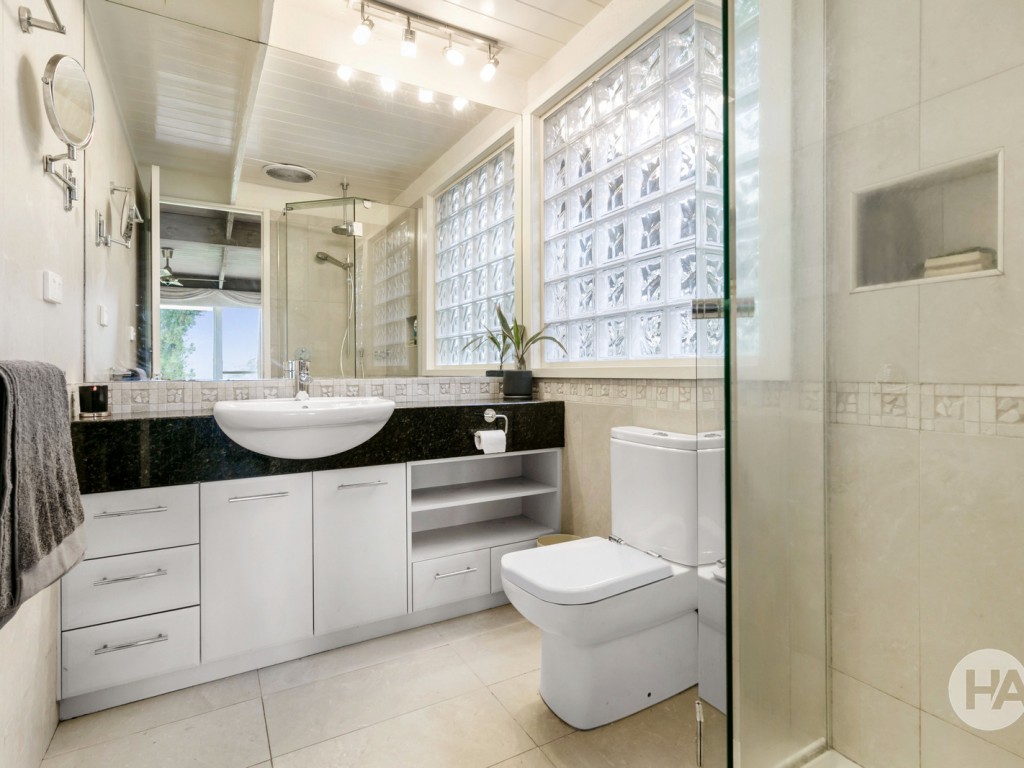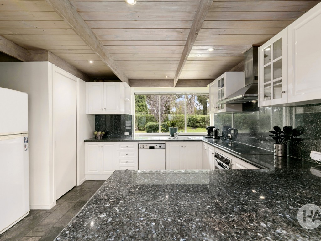 Stone splashbacks and bullnose benches add the desired level of style to the kitchen, complemented by a generous walk-in pantry and induction cooking. Two alfresco areas make the property’s gardens even more irresistible, surrounding the home with a wealth of well-established trees and greenery where the kids are free to roam.