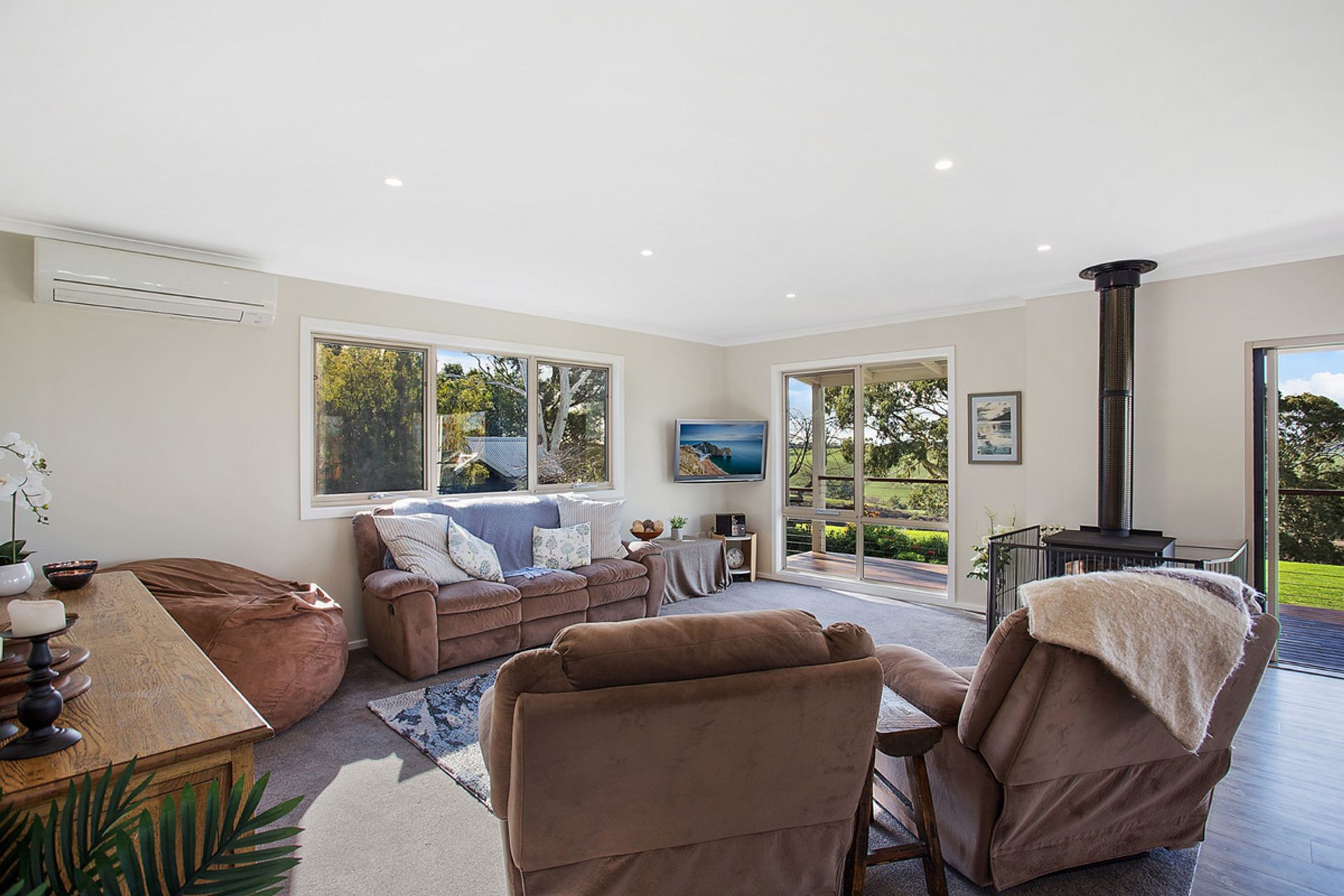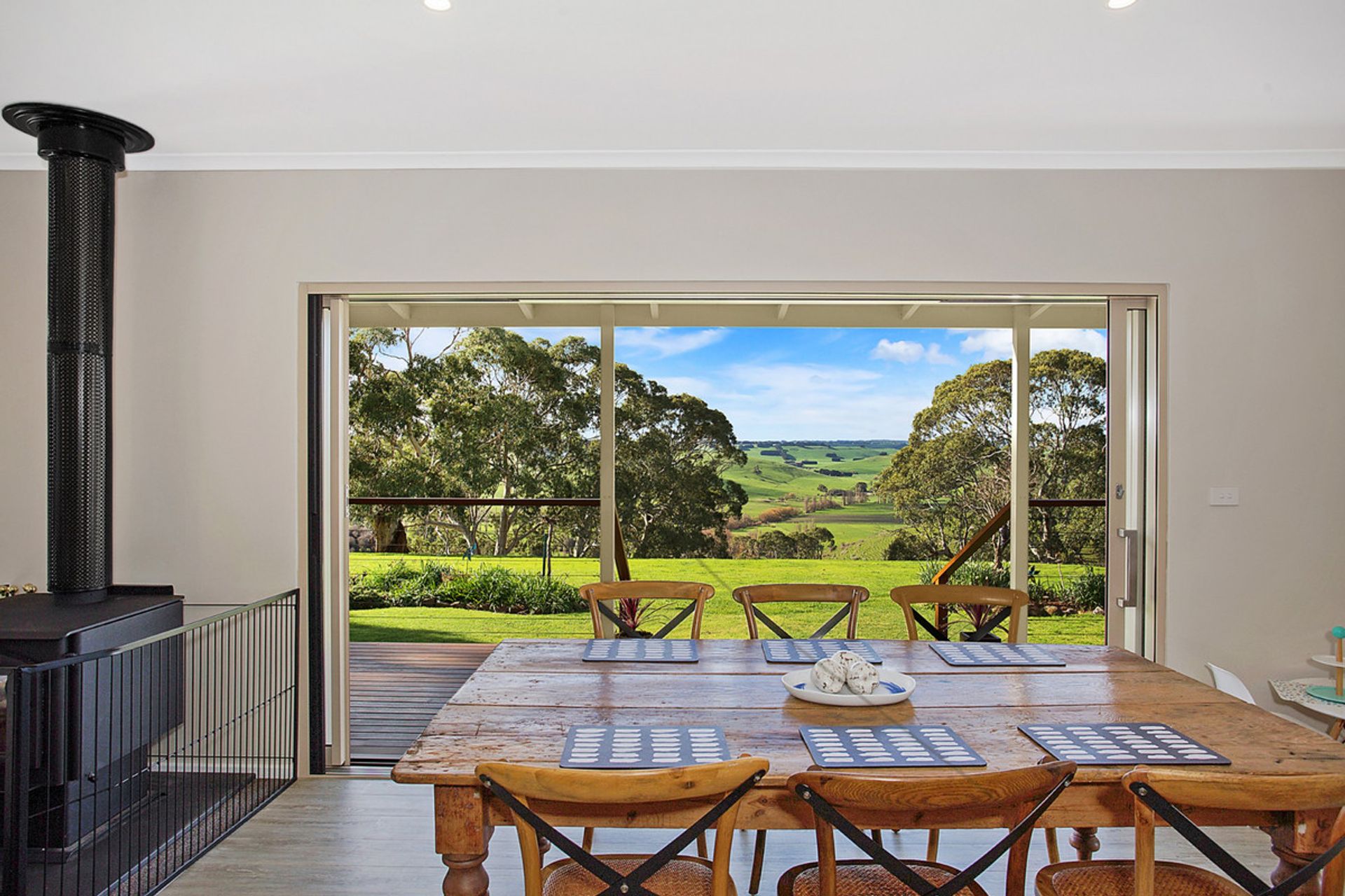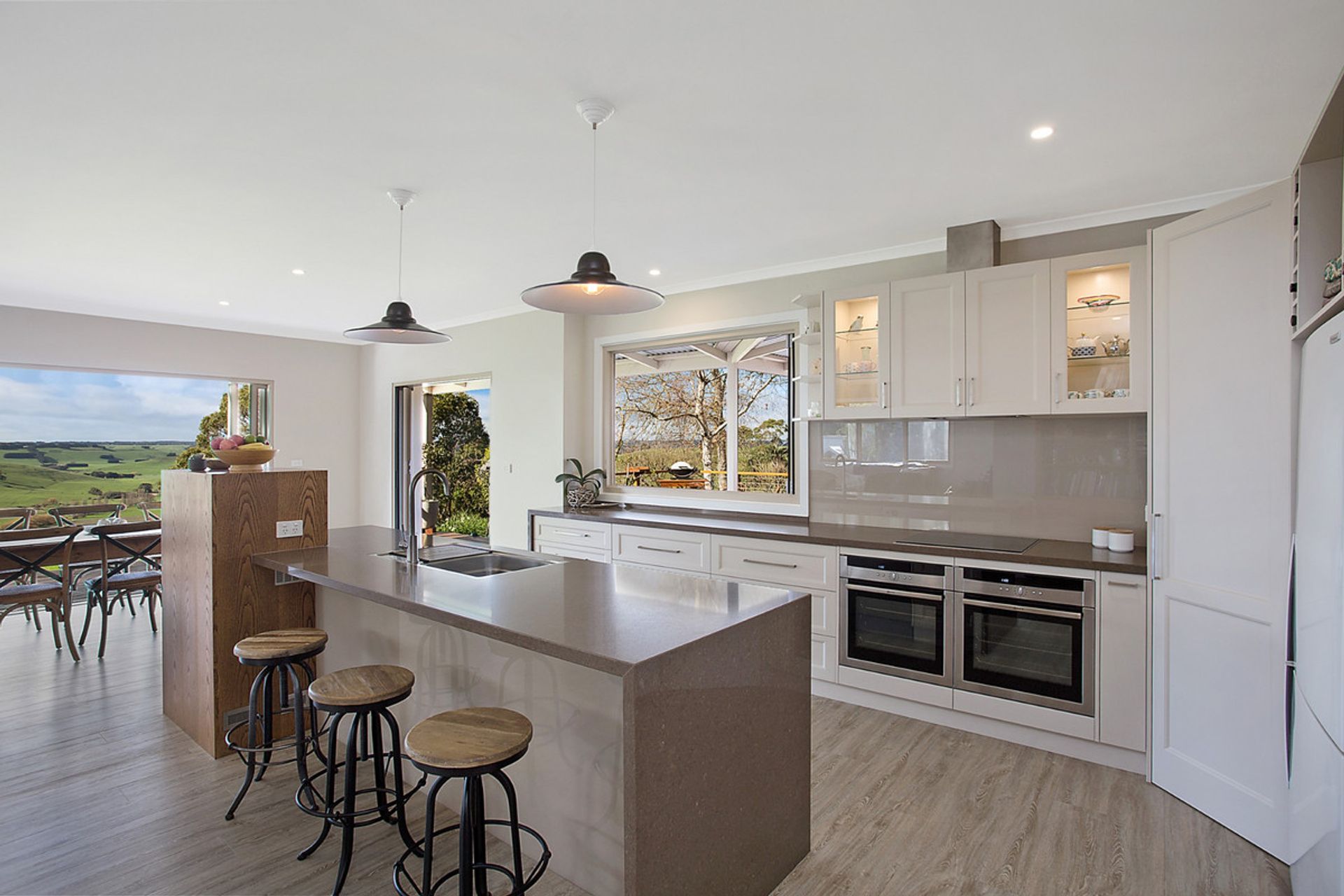 This sophisticated renovated brick veneer / WeatherTech home offers a beautifully designed open-plan kitchen/dining and living area, with LED down lights throughout and kitchen boasting stunning Caesar stone bench tops, duel side by side Pyrolytic wall ovens, Induction cook tops, built-in wine fridge, dishwasher and quality fittings. The dining area has double glazed state of the art sliding doors that open out onto your own private deck area that takes in the tranquil views of Cobden's rolling hills.