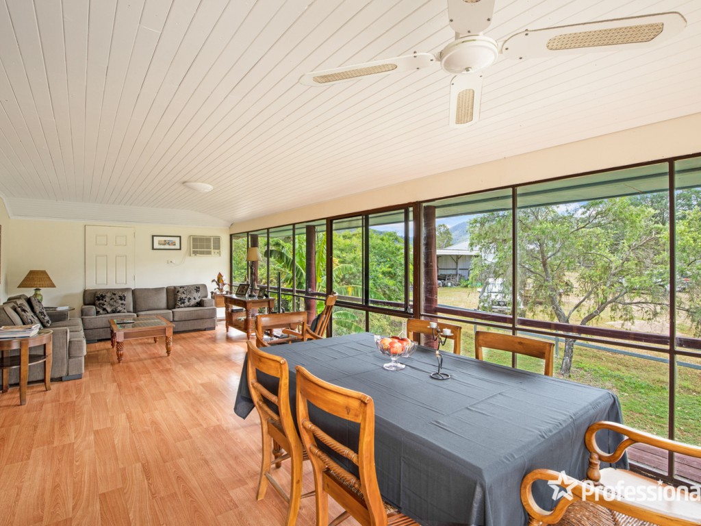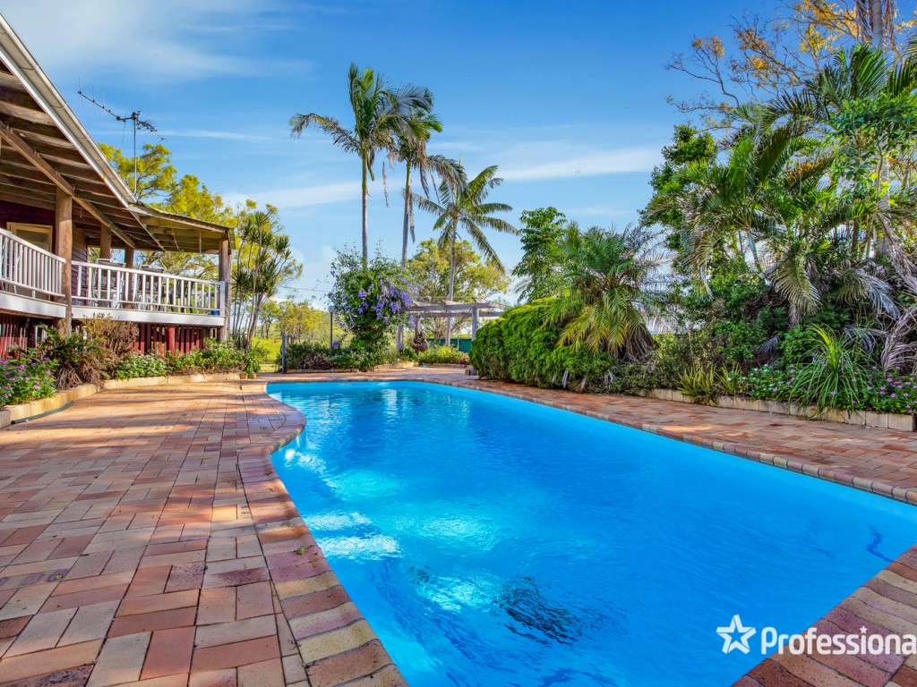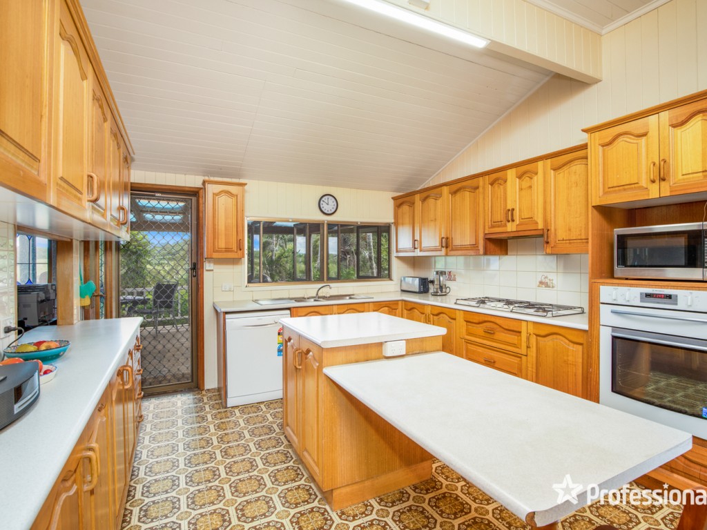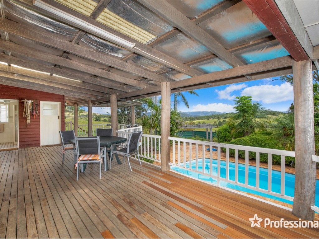The homestead is located towards the back of the property with great views in all directions. The comfortable highset three bedroom Queenslander features high ceilings, pine vj walls, large air-conditioned living area, sunroom/sleepout, lounge room with woodburning fire box. The central kitchen has plenty of storage, island bench, dishwasher, gas cooktop and room for a large fridge. The back verandah overlooks the inground swimming pool and a scenic view of the western hills.
