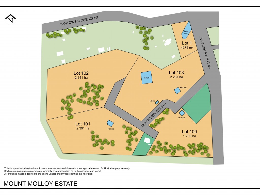 * Lot 103 (2.267ha with timber mill shed and house)