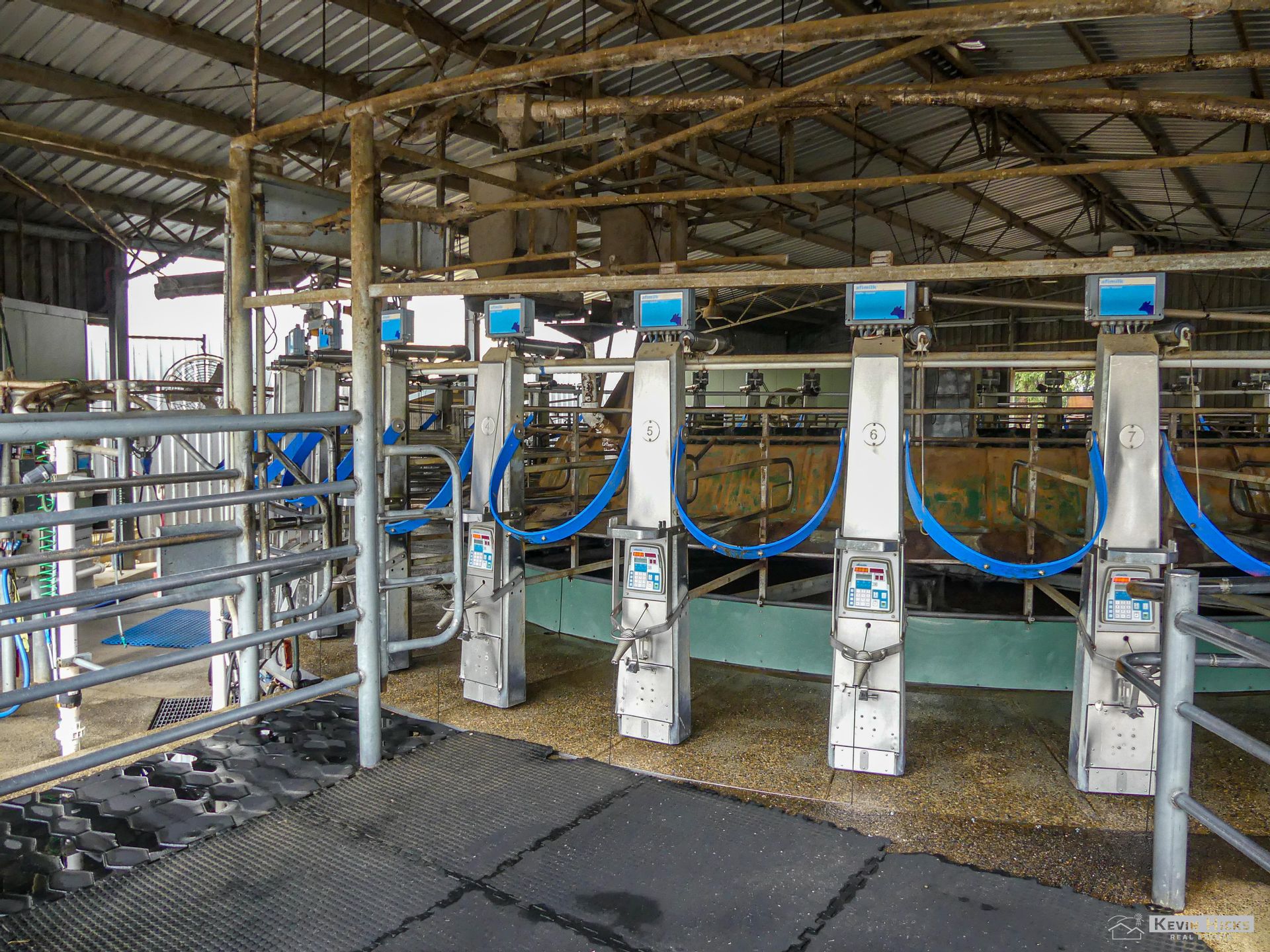 2 head feed system for protein and grain, teat scrubber system. Fully Rubber matted 300 cow capacity yard, Yard Blaster cleaning, excellent vet race facility with lighting / power and storage shed.