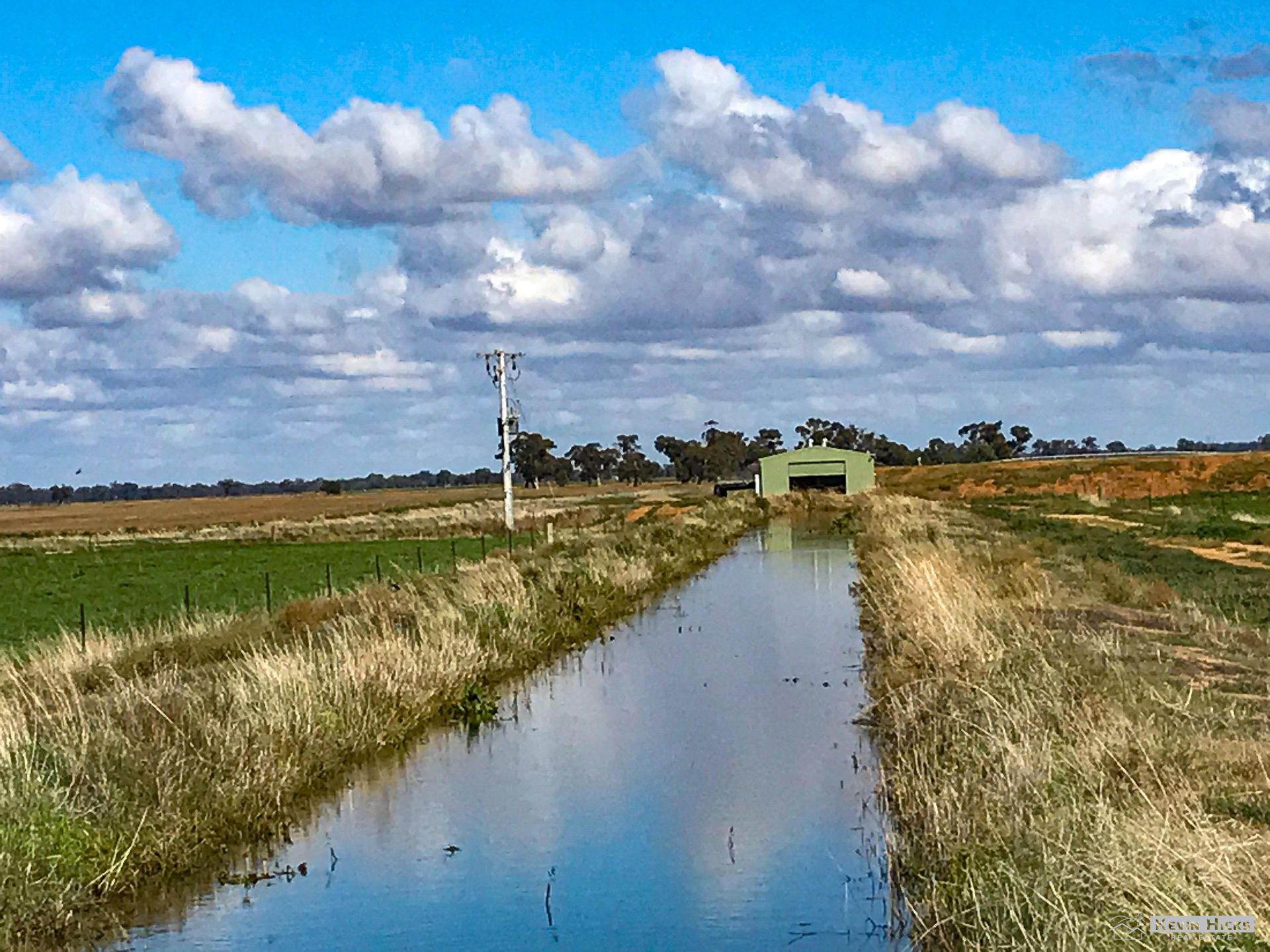 The irrigation system is a feature and designed for the fast and efficient flood irrigation off the main backbone channel. 1 GMW service point (north boundary) supplying up to 40 meg per day flow rate, mostly large Padman outlets to lasered paddocks, 100% recycle systems in place. Irrigation layout allows for many areas to be irrigated at the same time, using service point and recycle pumps providing up to 60 meg availability.