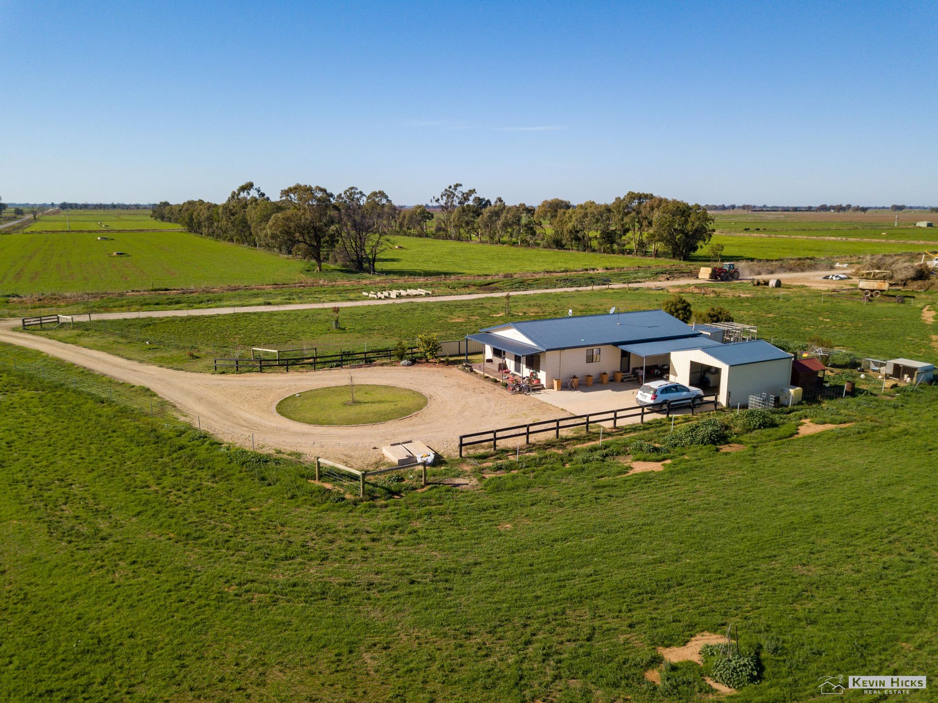 The property comprises 6 titles of land with a total area of 311.5ha (770acres approx.). Frontage to Powerline Road on 2 fronts, Langan Road to the east and Chapel Road to the West. Chapel Road provides bitumen access to Cobram and Katamatite both 10km away and Shepparton 40km.