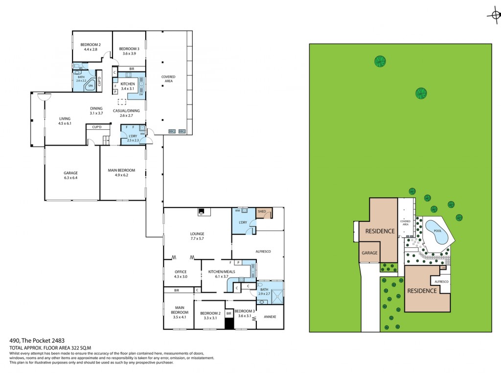 • Main residence of solid double brick construction, 9ft ceilings and full-length verandah overlooking the pool. 2 good sized bedrooms and an extra-large main bedroom, large open plan living, dining and kitchen, offering that central family hub.