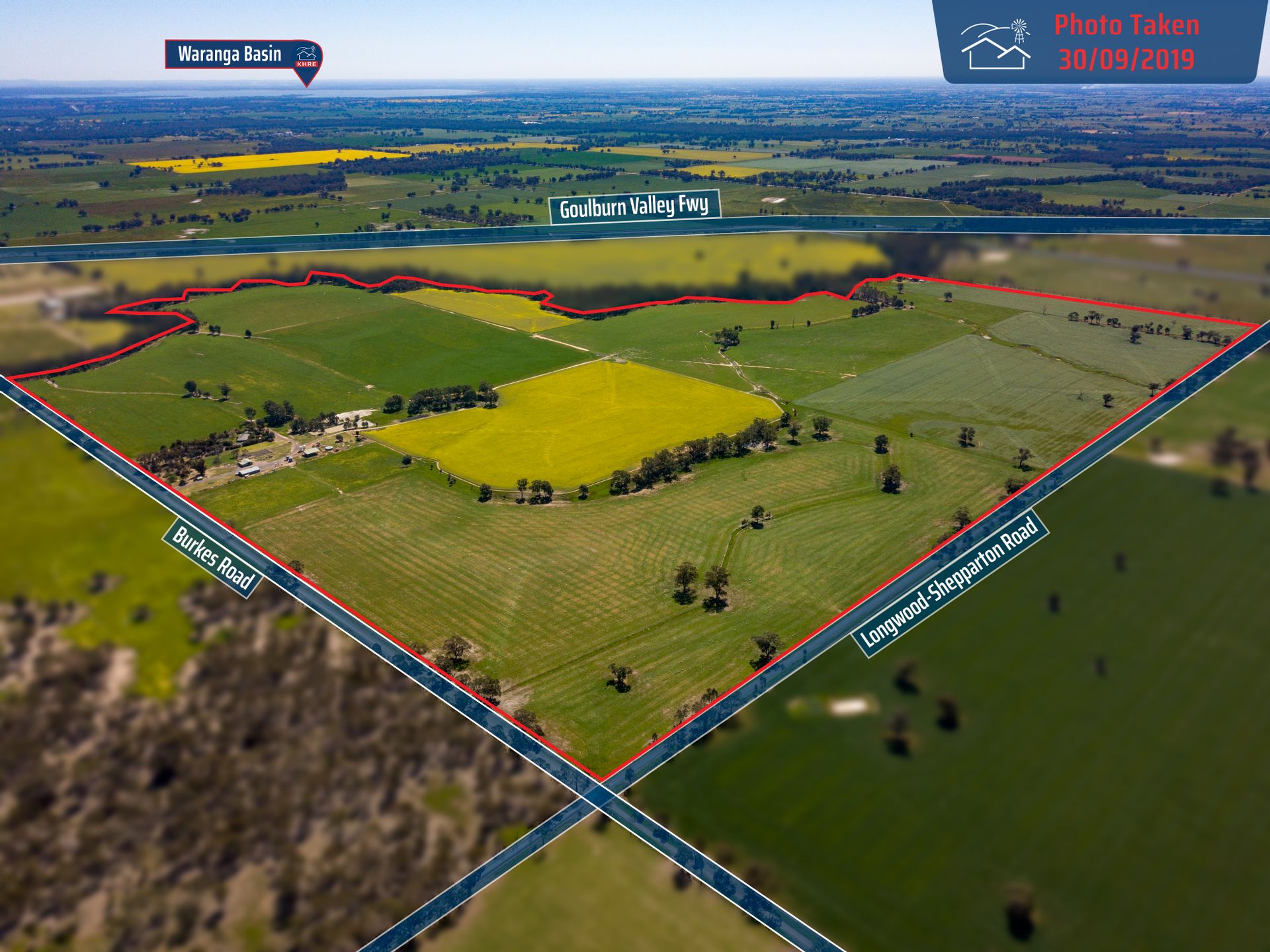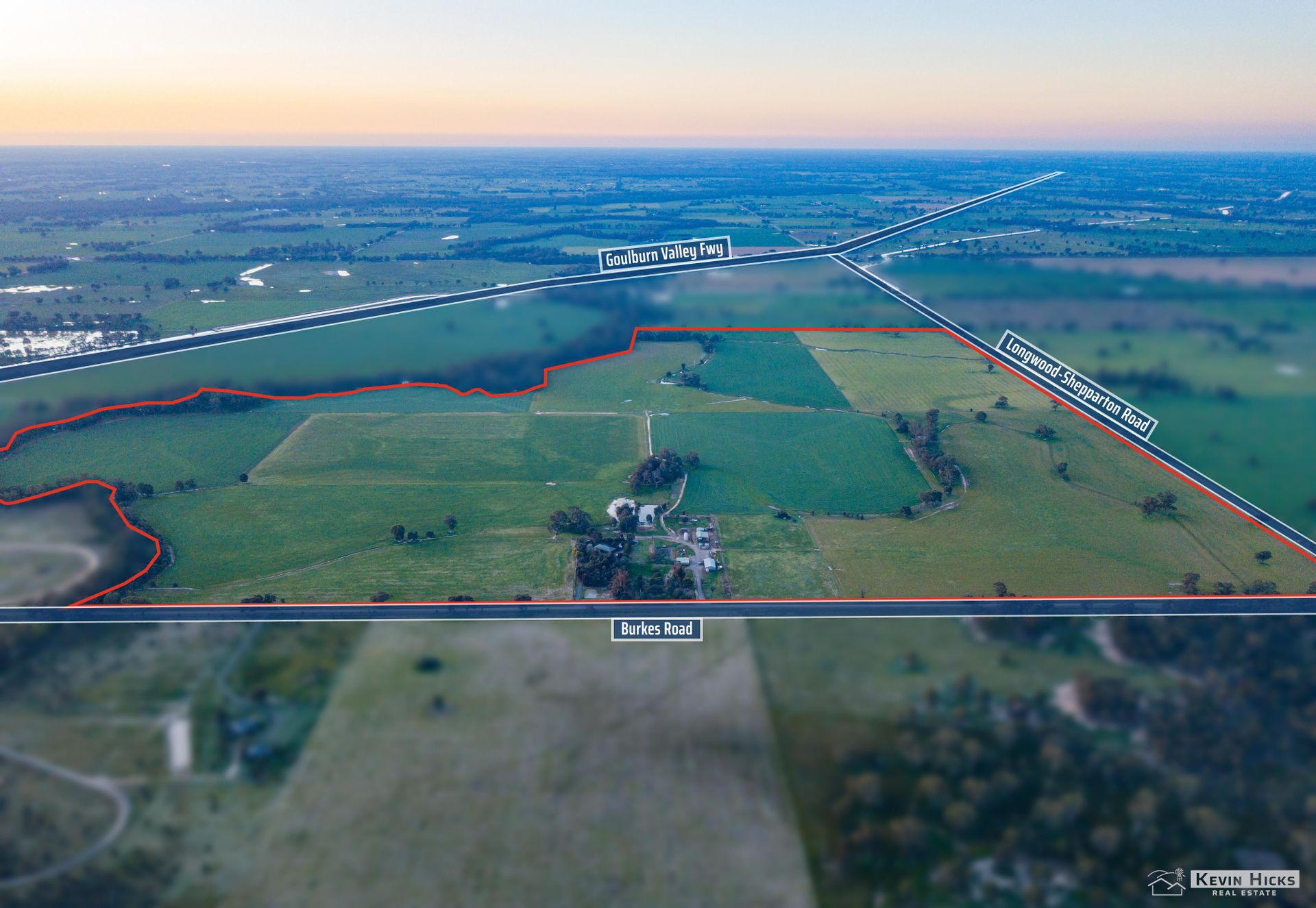 The property comprises three titles, the home block on 1.9 HA and the surrounding farm titles 133.3 HA and 92.64 HA. The property is boundried by the Pranjip Creek to the west, the main Shepparton-Longwood road to the east and fronting Burkes Road to the south which has access to the Goulburn Valley Freeway (1 and 1/2 hours to Melbourne).