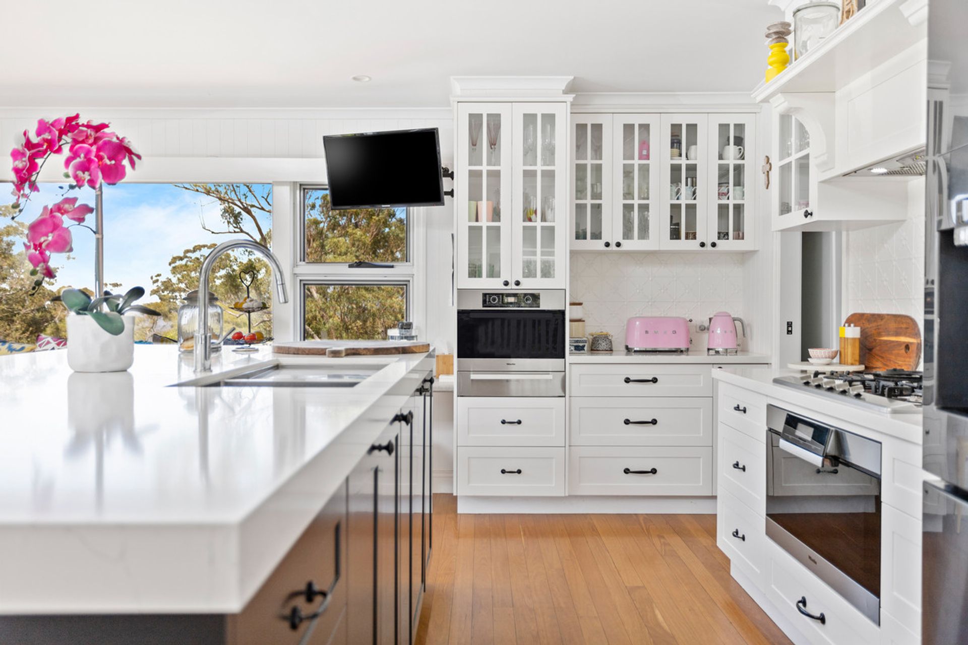 • Crisp black & white kitchen with generous island bench, Miele appliance & butler's pantry