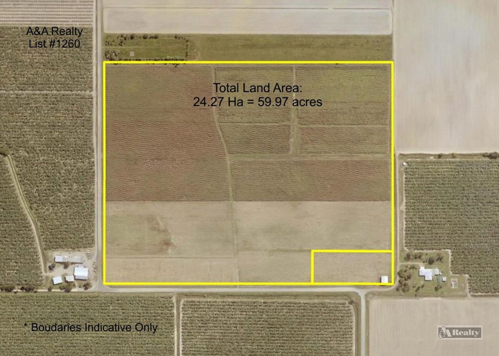 Total Land Area: 24.27 Ha = 59.97 acres.
