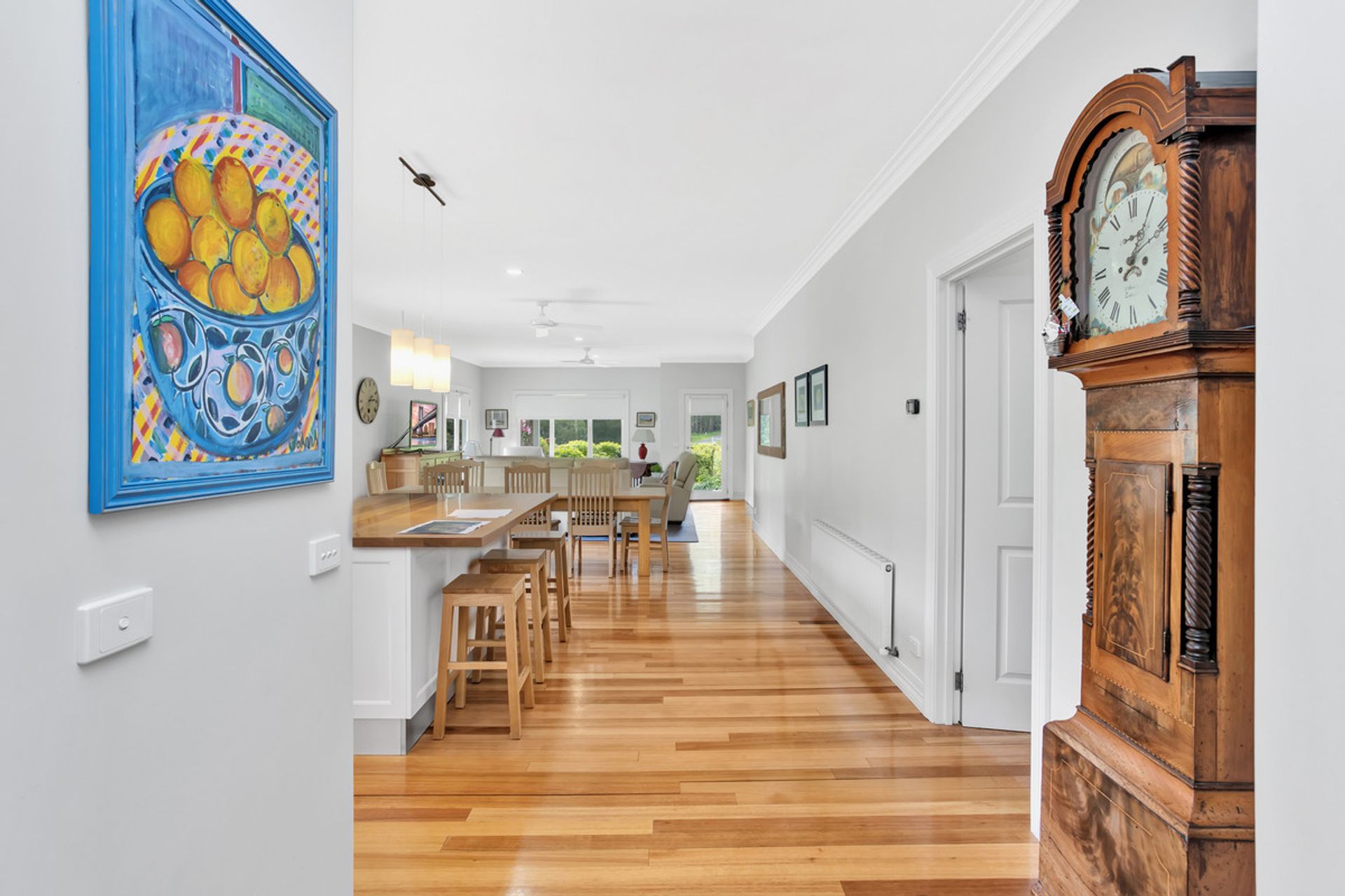 The property is pleasantly introduced by a lovely stone walled driveway leading to a beautifully landscaped garden. The custom designed and constructed home is of the highest standard with first class chattels throughout and a magnificent aspect with views of the surrounding Otway hinterland. The home showcases spacious open plan kitchen/dining/living with Vic Ash flooring, modern kitchen with Caesar stone bench tops, glass splash back complimenting the induction cooktops, quality Miele appliances, a fantastic sized walk in pantry and 2 car garage with access directly inside via the boot room.