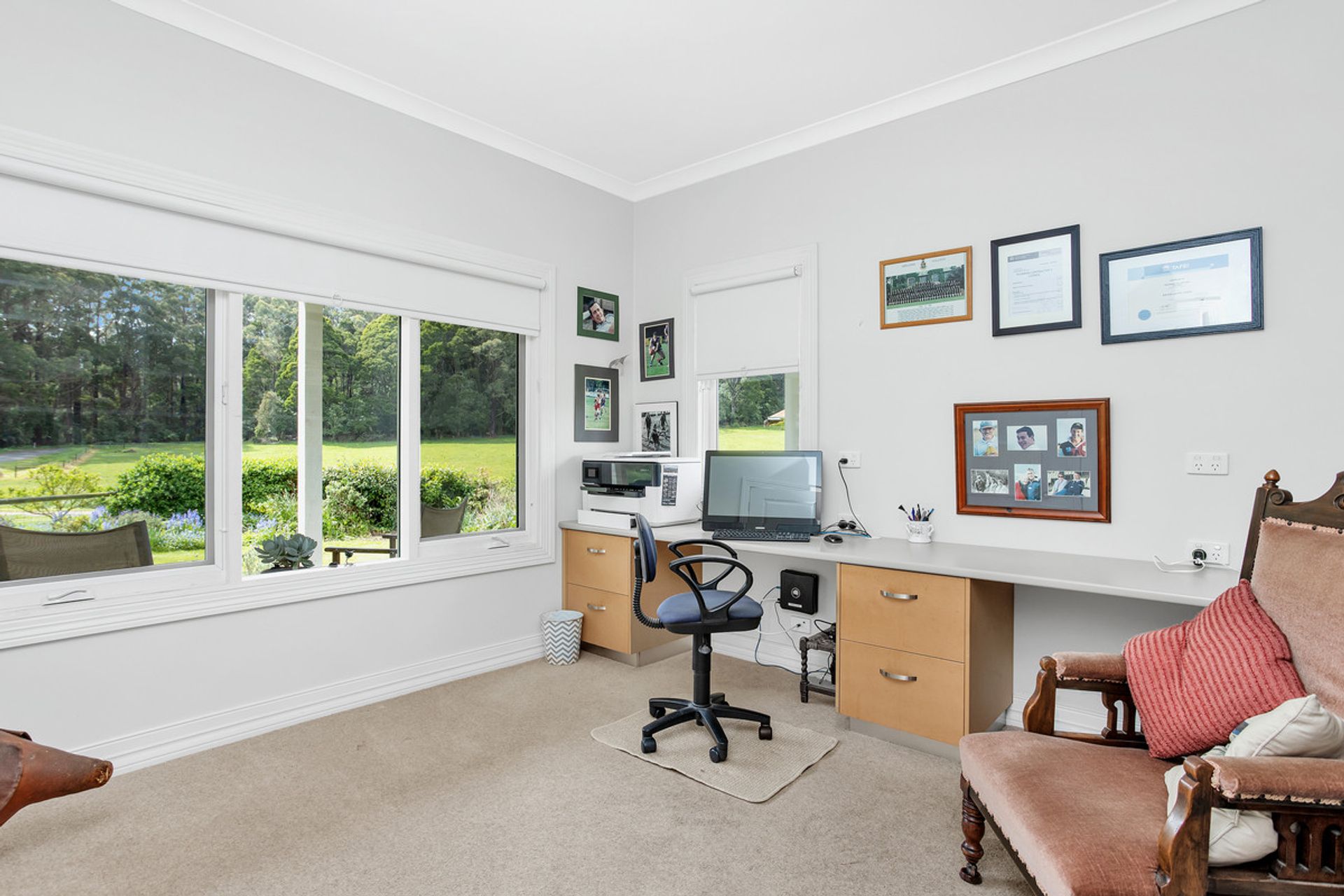 Accommodation includes, 3 generous bedrooms all with BIR's and ensuites, the master bedroom offering duel WIR's and a grand ensuite with a walk in shower and double vanity. In addition a powder room services the living areas. Further features include double glazed windows, Study, (Gas) hydronic heating throughout, 85,000 litre rain water tanks supply and the various walking tracks on the property that meander through your very own Otways rainforest