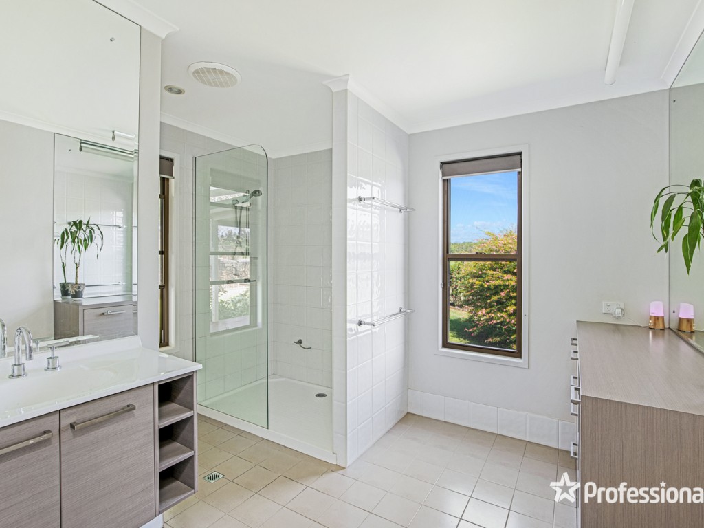 • Master bedroom with air-conditioning, mountain views, large walk-in robe and ensuite with floating vanity, shower, toilet & storage cupboard