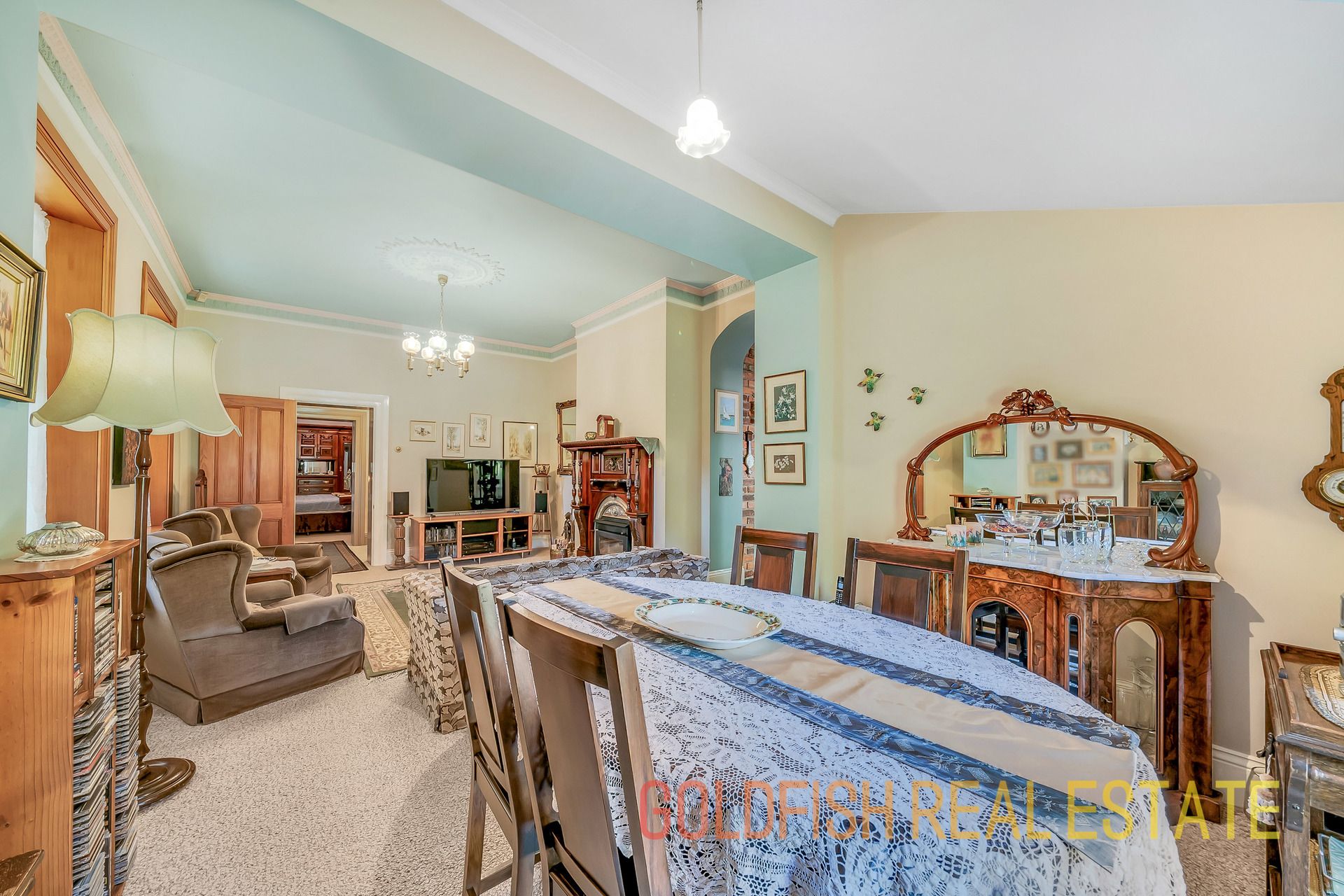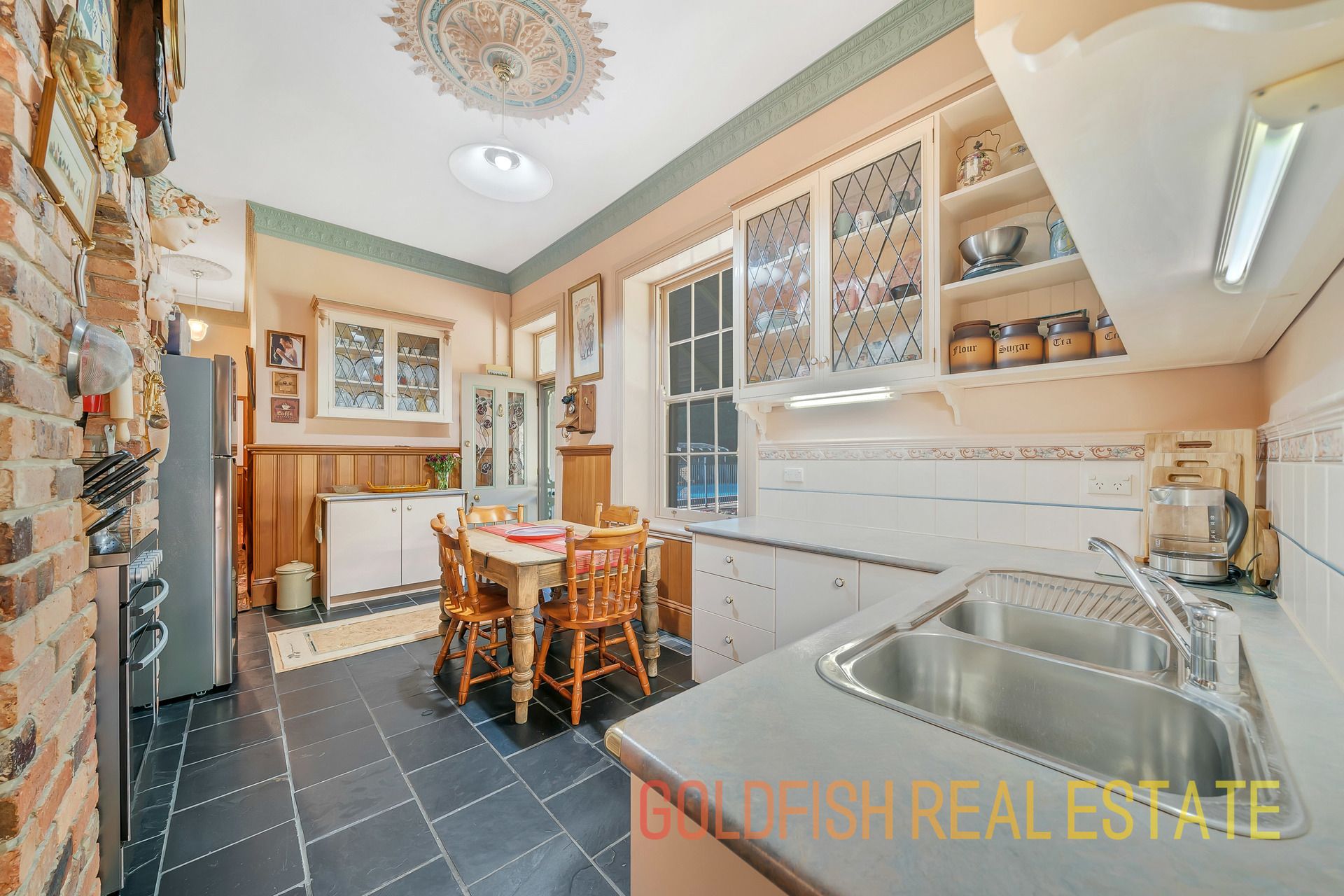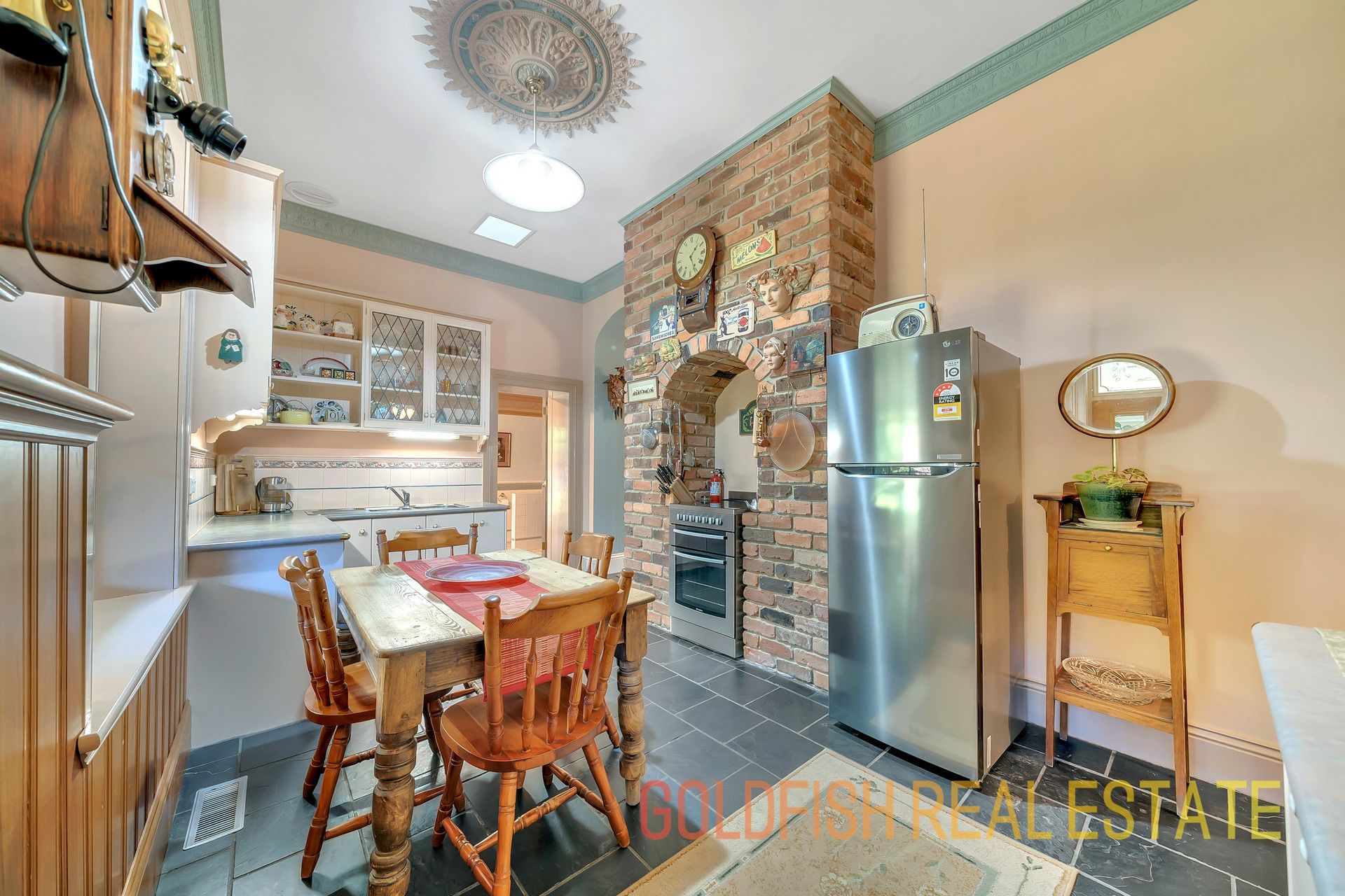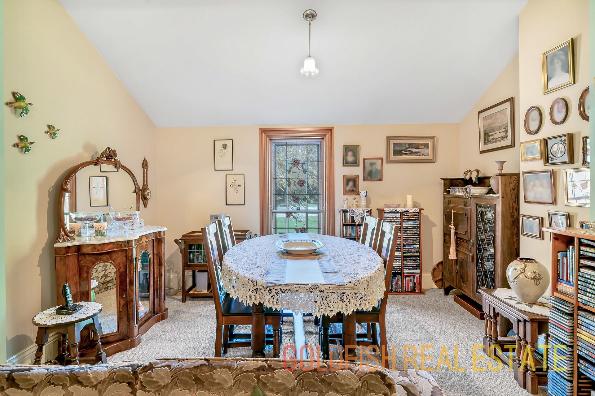With so much to offer this radiant home has all the wonderful features to make you appreciate nights at home with your family including ceiling roses, an open fireplace, deep skirting boards, and wonderful handmade etched glass & stained window features.