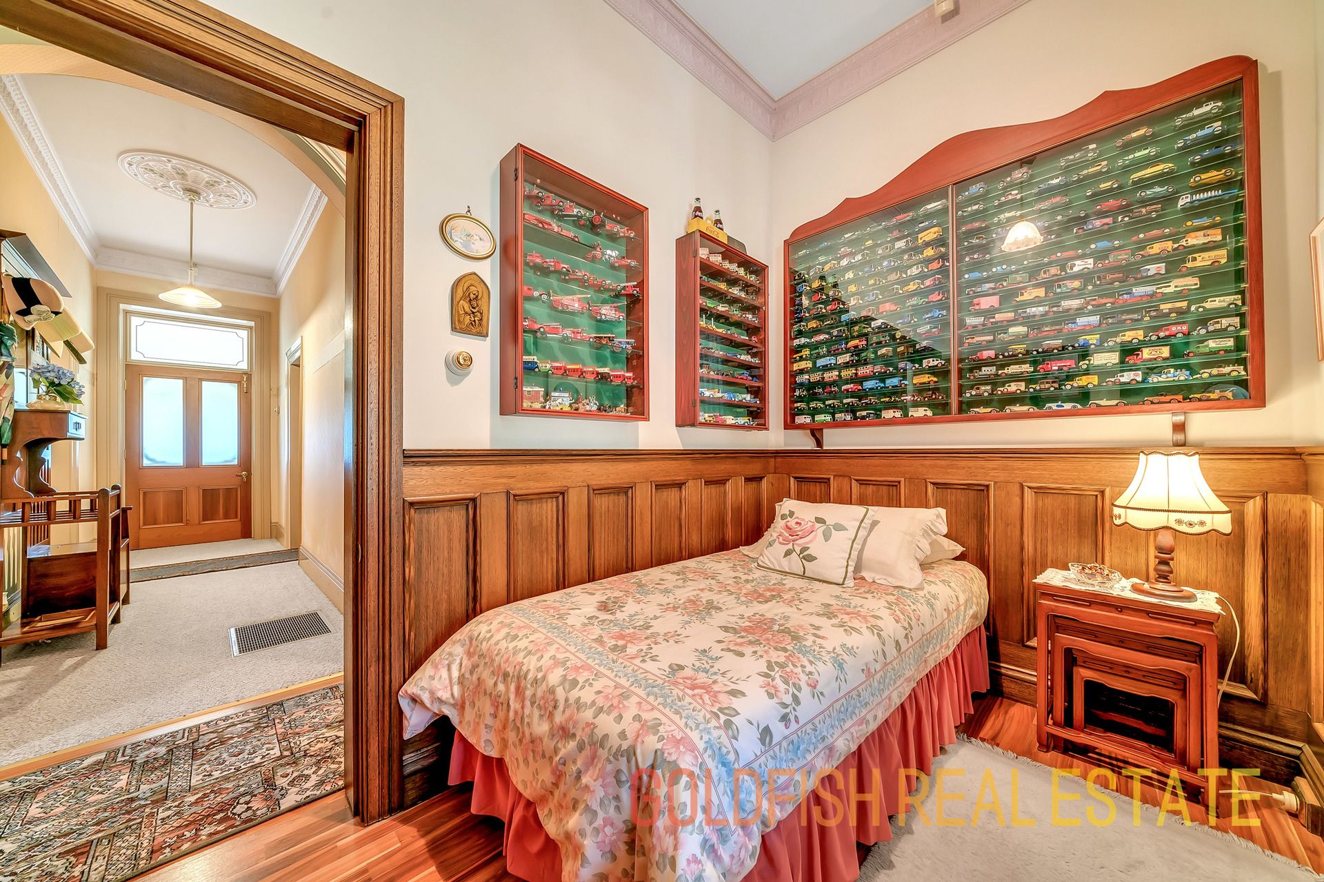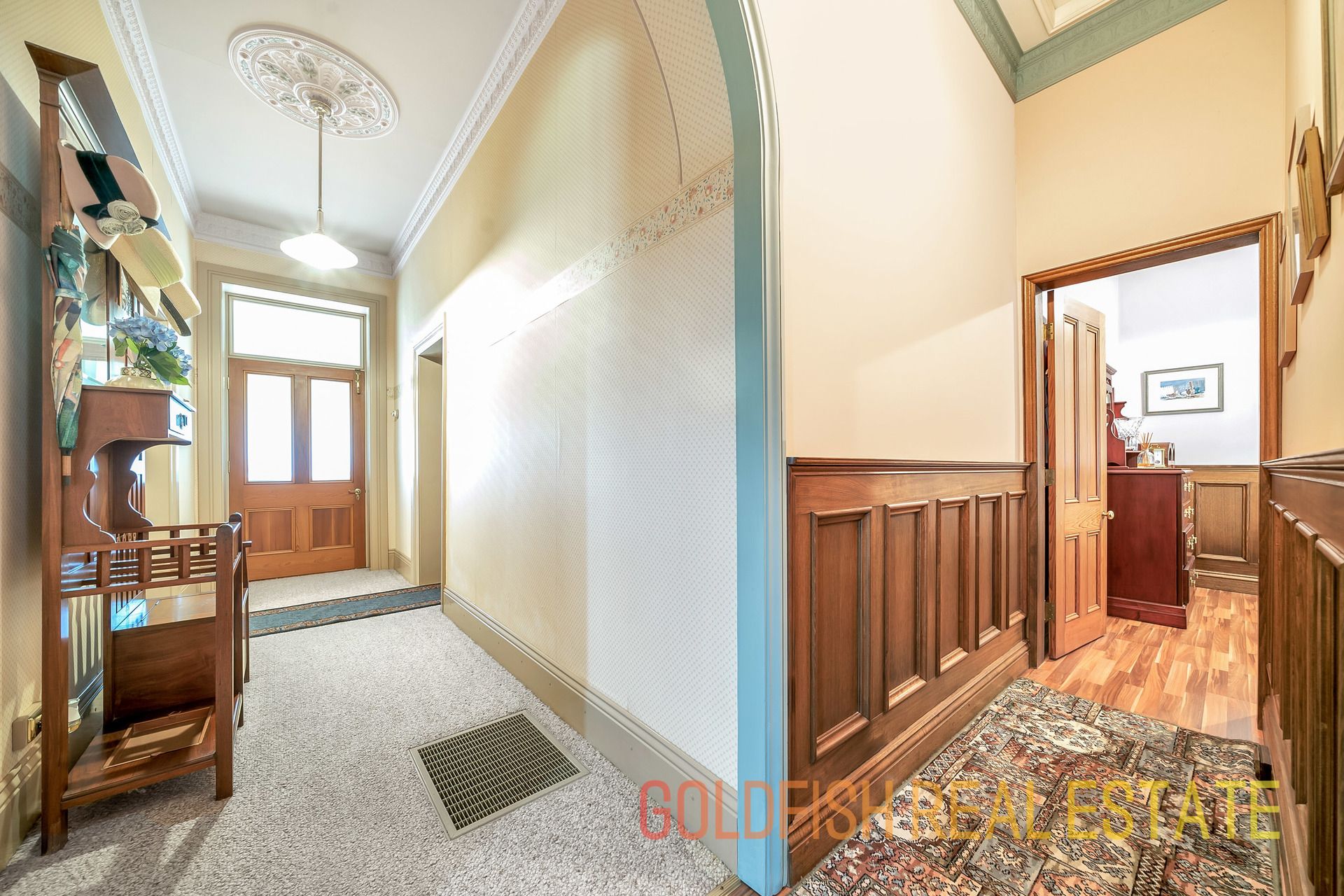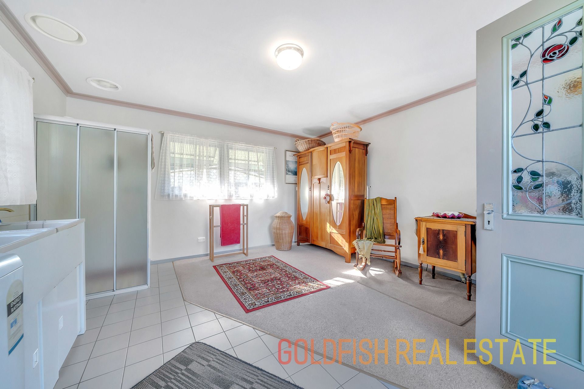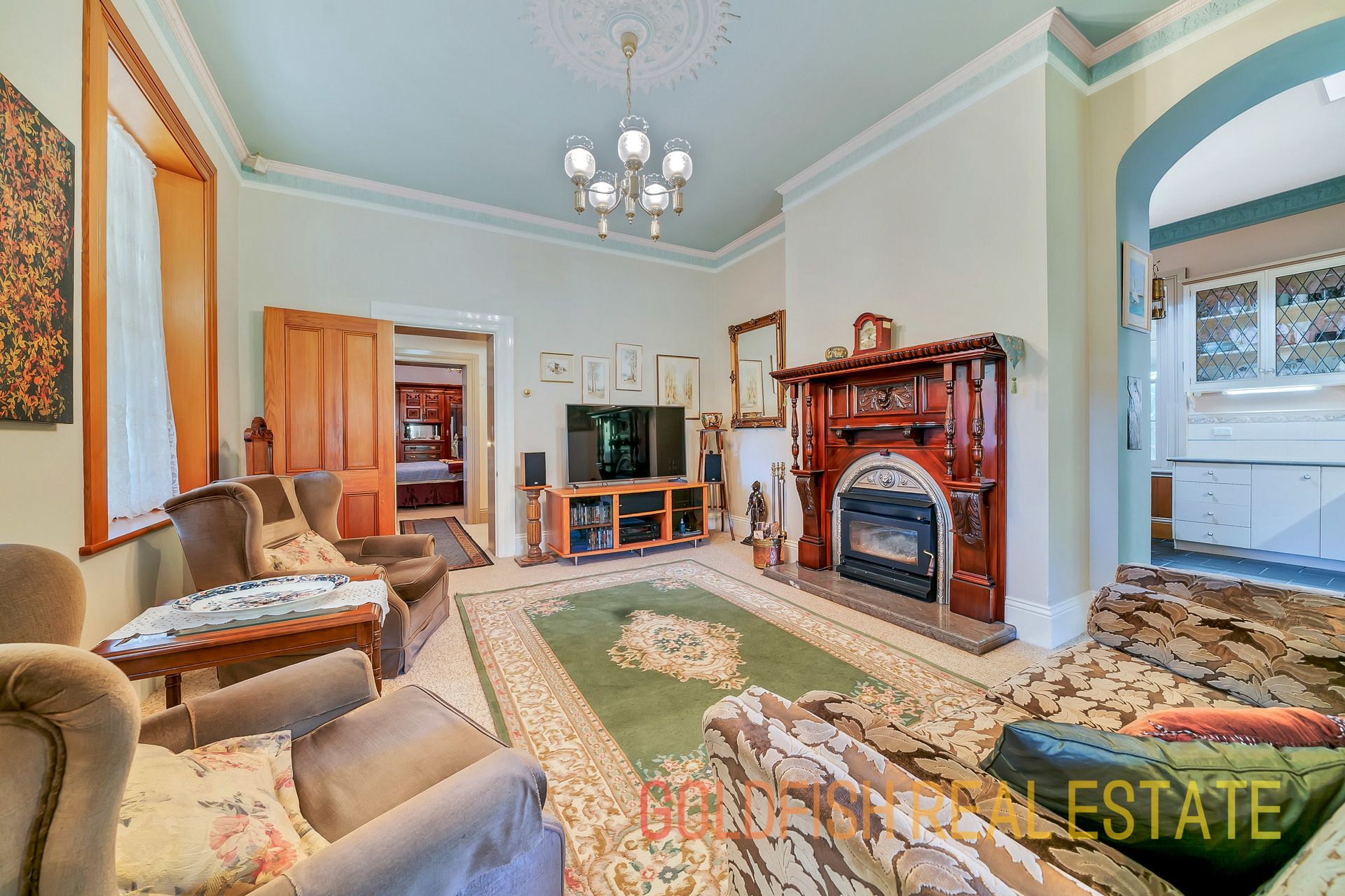 With so much to offer this radiant home has all the wonderful features to make you appreciate nights at home with your family including ceiling roses, an open fireplace, deep skirting boards, and wonderful handmade etched glass & stained window features.