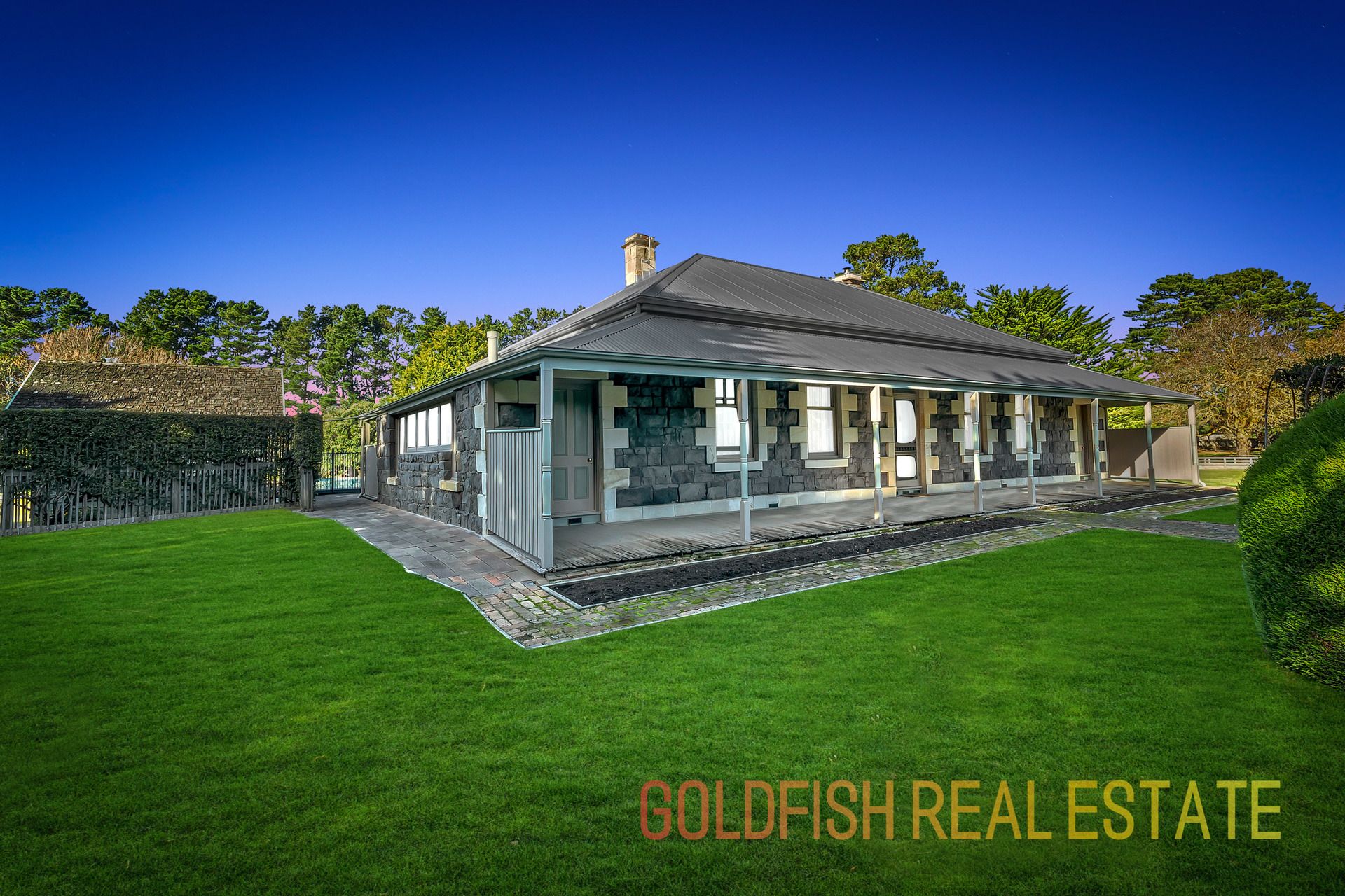 Goldfish Real Estate team delighted to present this land of approx. 35 acres, delivering an inspirational family environment with a stunning iconic Circa 1875 solid bluestone house.
