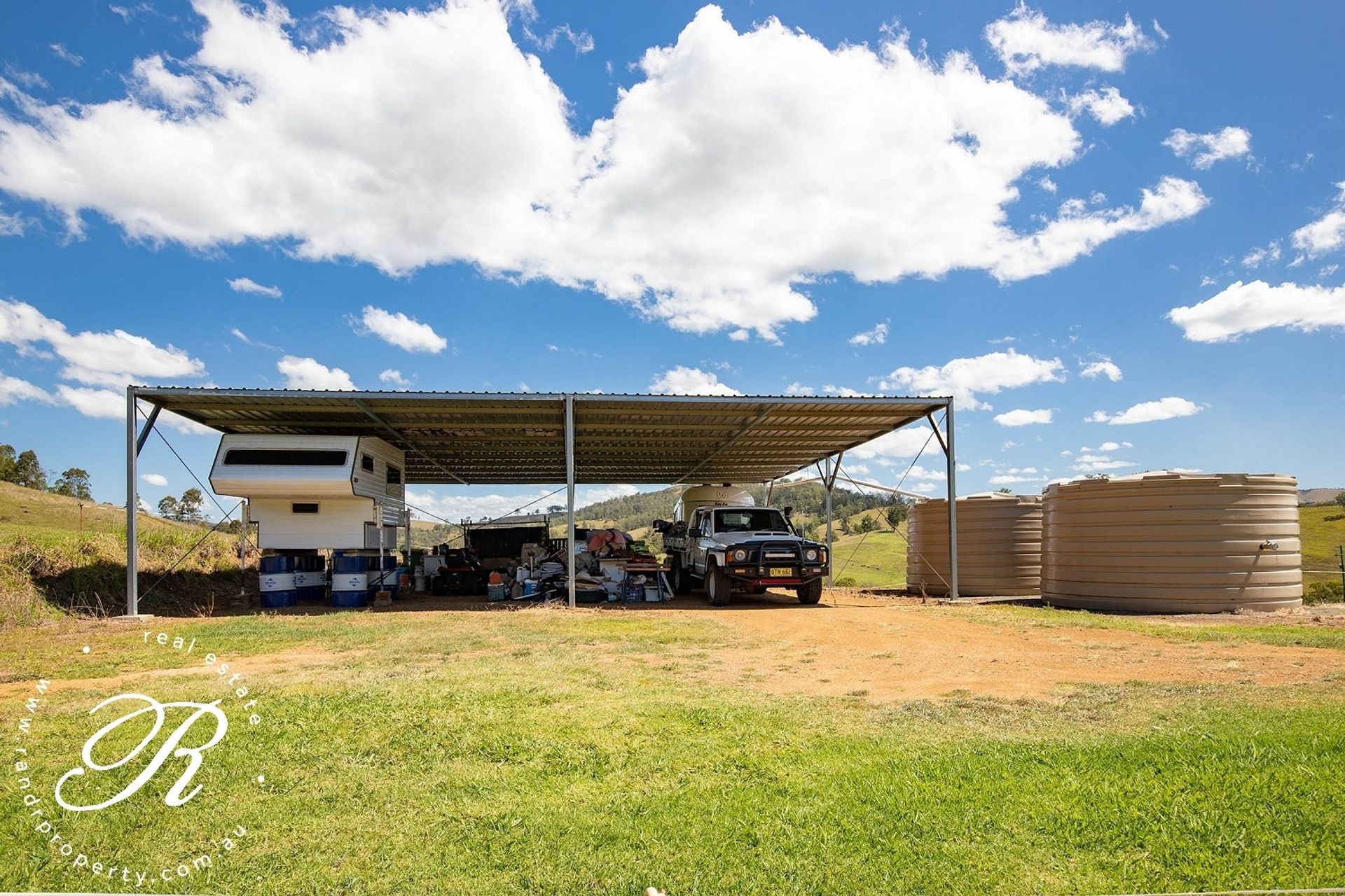 • 2 x 22,000lt poly tanks gravity fed to house with third 22,000lt tank, overflow to dam