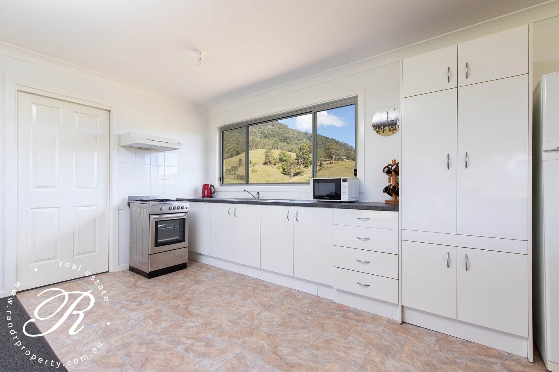 • Well proportioned kitchen with bench/storage space, S/S gas cooker large pantry