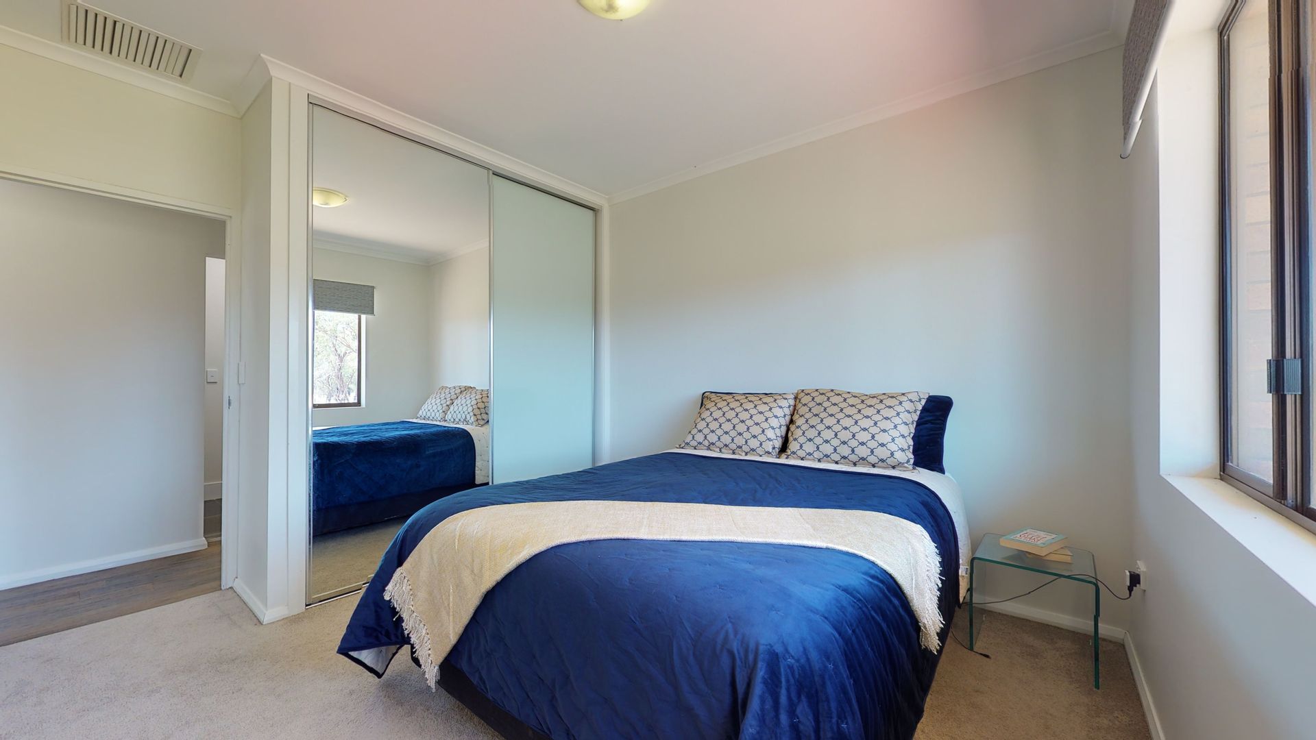 - Three bedrooms, one with a ceiling fan