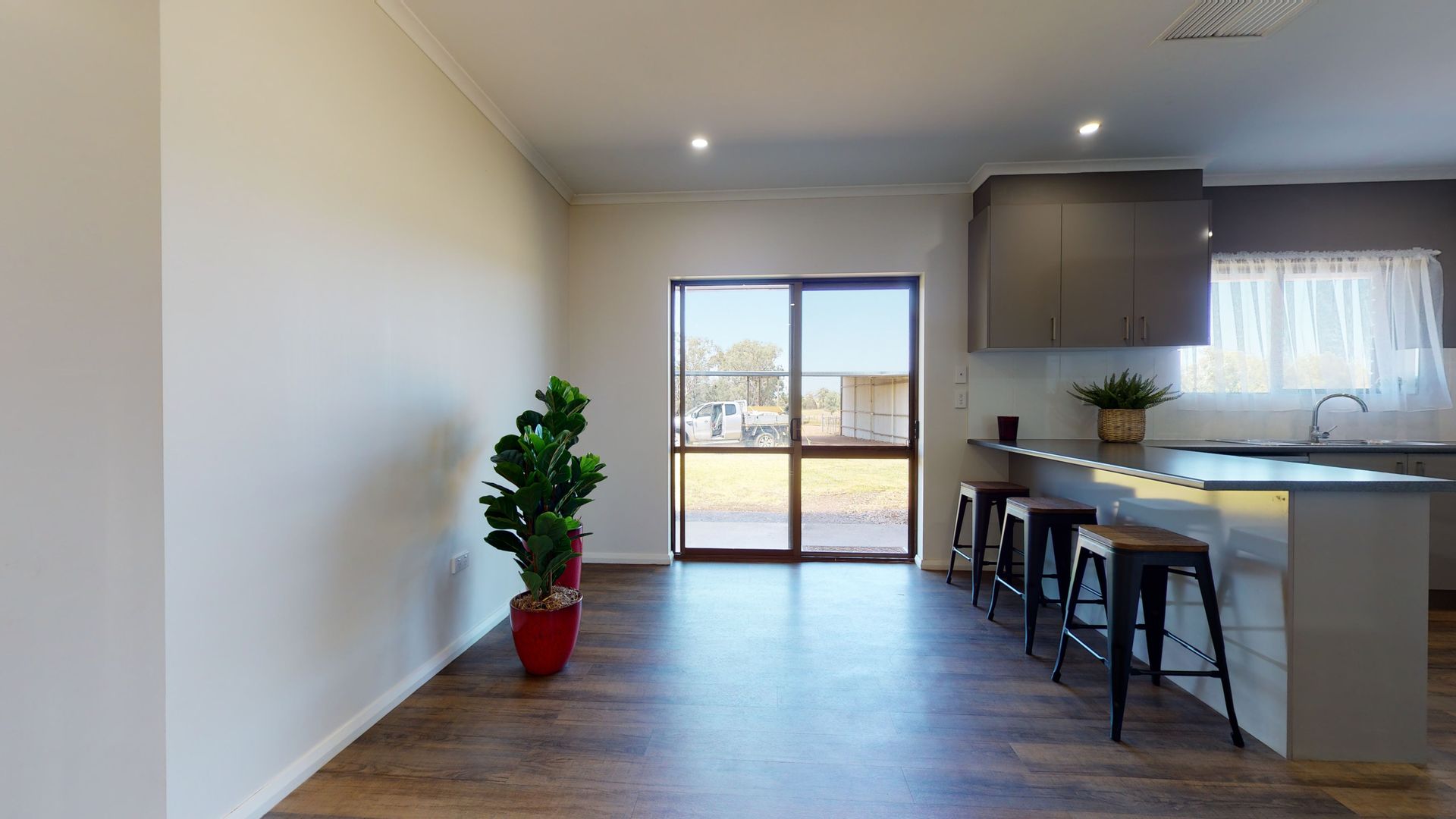 - Open plan living and dining room