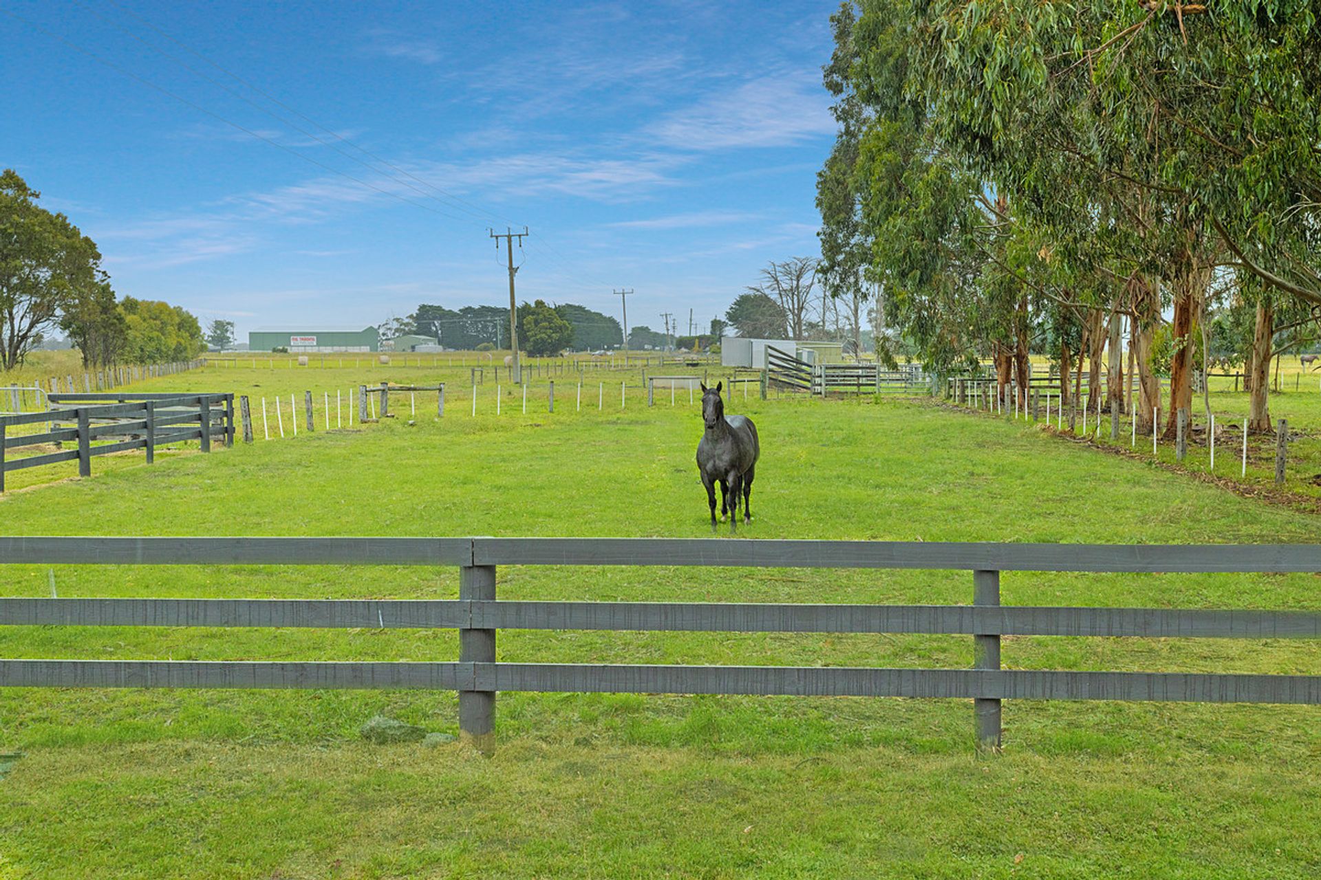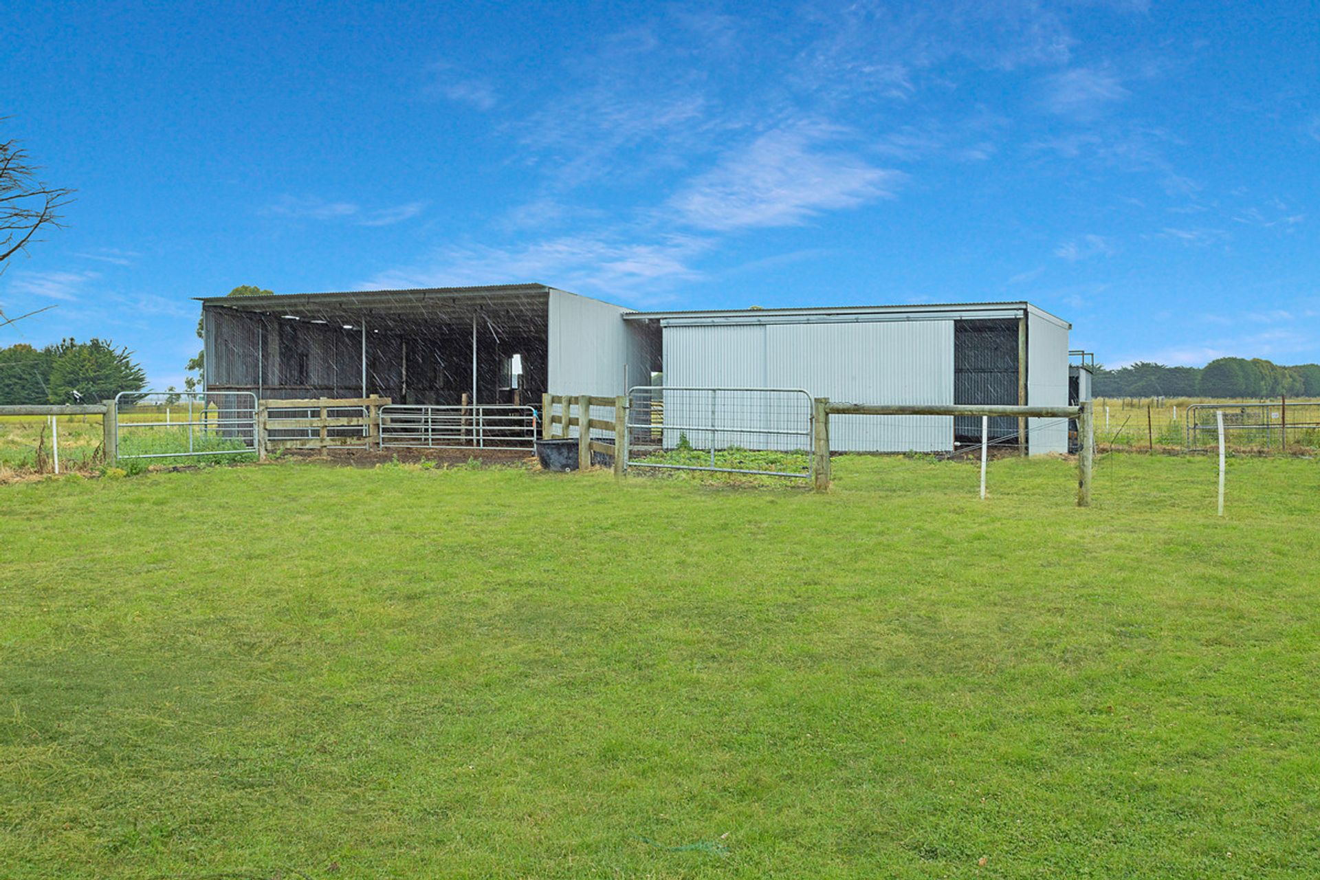 Hayshed and smaller calf shed / stables with power connected and plumbed. Cattle yards with concrete posts and timber rails with heavy duty crush and loading ramp with holding yard and water.