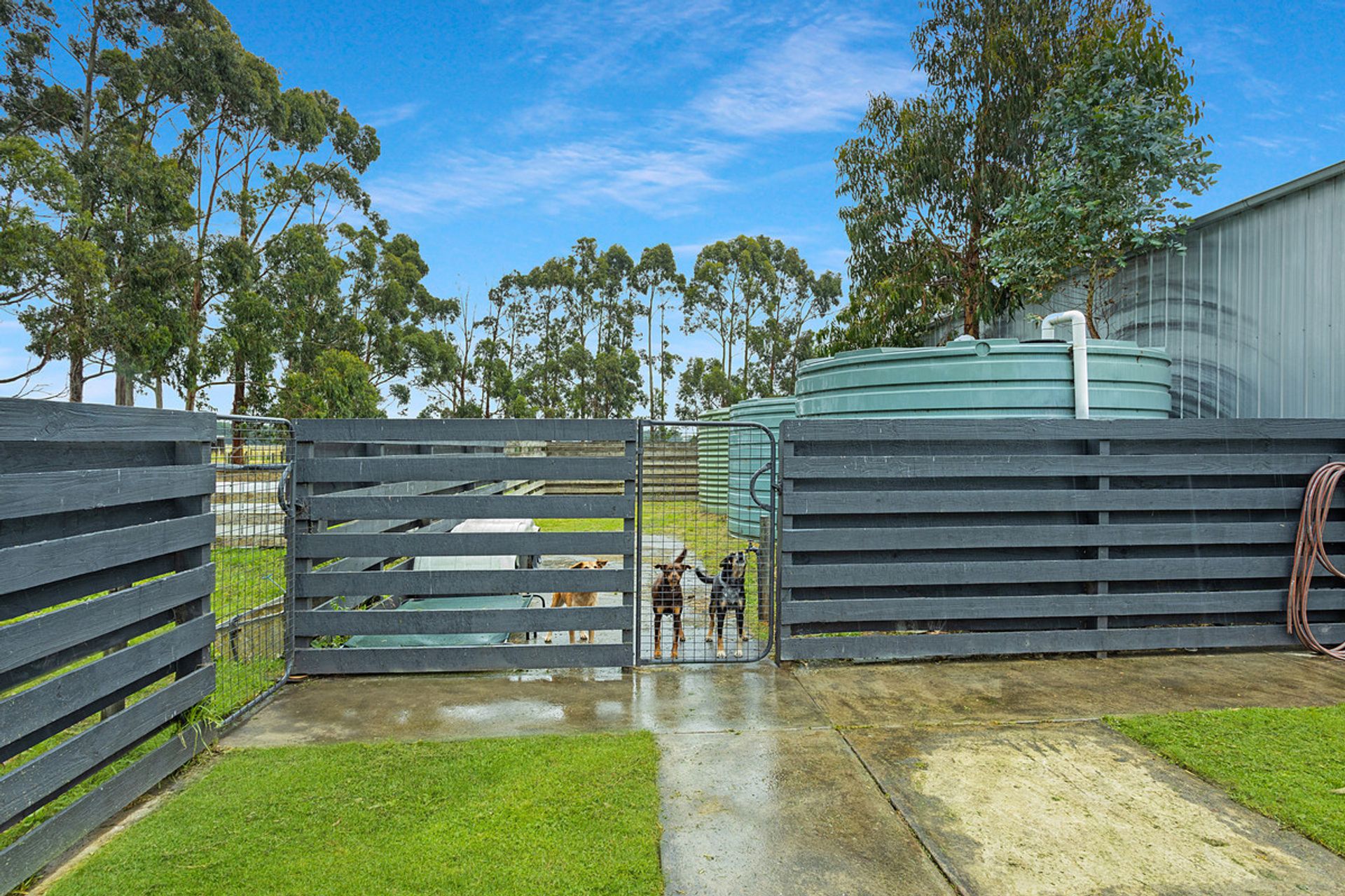WATER: 3x5000G + 1x5000G fresh water connected to home. Smaller tank in middle of farm off shed. Pressure pump on bore in center of property.