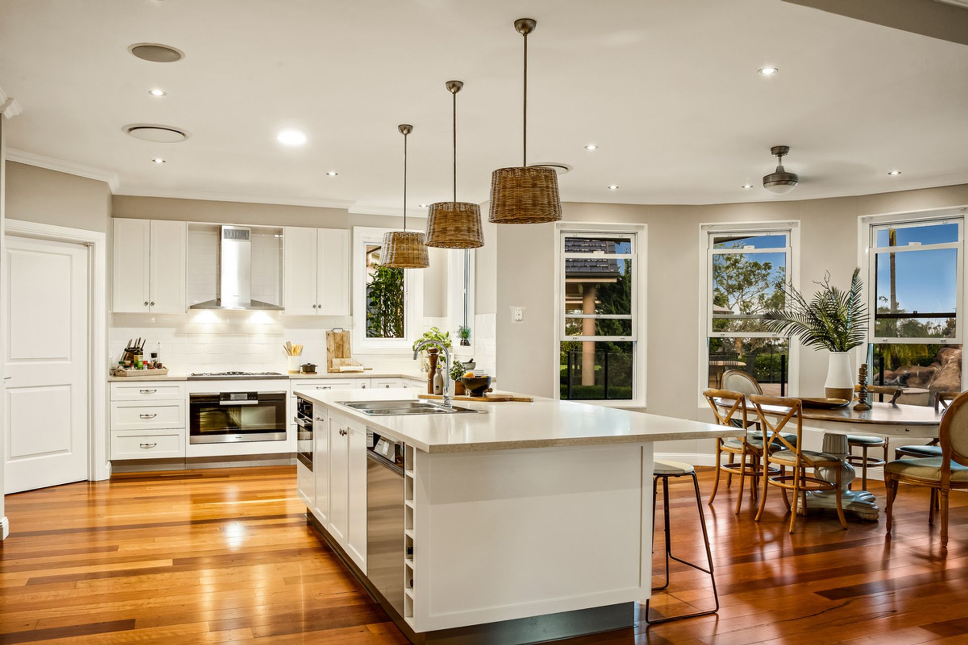 • East facing gourmet kitchen with large island bench, stone benchtops & walk-in pantry