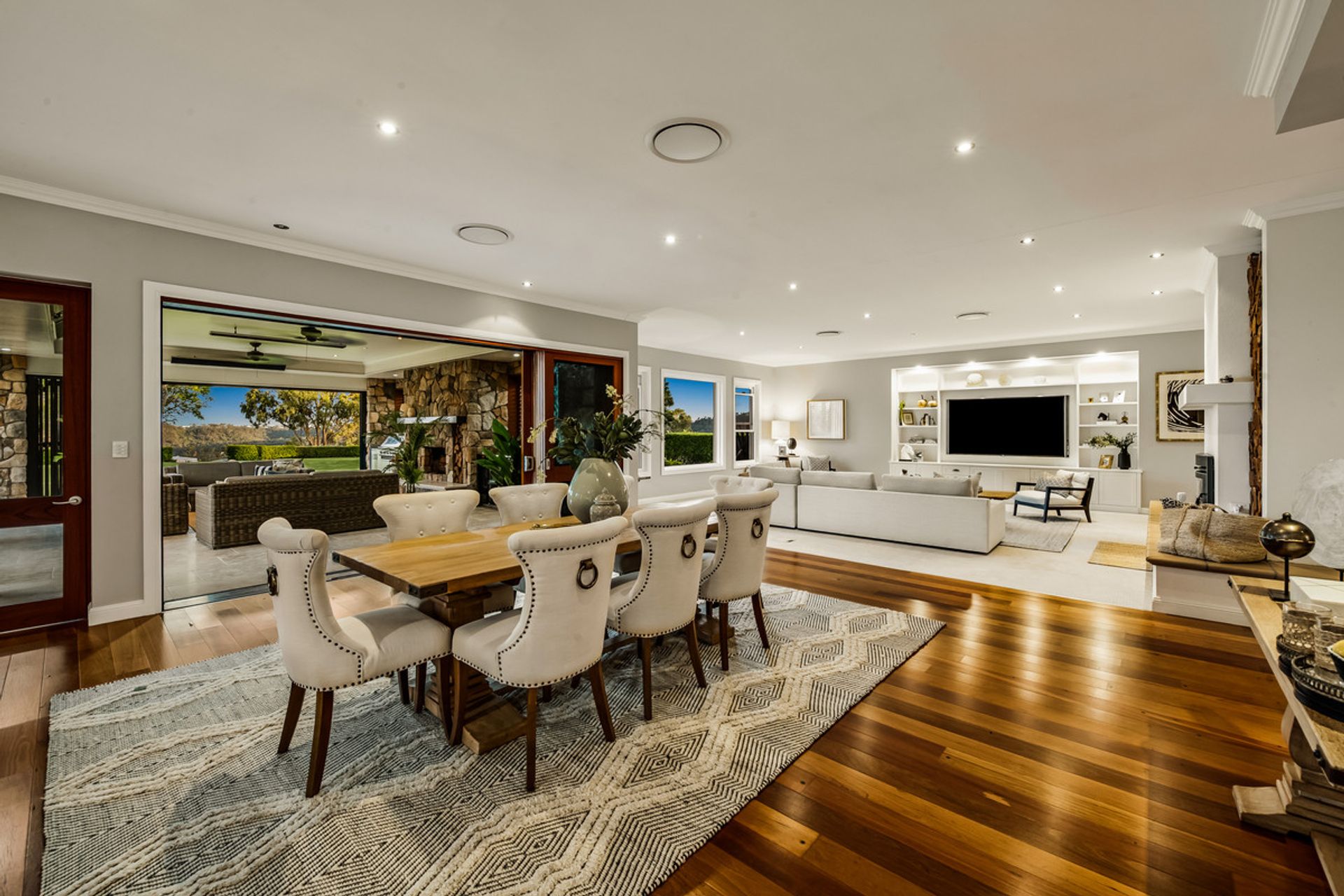 • Multiple living areas incl. formal lounge & dining with fireplace, media room & rumpus room
