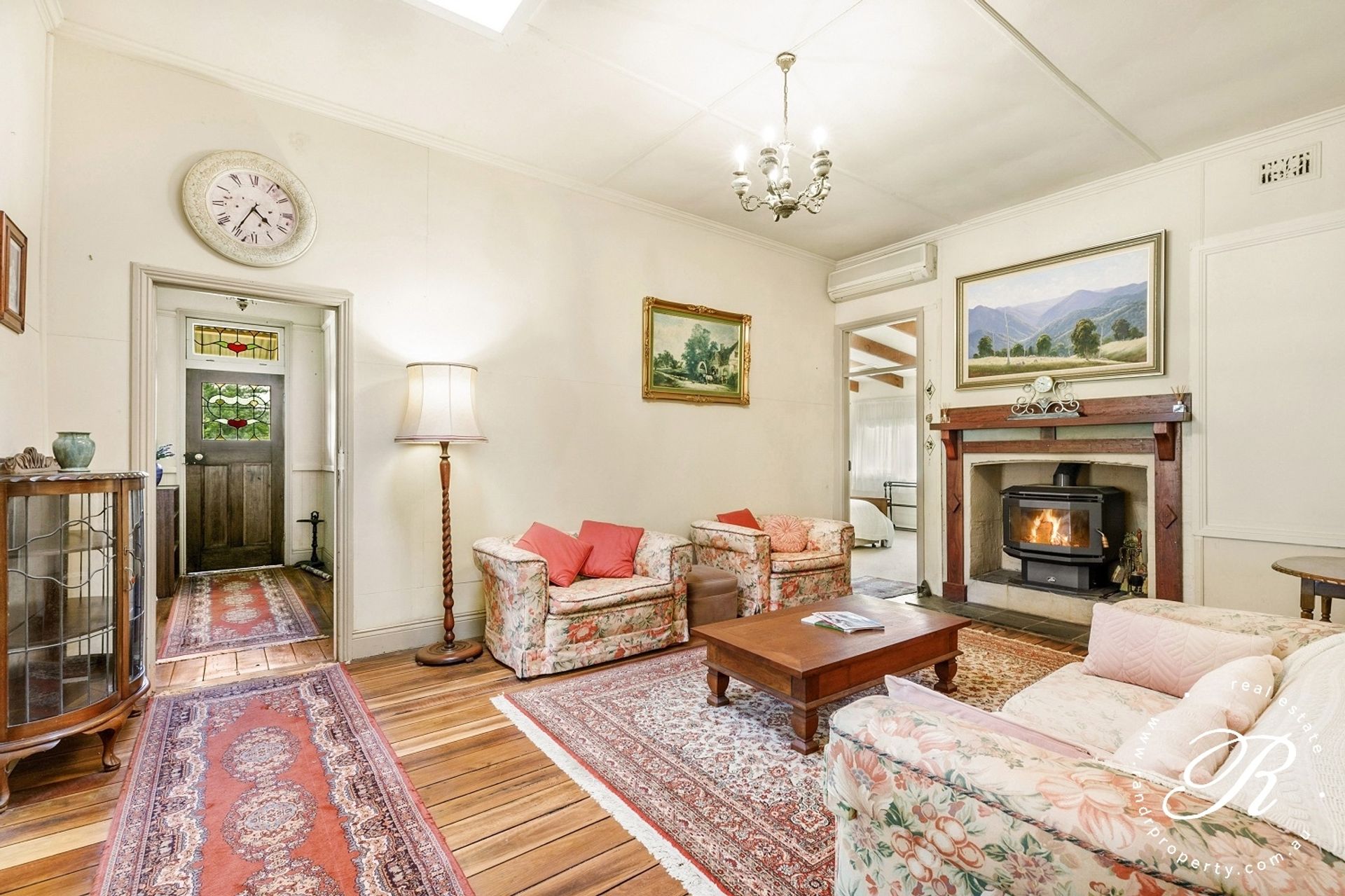The kitchen is spacious in size, has plenty of cupboard, storage & pantry space as well as electric oven and cooking. The original formal dining area has French doors that open out onto the covered verandah. There is reverse cycle air conditioning also in the home.