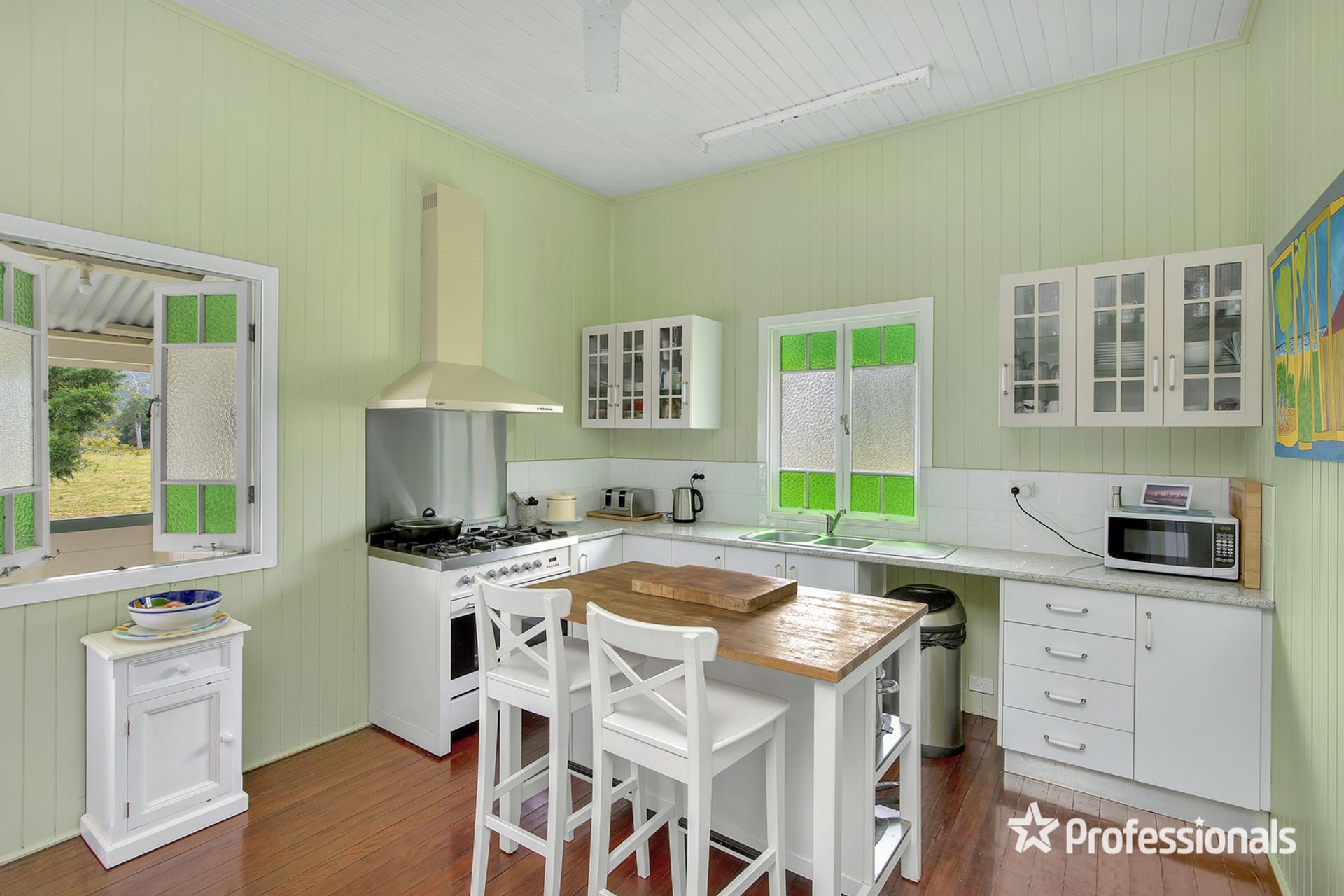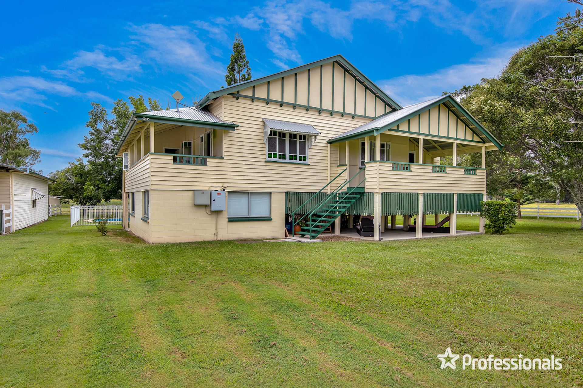 • House is a well maintained Queenslander. Upstairs has three large bedrooms, bathroom, kitchen, dining room, lounge room with wood heater, verandah and storeroom.