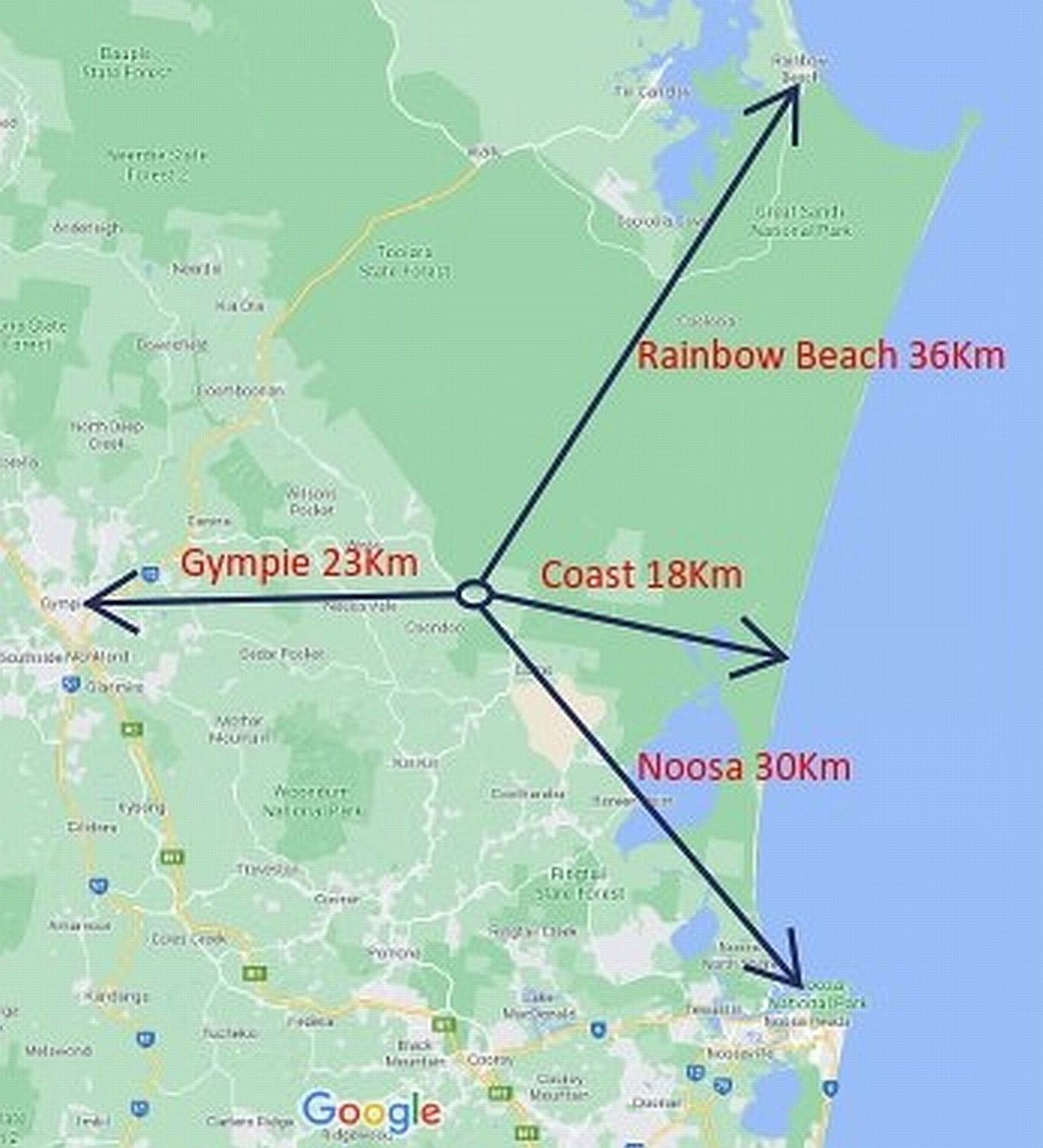 • Located 40 minutes north of Noosa, 30 minutes east of Gympie, one hour to Sunshine Coast Airport and two hours to Brisbane Airport.