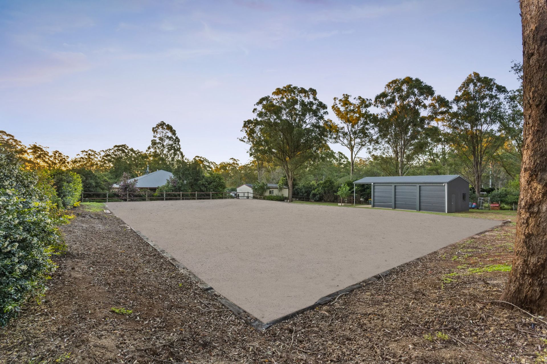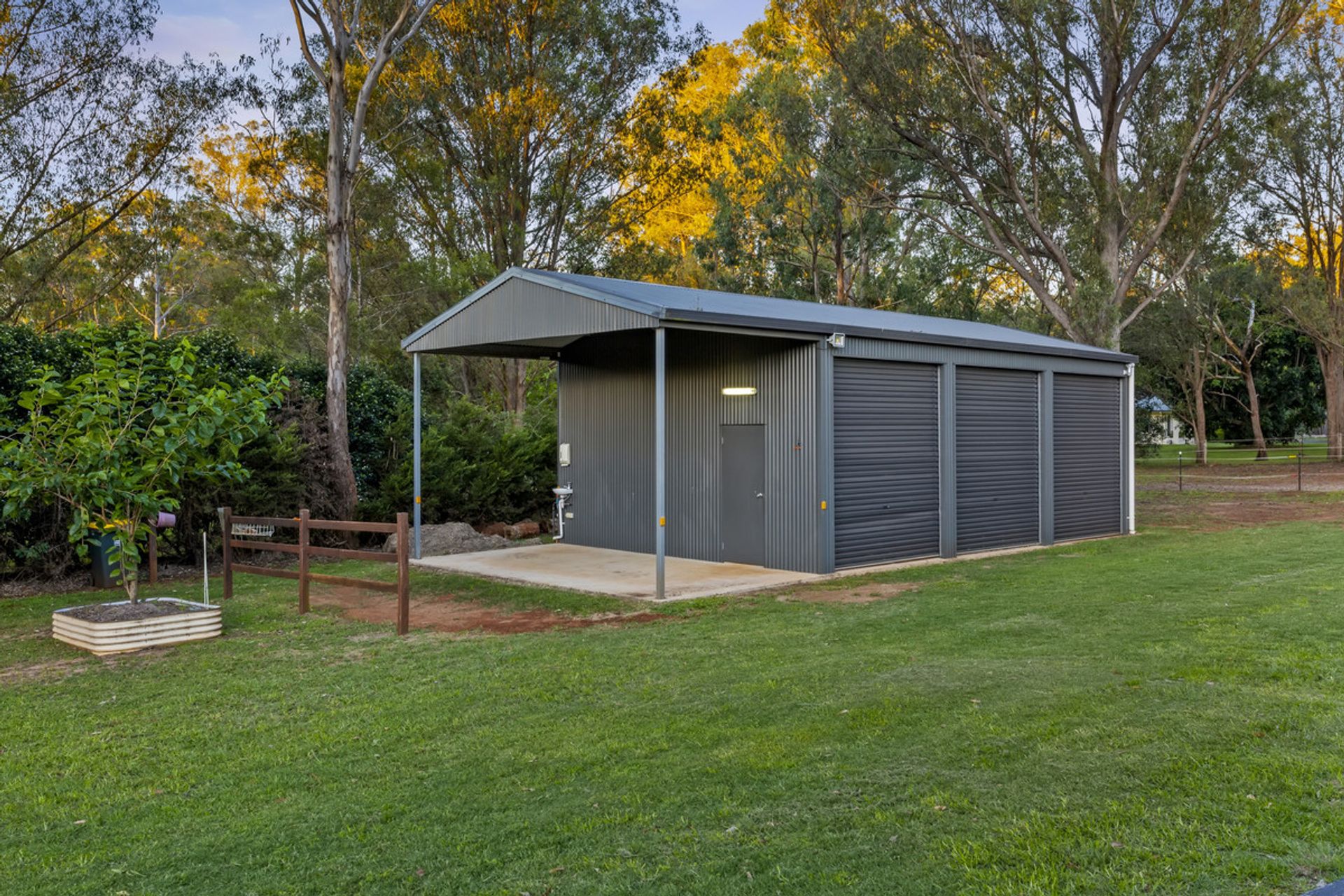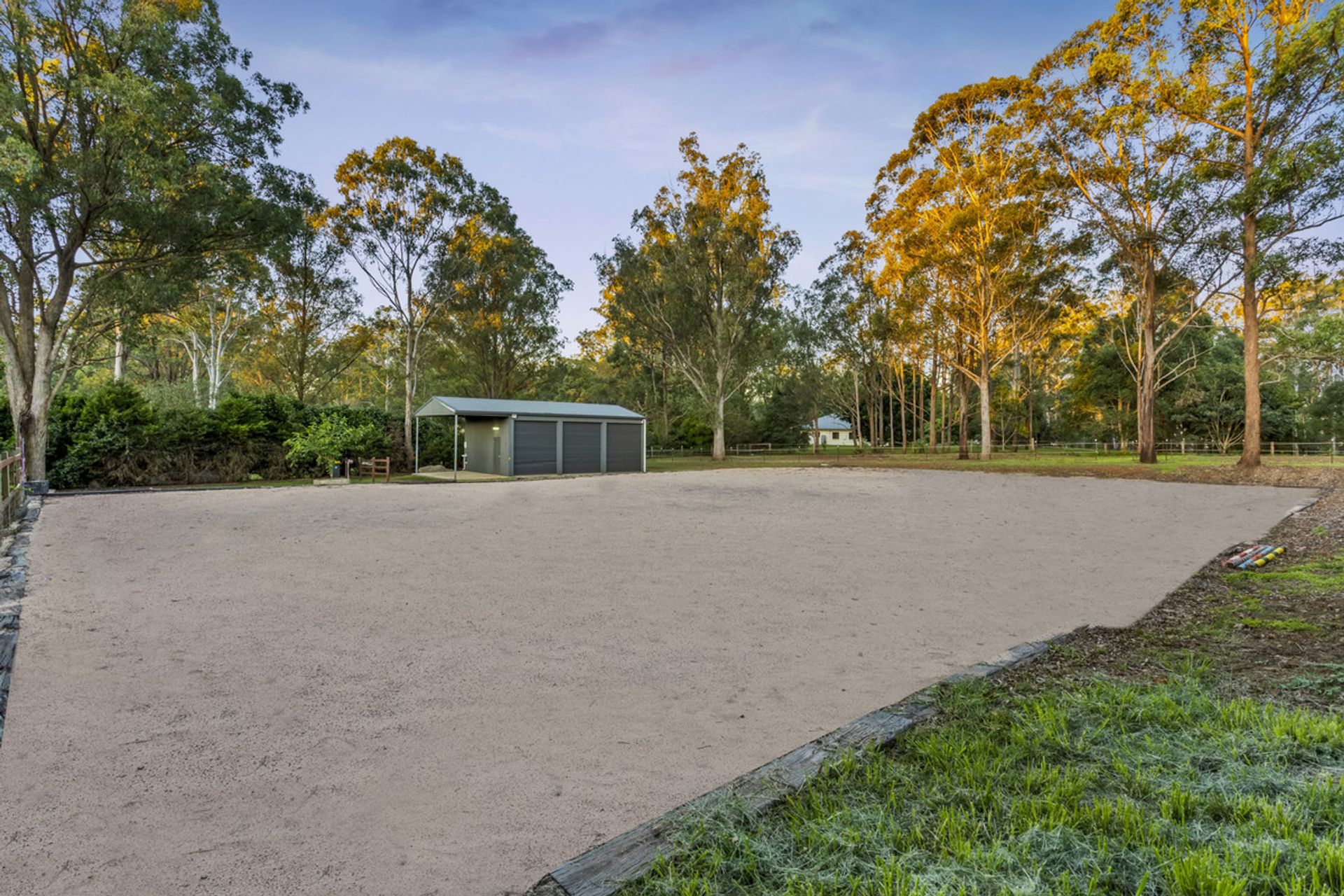• Grounds – Professionally built 20x40m small horse arena, 2 equal sized electric fenced horse paddocks and 4-bay powered shed with water (roller door clearance above 3m), one open bay with a hitch rail to wash the horses plus an additional 3-bay shed