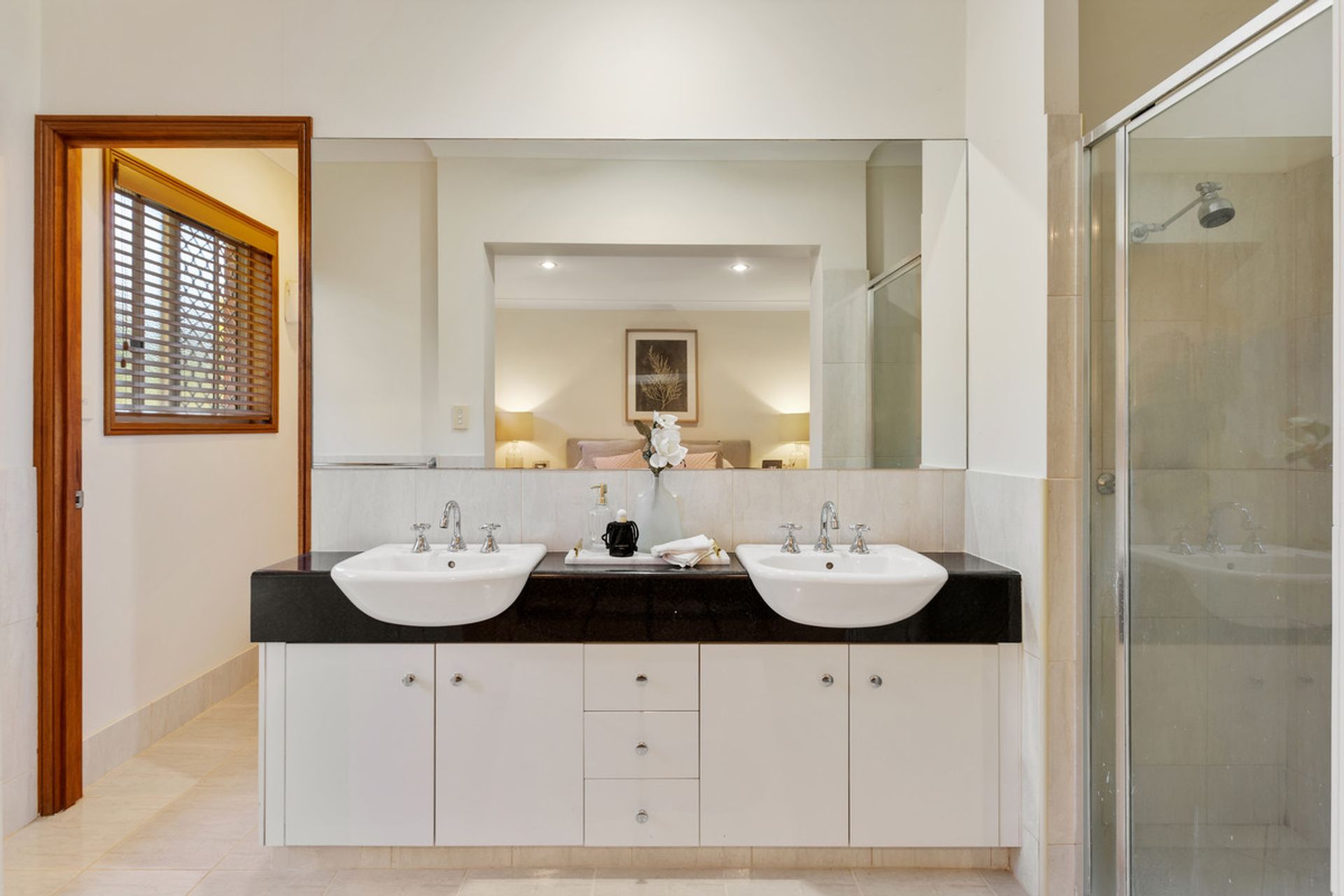 • Master suite with access to the expansive east-facing and gauzed covered outdoor entertaining area plus walk-in robe and ensuite with dual sinks and separate toilet