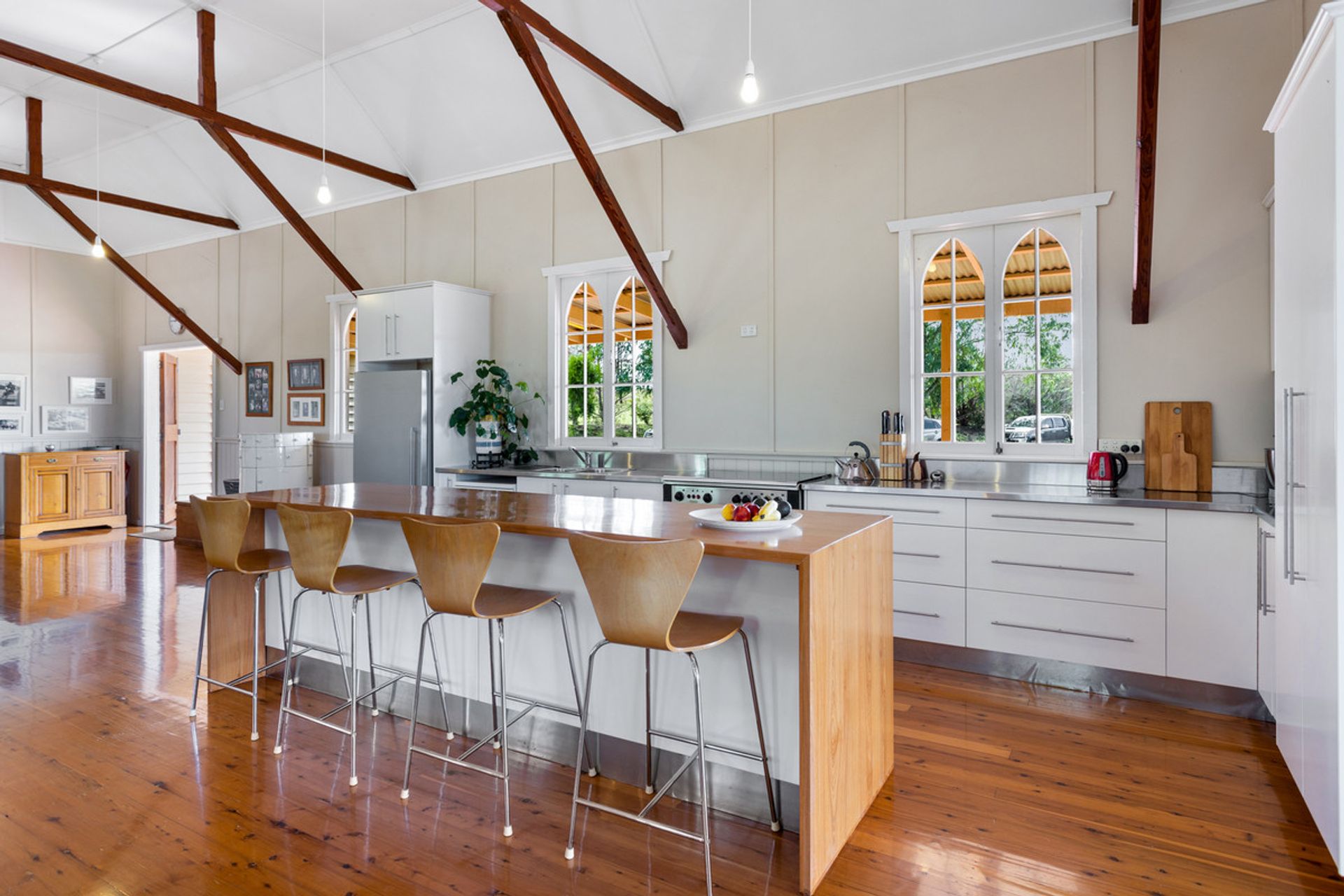 Water is supplied through 4 x 5000 gallon rain water tanks as well as a 5000 gallon tank which is pumped up from the large dam and bore equipped with a windmill (currently not serviceable).