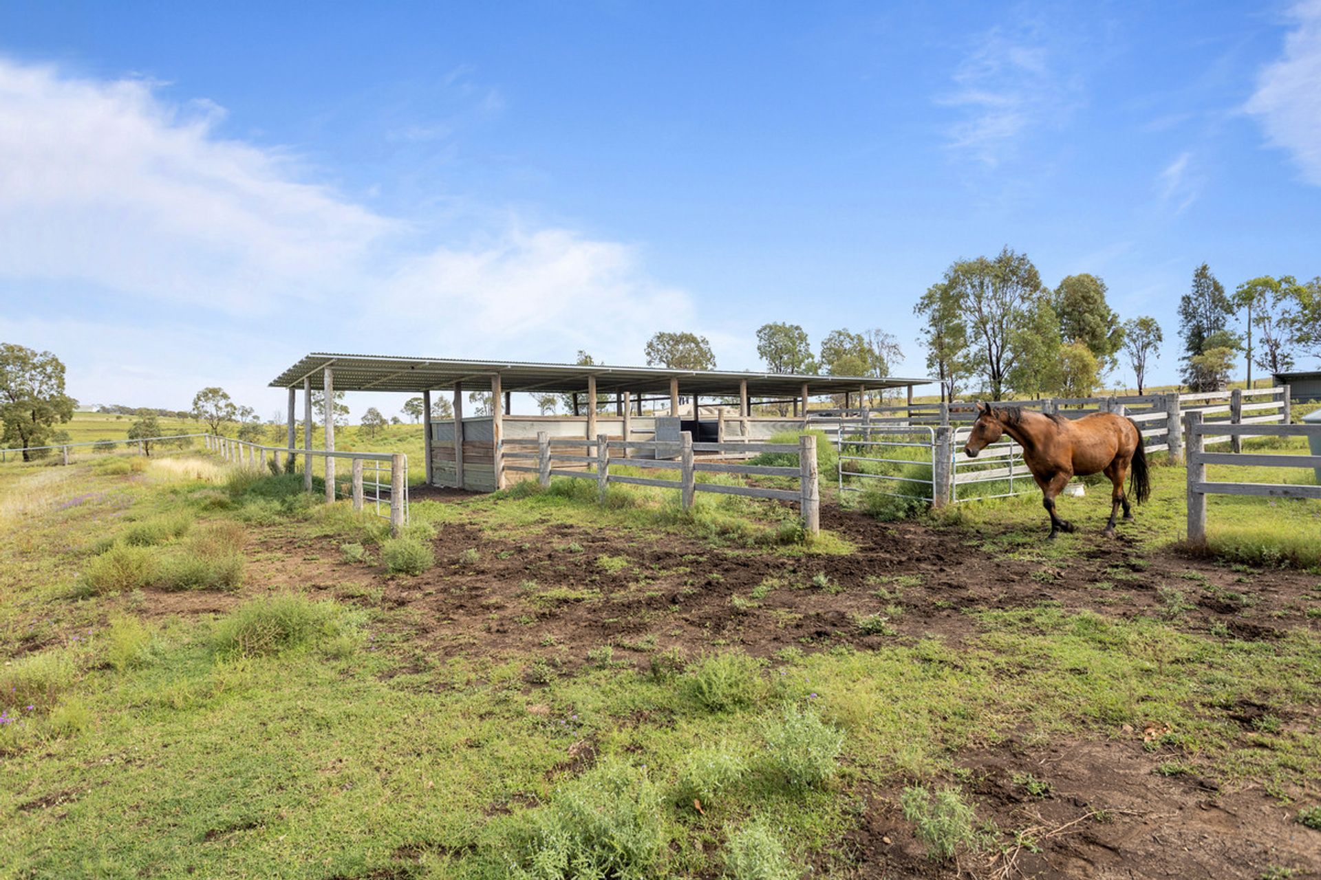 Three stall stables allow horses to be stabled night and day in the 6m x 6m diamond grid flooring with two day yards attached. A large 15m round yard as well as a fenced-off arena area finishes the comprehensive horse infrastructure.