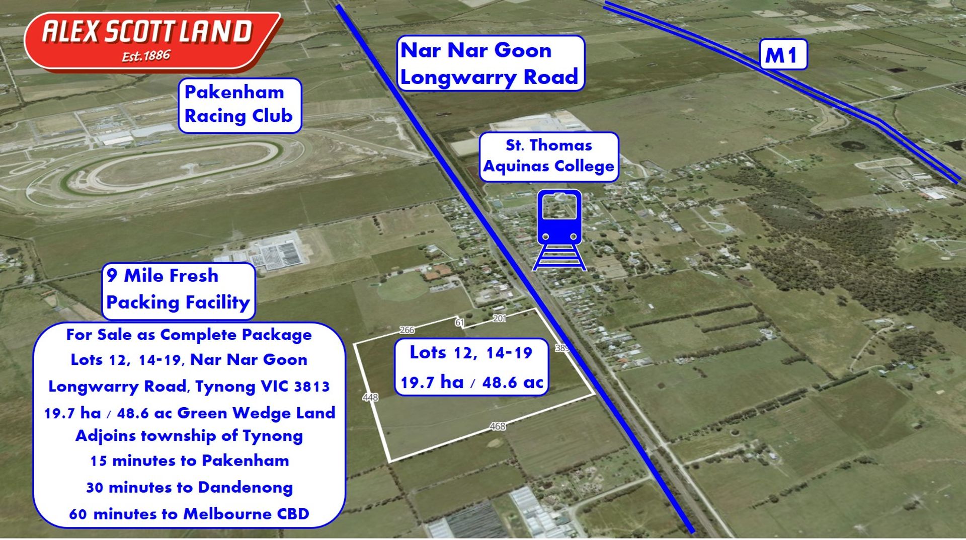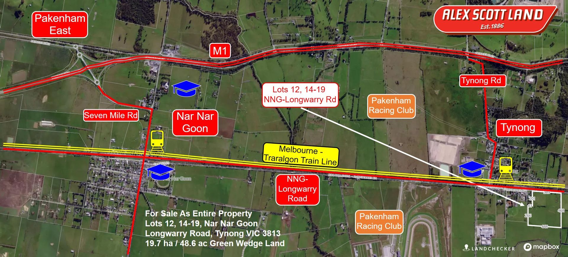 Alex Scott Land is pleased to offer Lots 12, 14-19 Nar Nar Goon Longwarry Road, Tynong VIC 3813. The property is 19.7 hectares / 48.6 acres of prime land ...