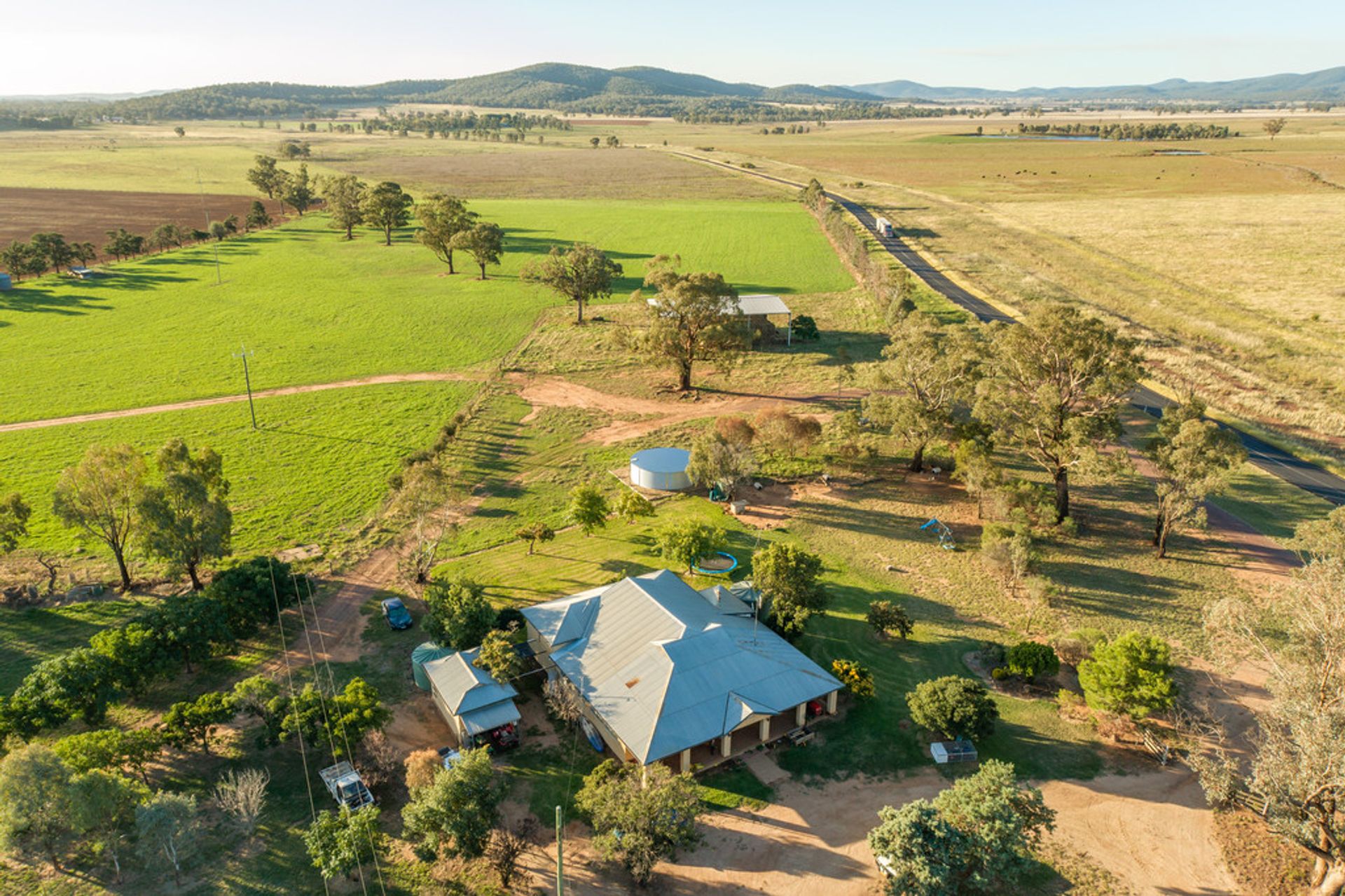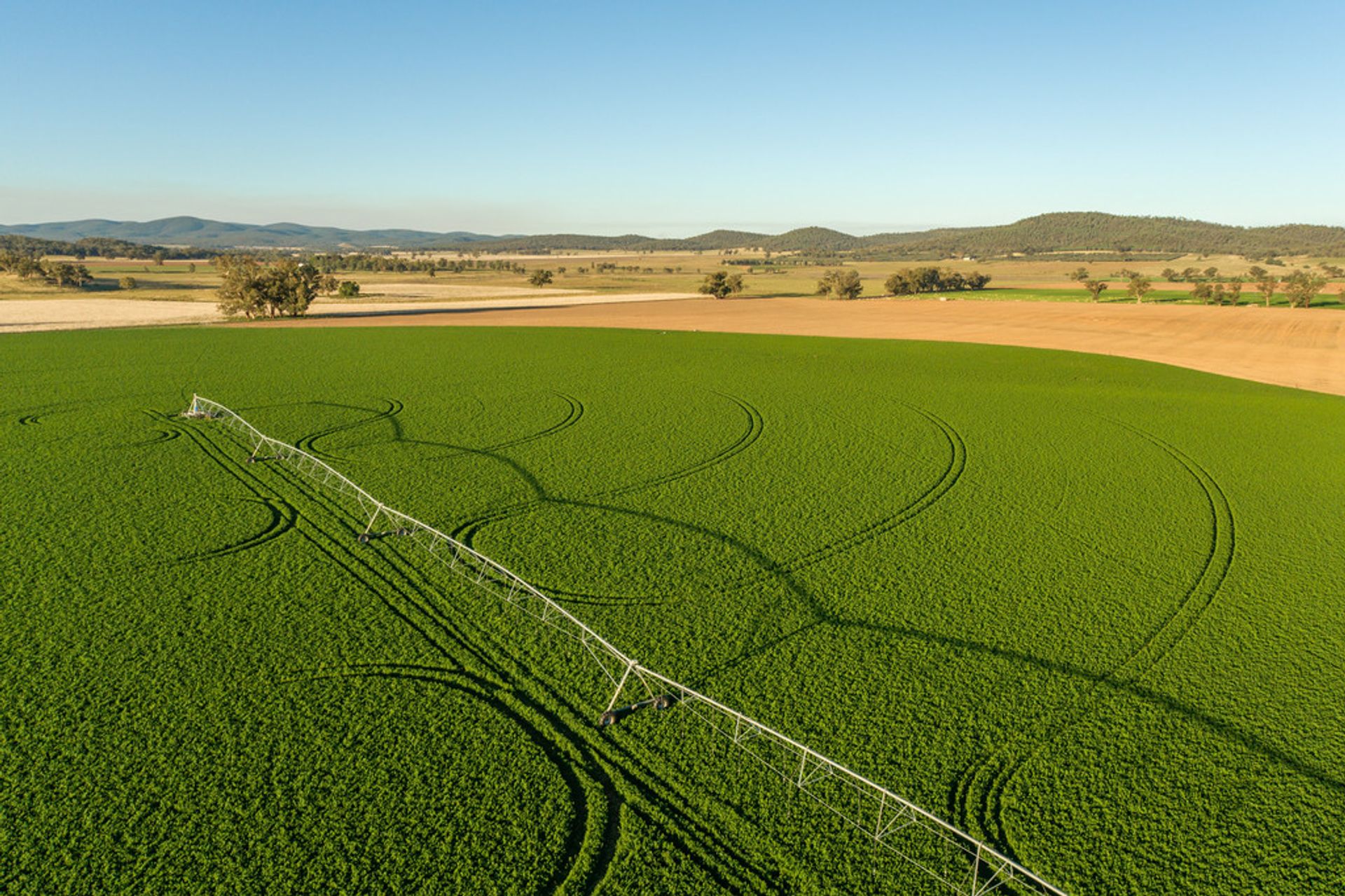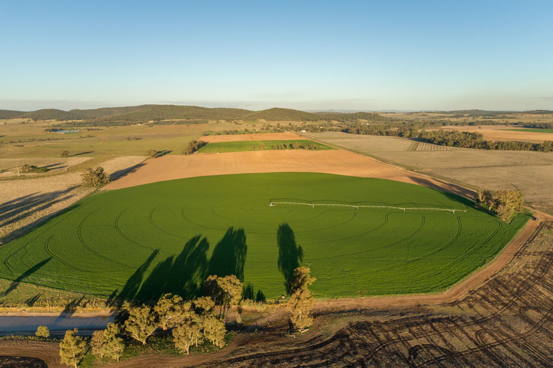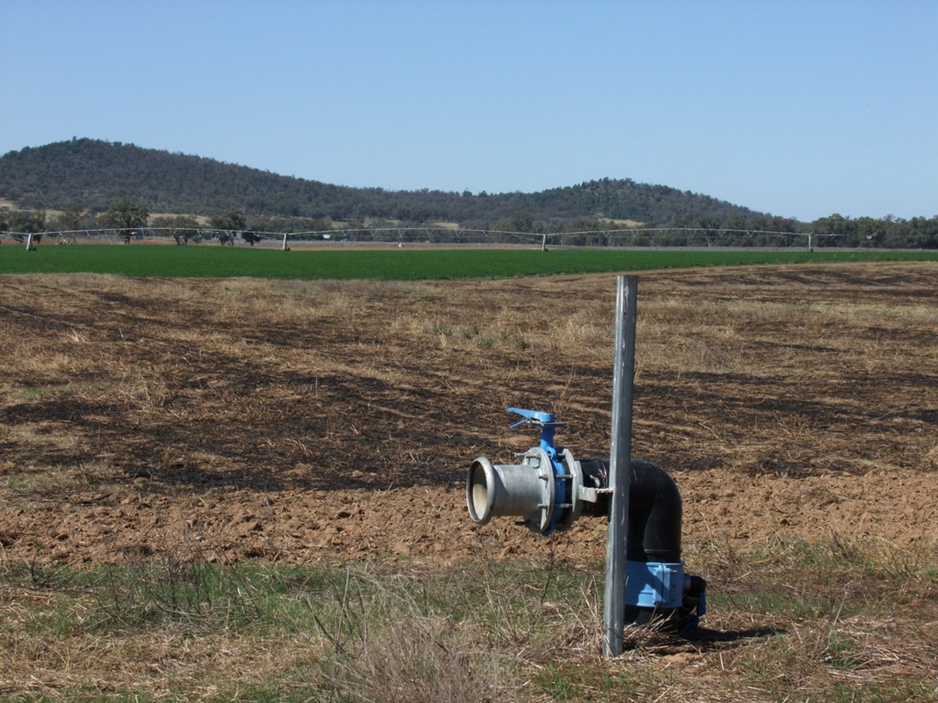 IRRIGATION: New mains and pump with 5 hydrants in place for pivots - covering an area allowing up to 250 acres to be irrigated with the existing system. Currently has 2 pivots which can be moved to each hydrant as required. 300 mgl water licence from the adjoin Lachlan River.