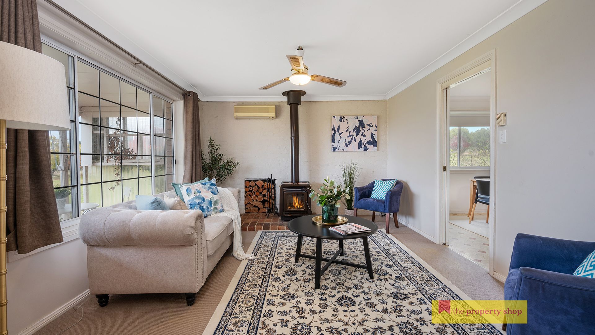 - Wood fire heating, reverse cycle air-conditioning, with ceiling fans throughout