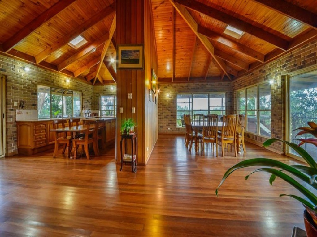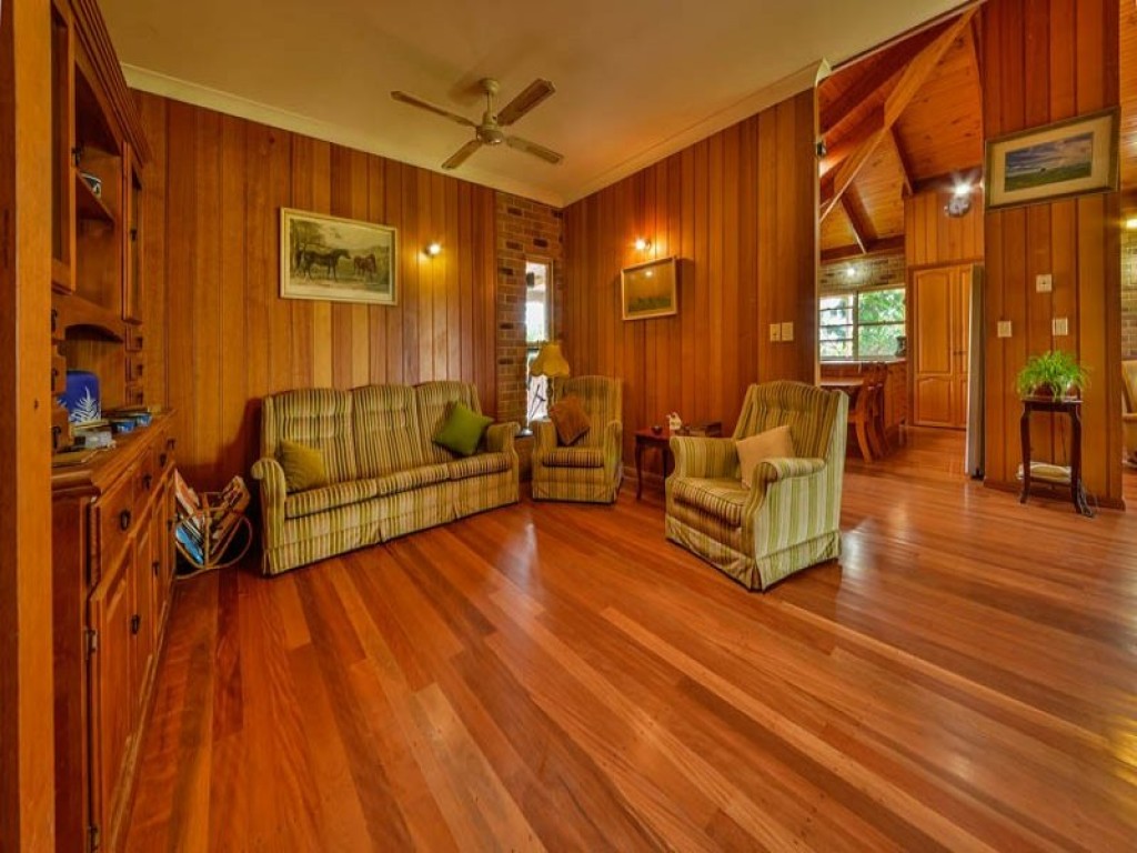 The double brick and timber home with its beautiful polished floors and 9 foot timber ceilings gives a warm country feeling throughout. There are 5 bedrooms with an ensuite and second bathroom. The Tasmanian Oak kitchen boasts quality stainless steel appliances, gas hotplates and a plumbed refrigerator. For those chilly winter nights there is a wood fired heater to keep the home warm and cosy and there are ceiling fans throughout the home.