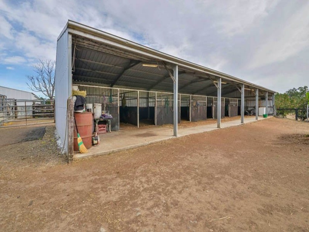 The stable building has six boxes each 4.2m x 4.2m in area, plus there are another 4 boxes in the machinery shed. A total of 10 which could be increased if needed. The property also boasts 3 cattle yards with a race, crush, ramp and shelter. The owner has identified an area for an easy to construct 1000 meter training track should one be needed.