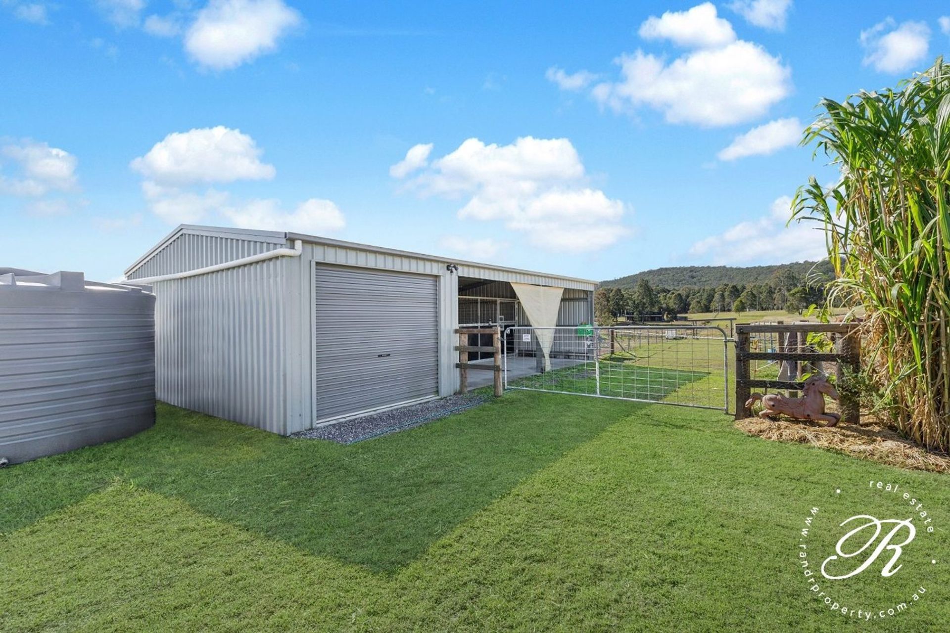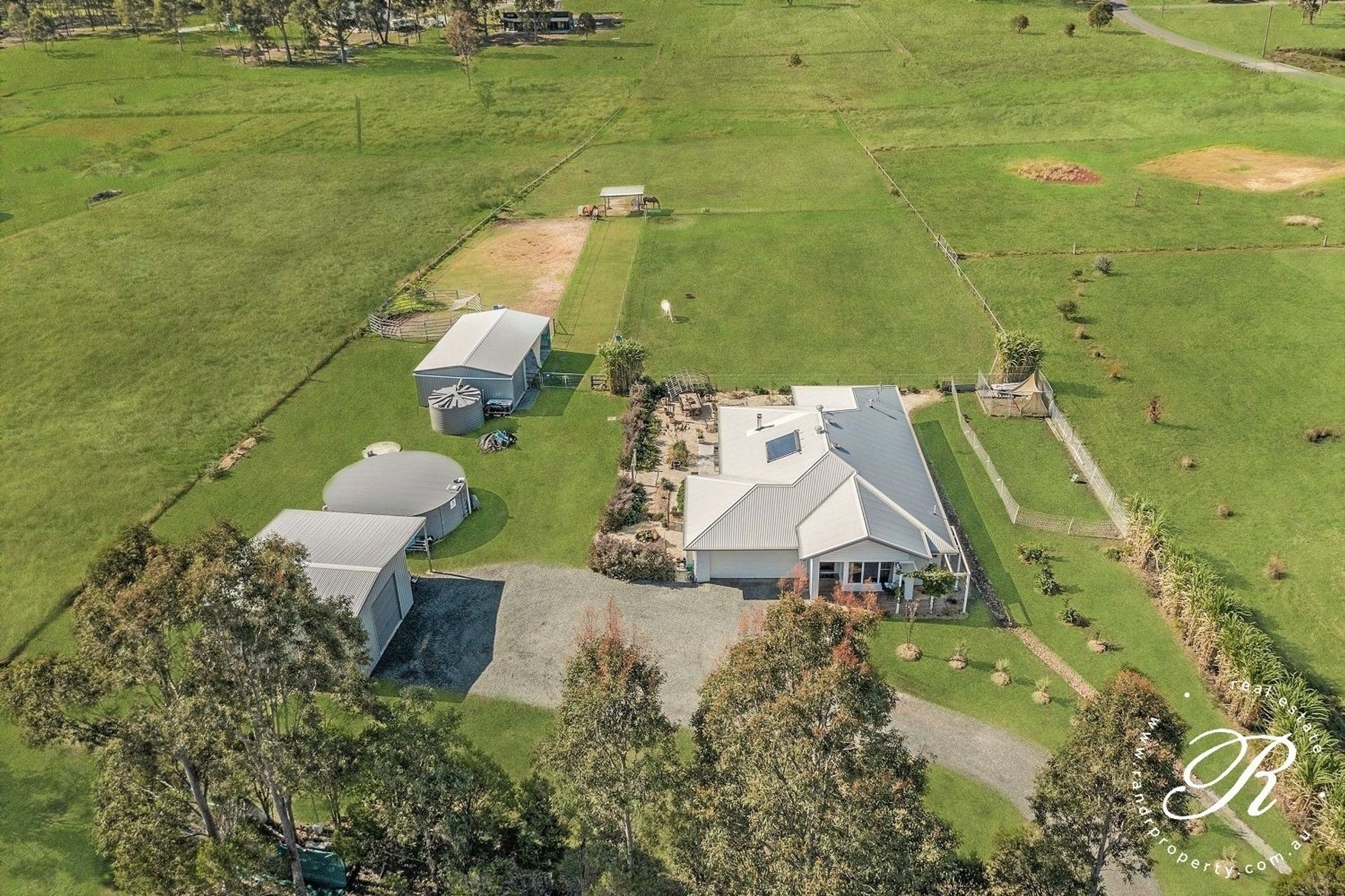 Set up for horses on 2.1 acres, the property has 3 paddocks, with a walkway down the middle making it easy to move the horses around and built-in stables with lights as well as a full secure garage sized tac room and lockable feed storage area. The property also has horse shelters in the paddock and water troughs. There is a 9x8m shed with roller door and side access with an additional carport.