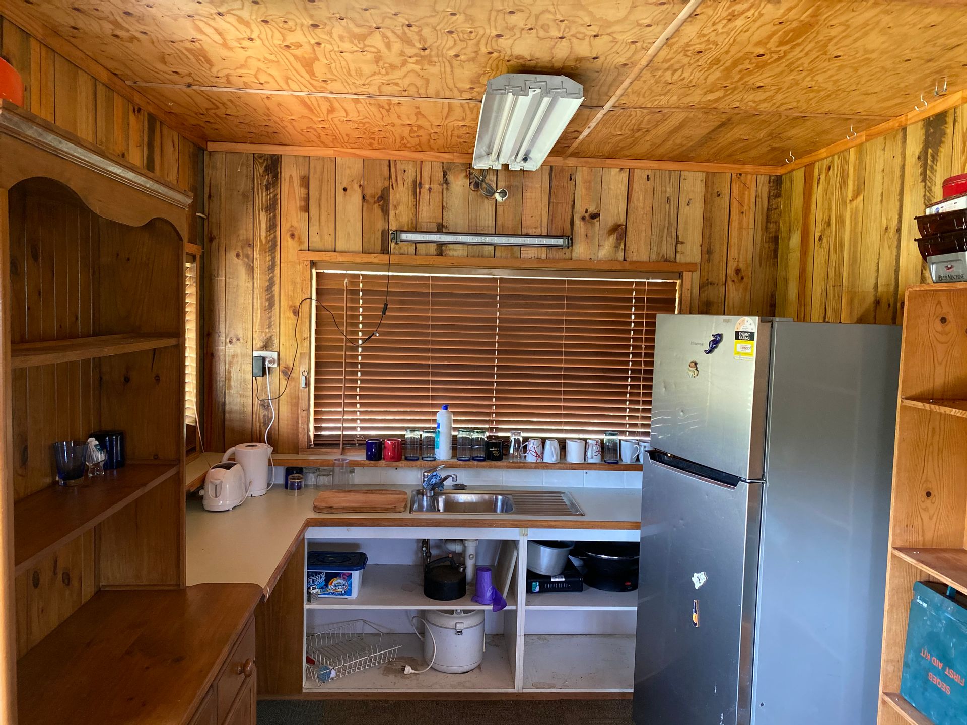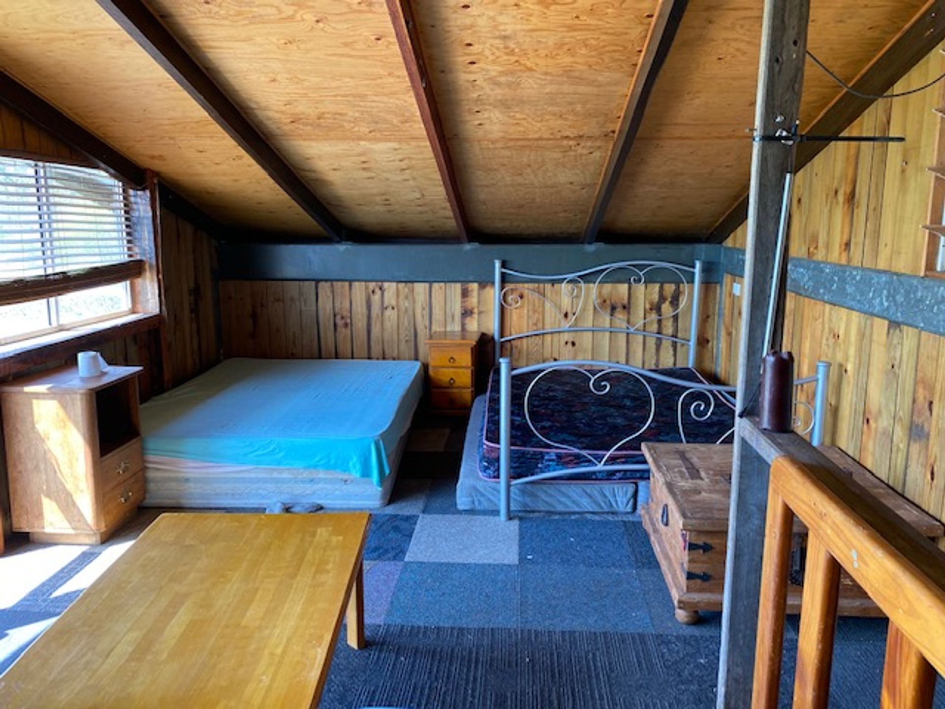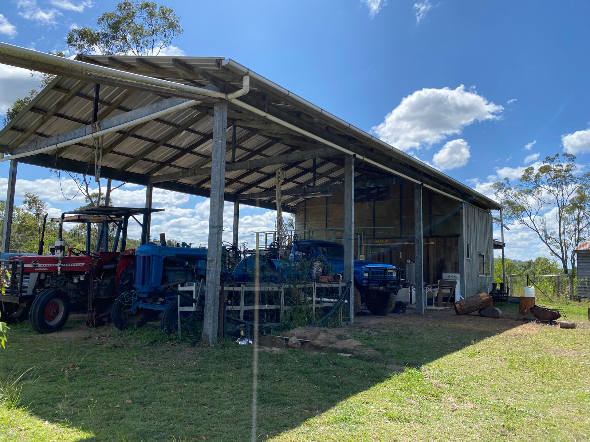 A 9m x 16 m shed is already here and it has 4 m x 9 m of livable quarters which includes a shower, vanity, kitchen, outside laundry tub and loft bedroom which has room for a couple of beds . There is a septic toilet outside and a 7000 gallon rainwater tank plus 3 dams. Rates are approx 1300 pa