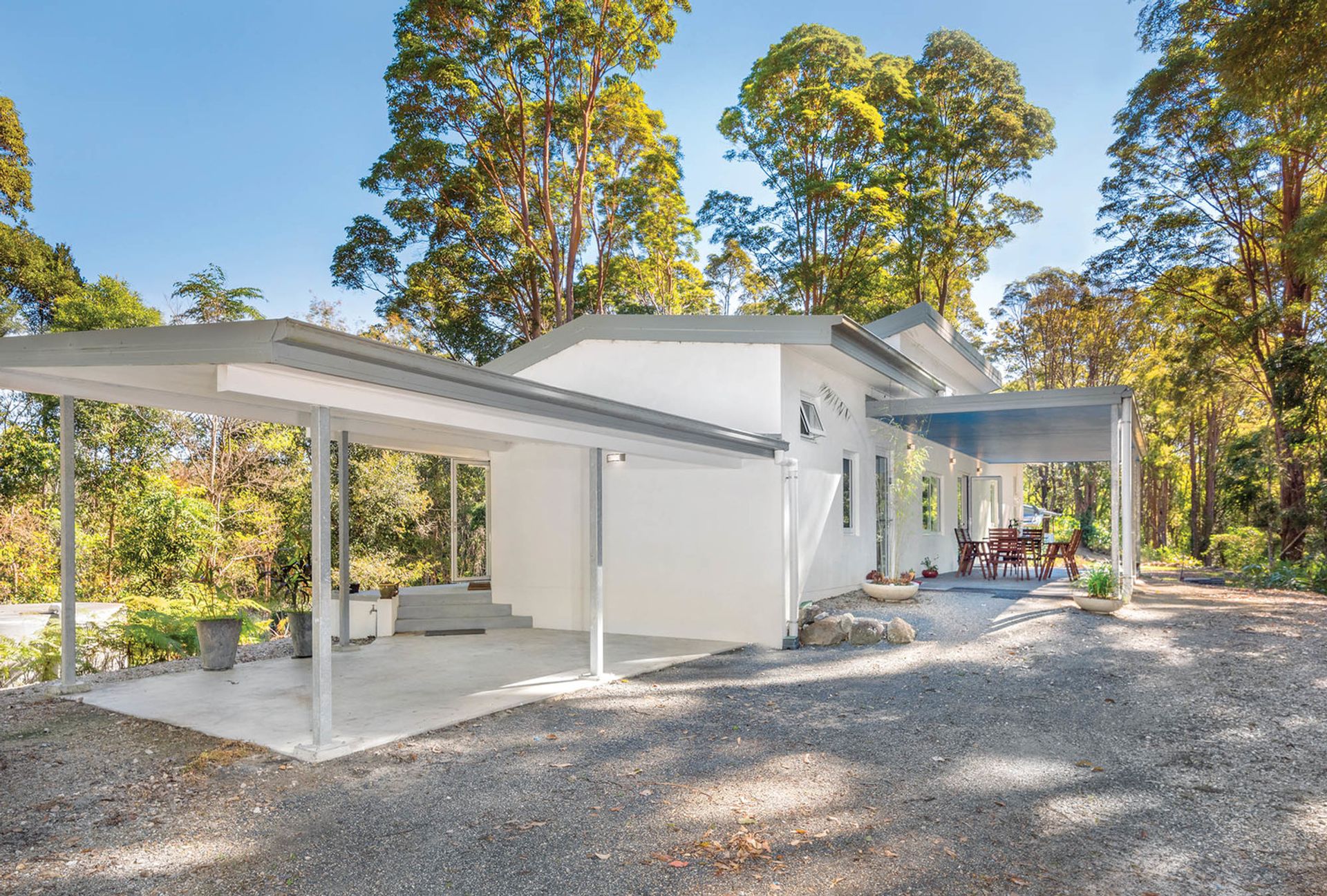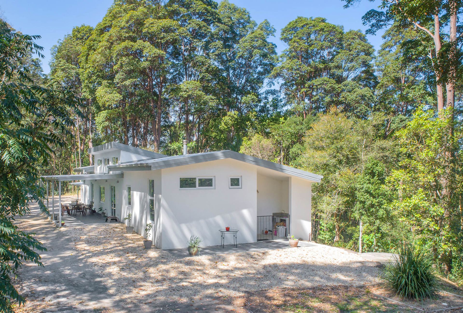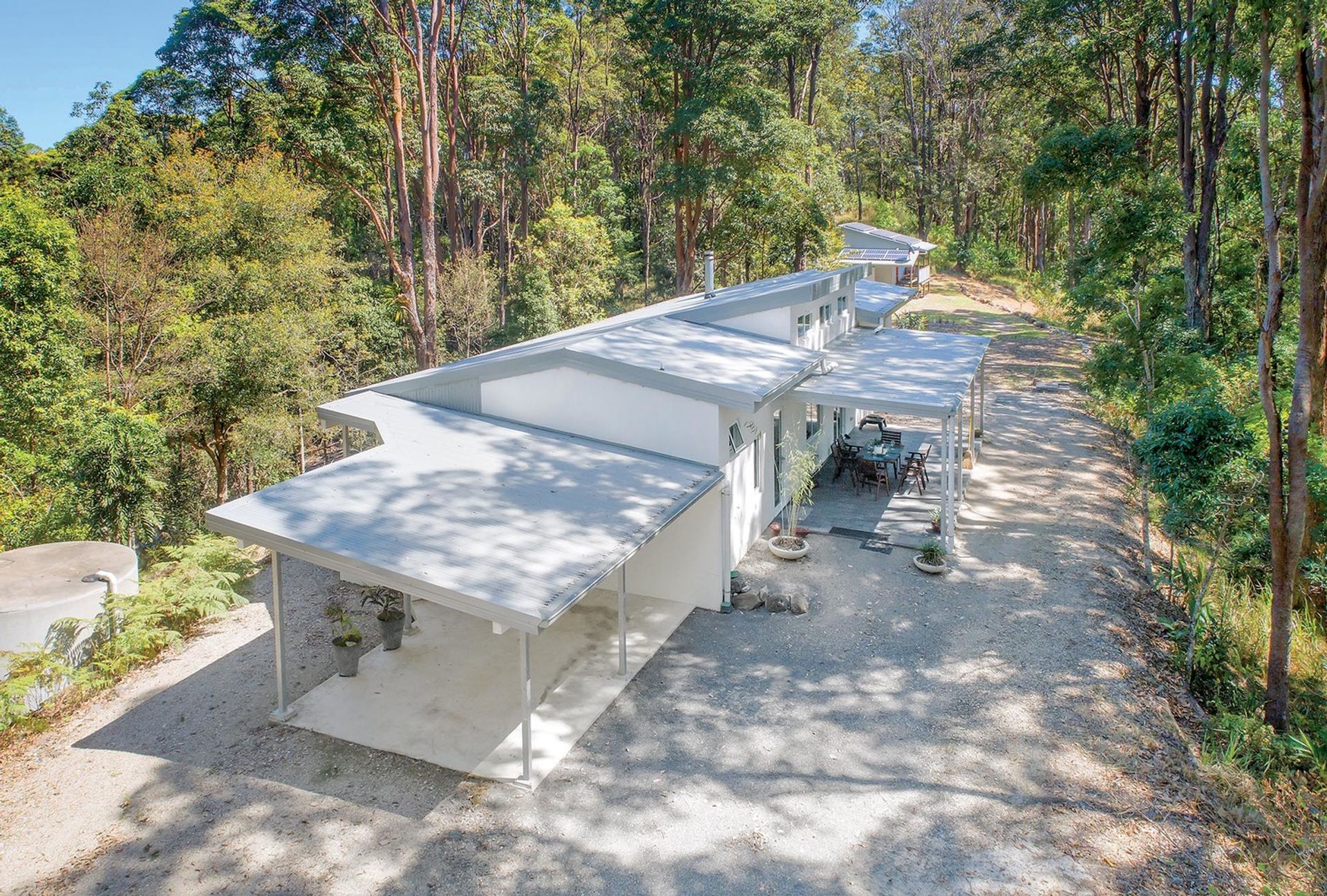 • This home is built on the ridgeline, the surrounding perimeter regenerated rainforest with tall timbered slopes creating a natural Koala corridor. Home to native flora and fauna including rare and endangered native species like the Red Boppel Nut tree. Meandering tracks lead throughout the forest descending to the lower land with potential to continue creating your own private sanctuary.
