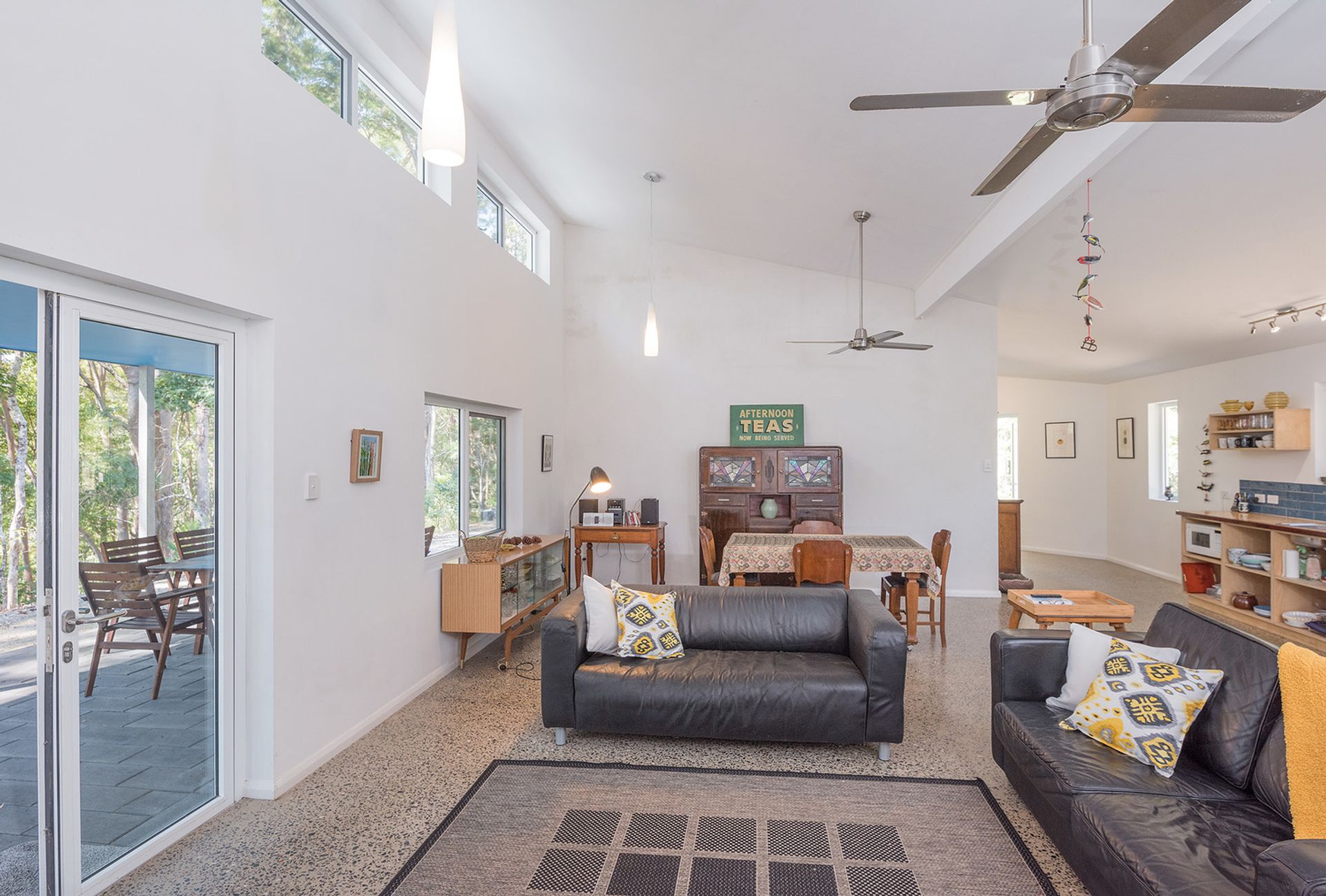 • Super open plan living, raked ceilings, polished concrete floors and highlight windows that pour natural light into the cool interior. Double doors spill open to a large, outdoor north facing, covered patio providing the ultimate entertainment space in all weathers.