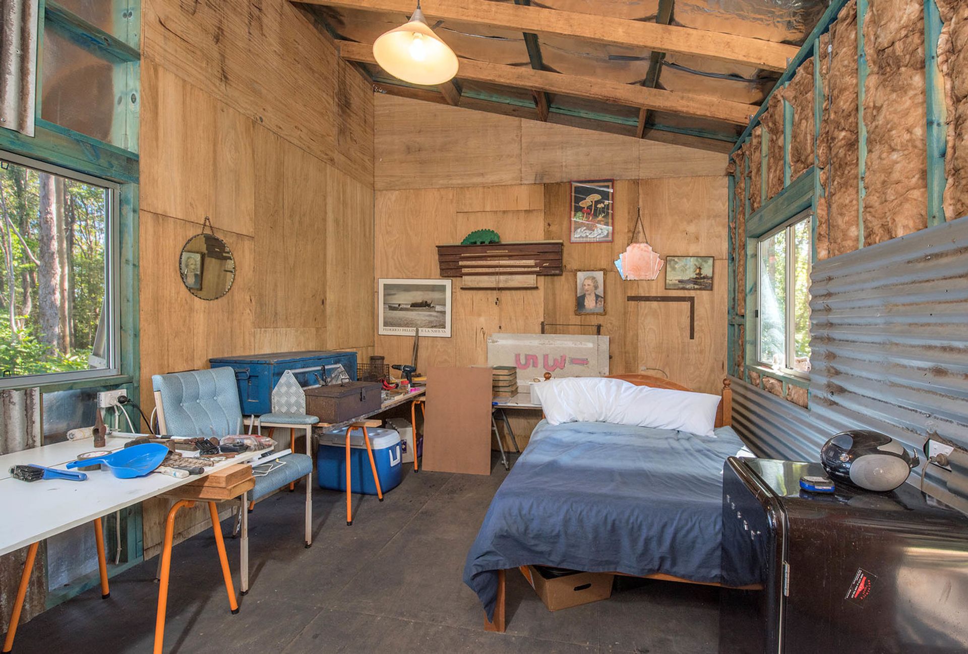 • Studio/workshop, well-constructed timber and colourbond with high ceilings, semi-lined, power and 10,000L water tank. ‘Carport’ style work area and north facing covered verandah.