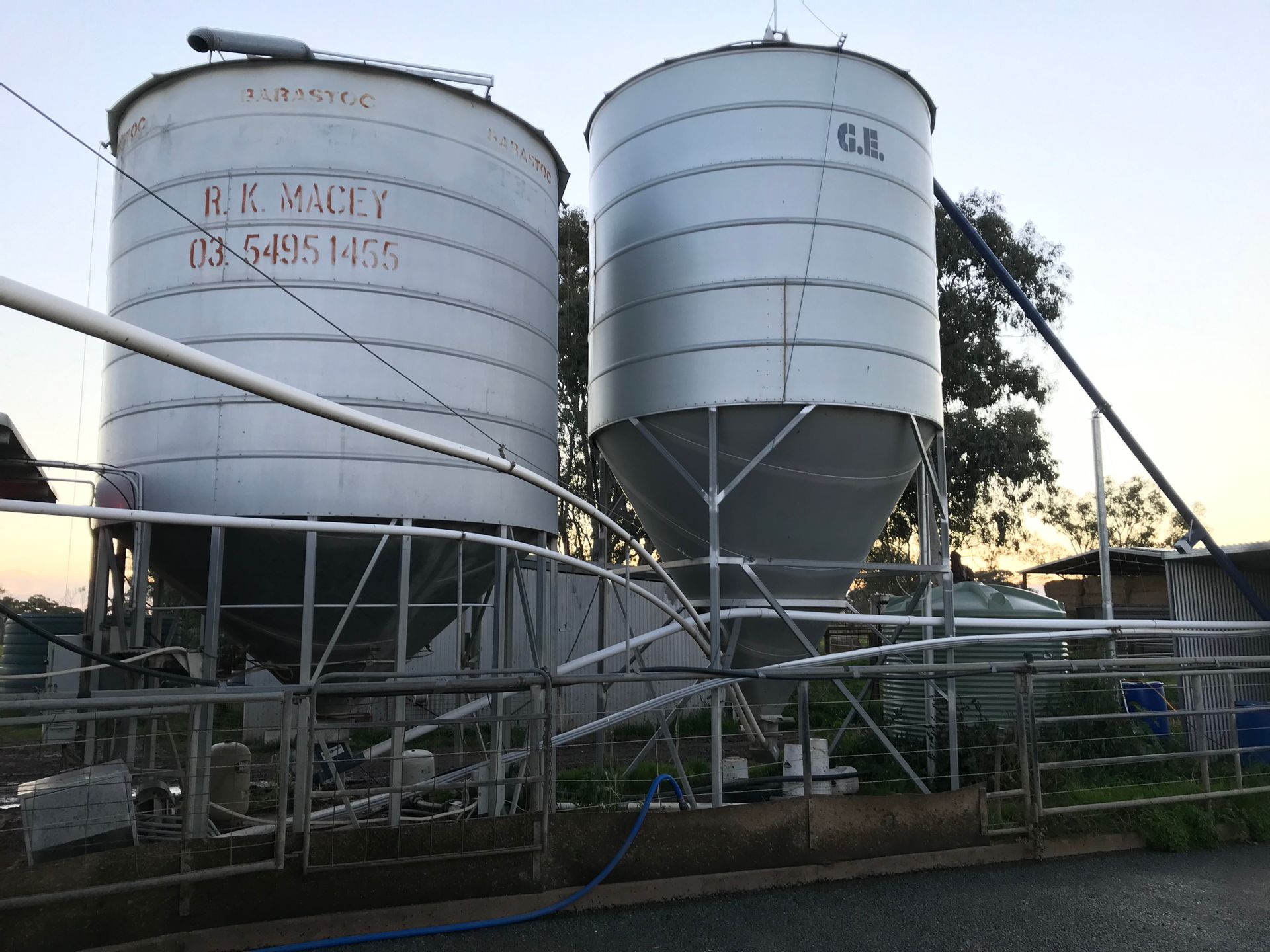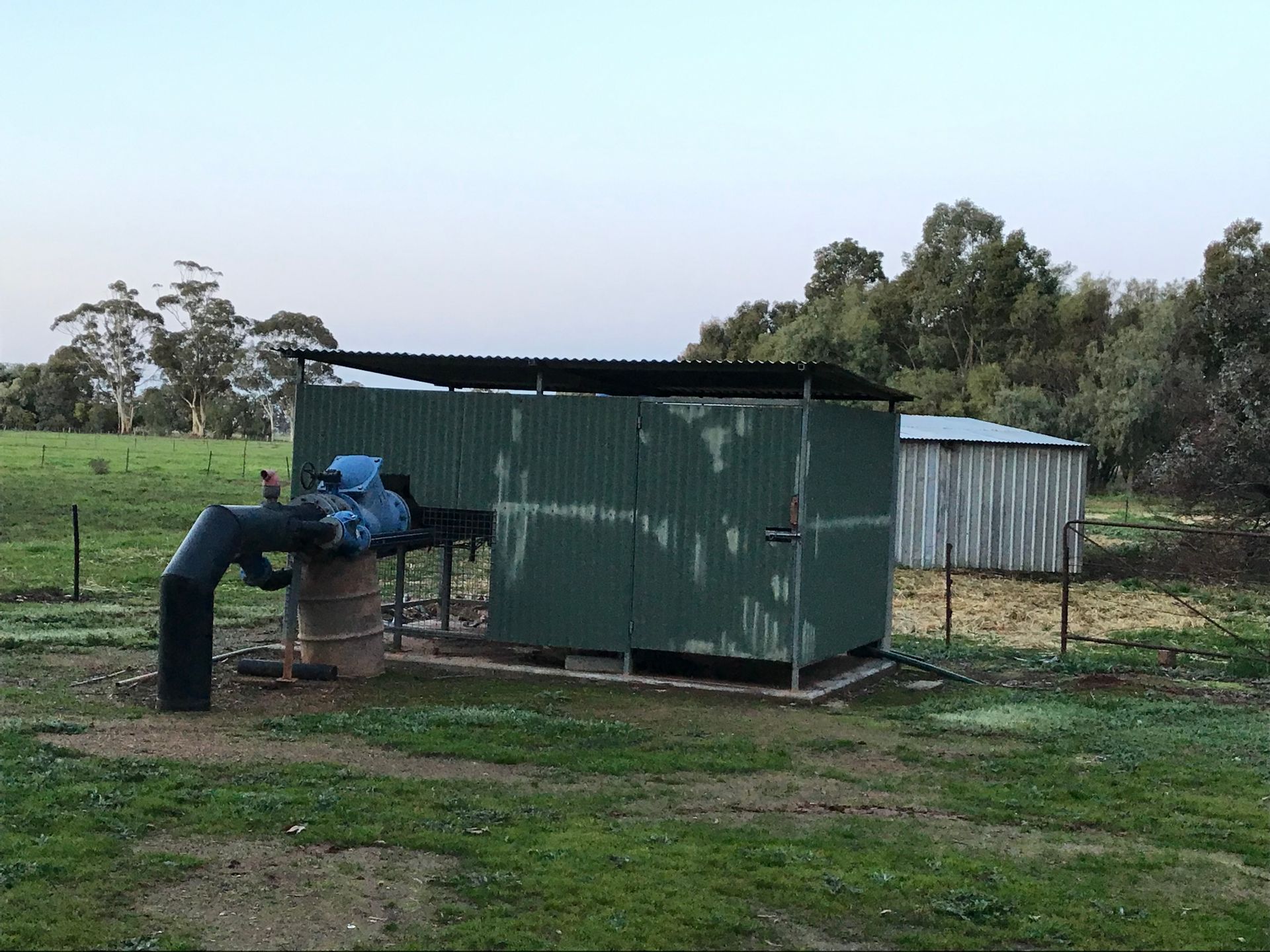 The bore runs 24/7 supplying 10 megalitres per day via highly efficient electric motor & pump with extensive solar power supply. The Goulburn Murray water is gravity fed to a second pump site to assist or operate independently to the same pipe & riser system.