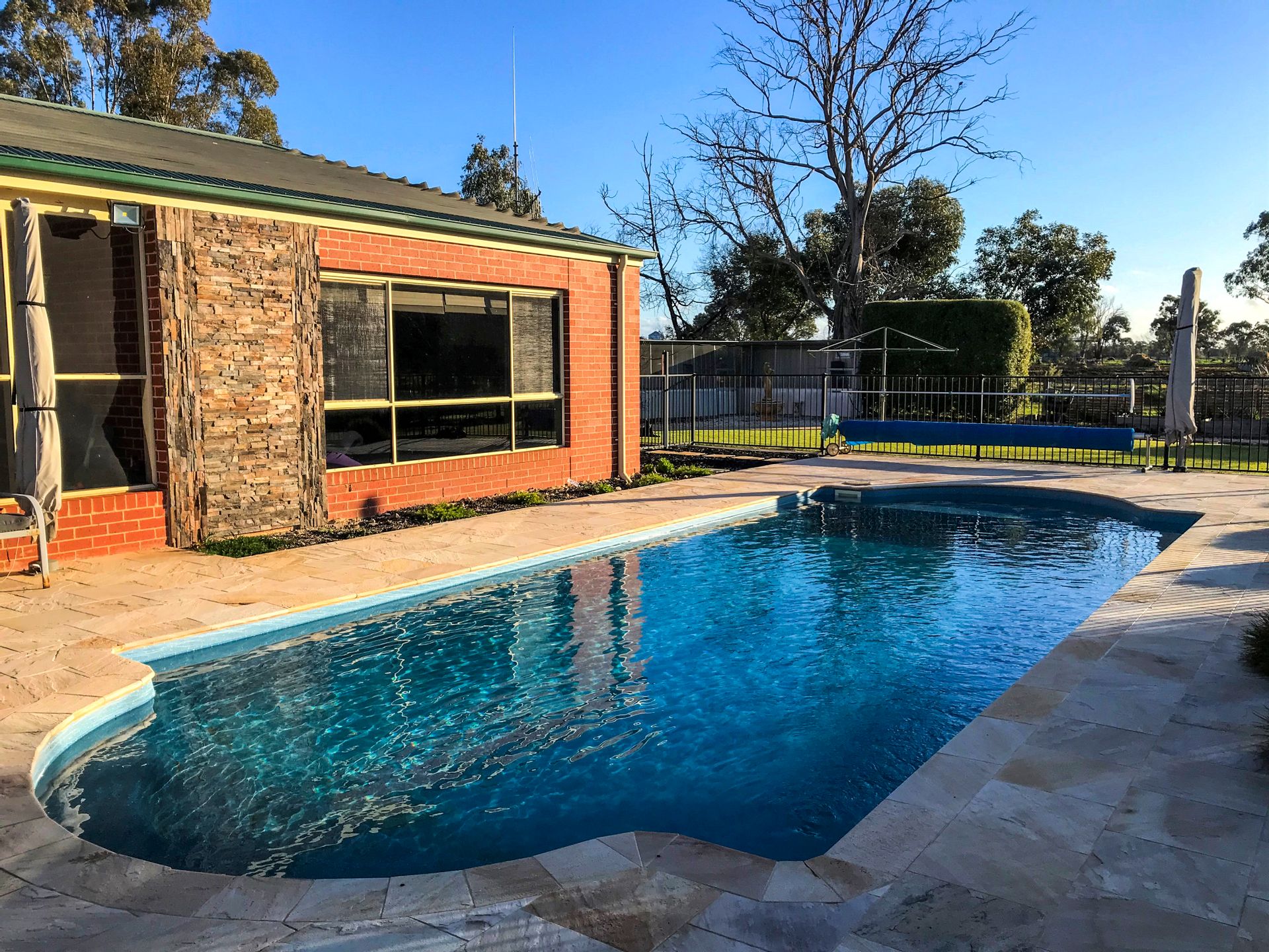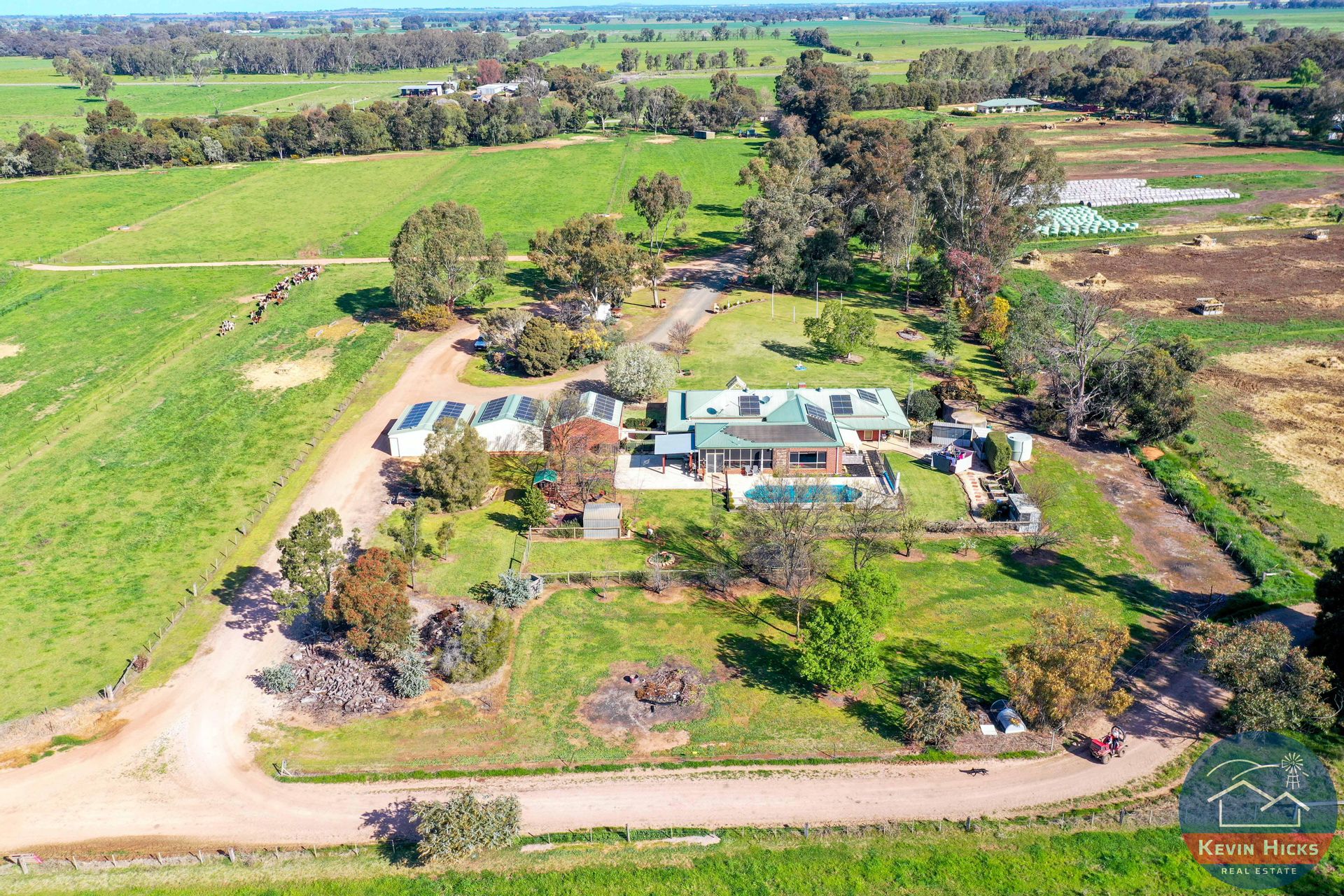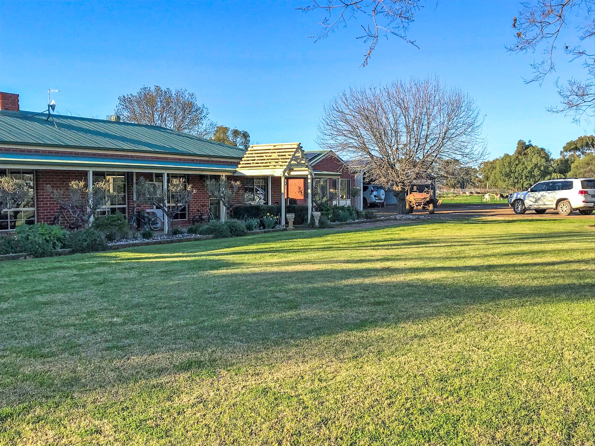 There are 3 homes plus a cottage on the farm. The main home is most desirable, very well built, 4-bedroom brick veneer home only 18 years old with renovations and extensions. Open living, large fully enclosed alfresco dining room, inground pool and beautiful gardens and surrounds. A high quality living standard.