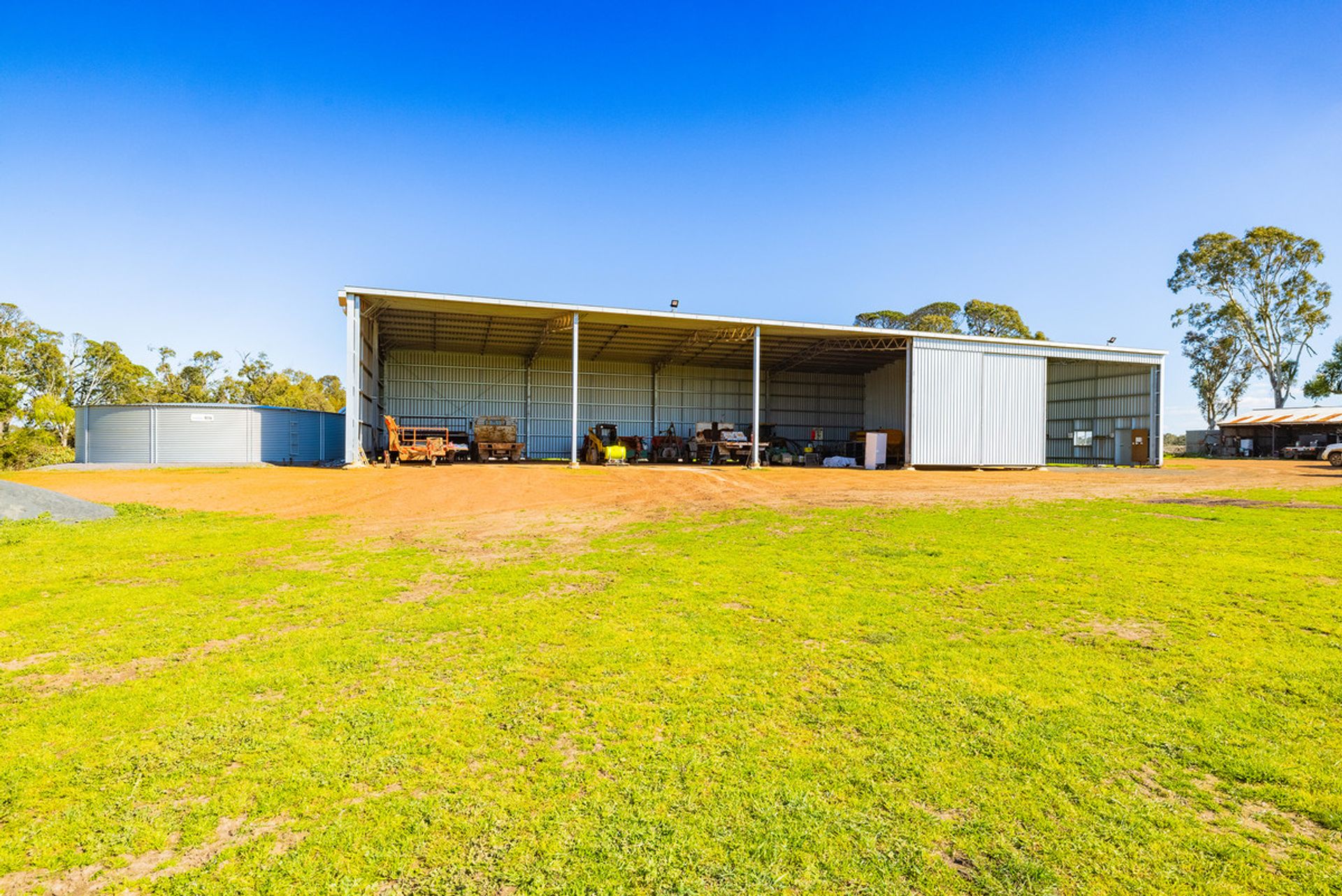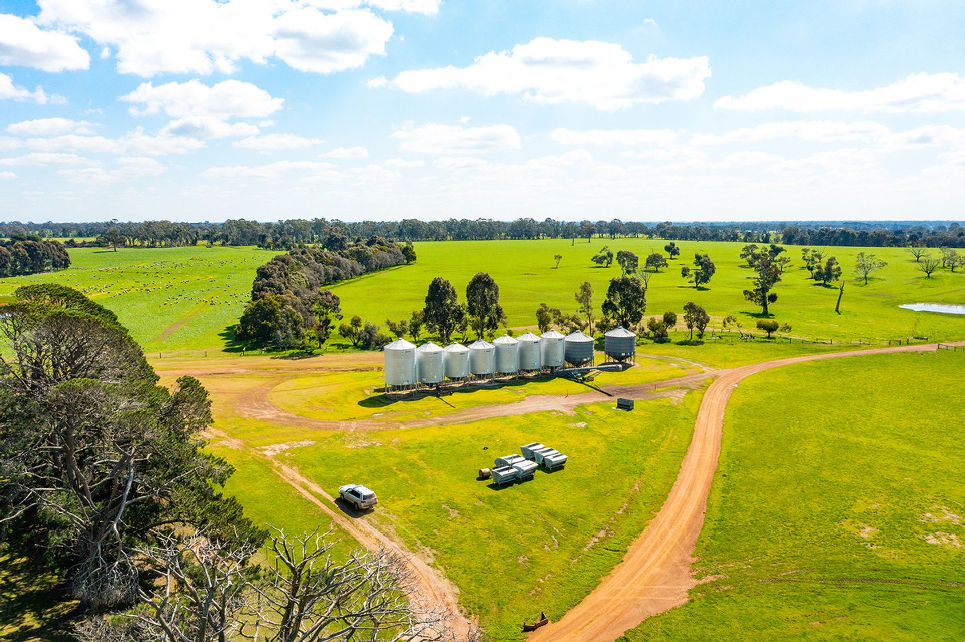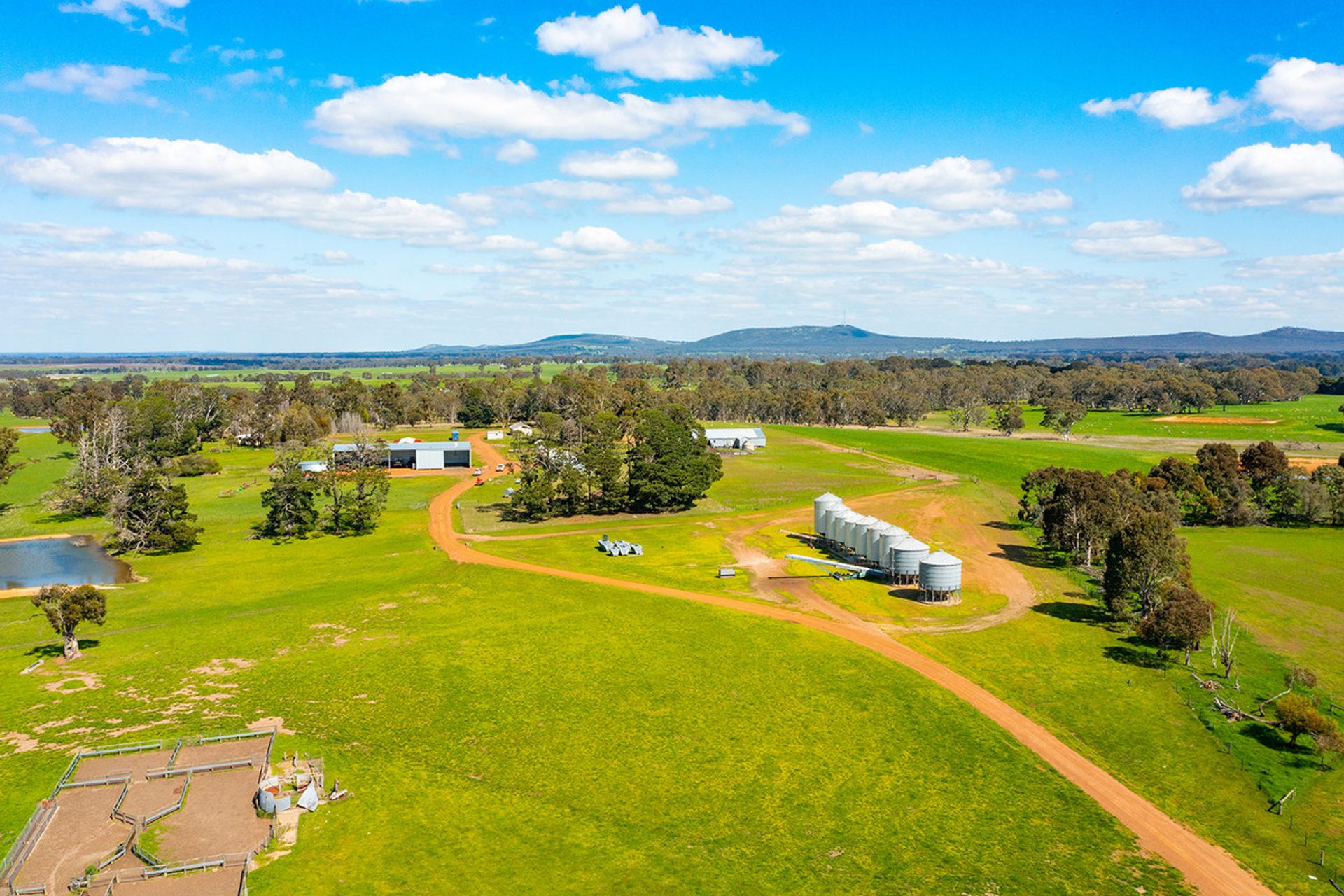 4-stand GI woolshed and yards, steel cattle yards, and significant on farm grain/