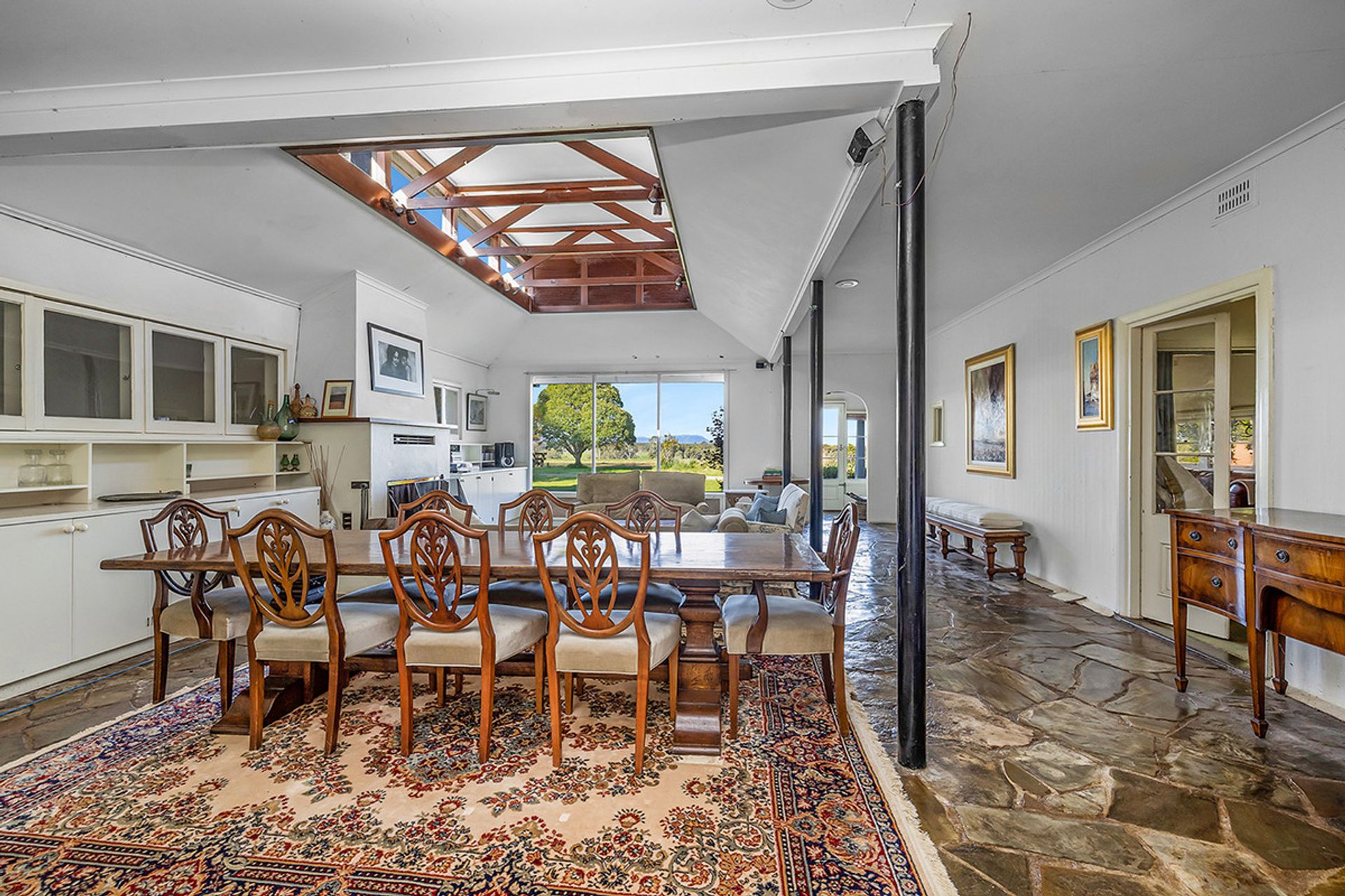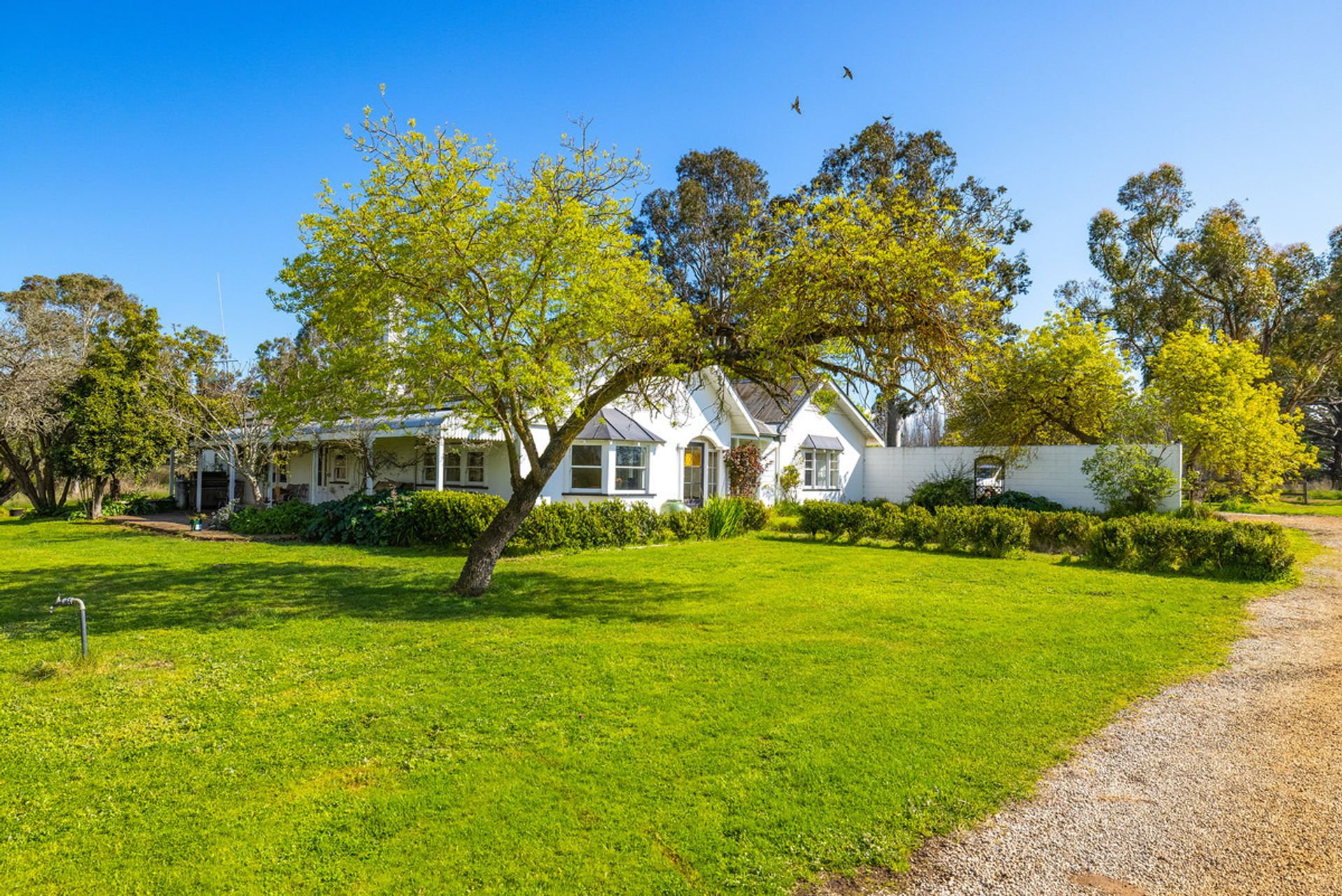 Uniquely designed 4 brm homestead in parklike gardens, 2 other homes, 4-stand woolshed massive multipurpose machinery/hay shed (45mx18m), steel cattleyards, 9 grain silos.