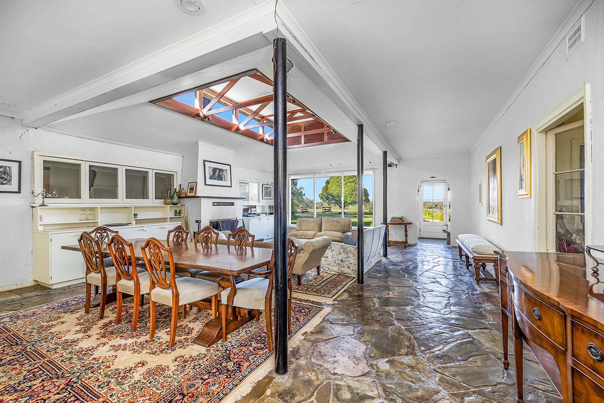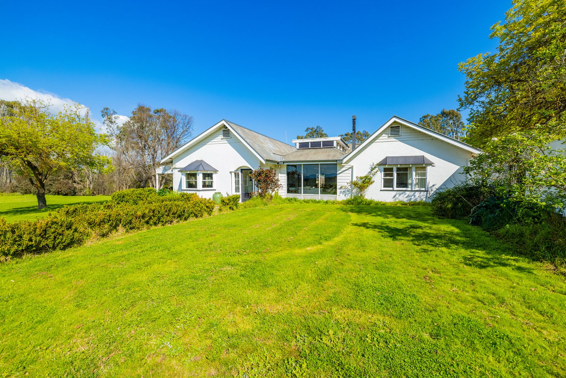 Set in a parklike garden, the uniquely designed mid-century homestead (c1956)