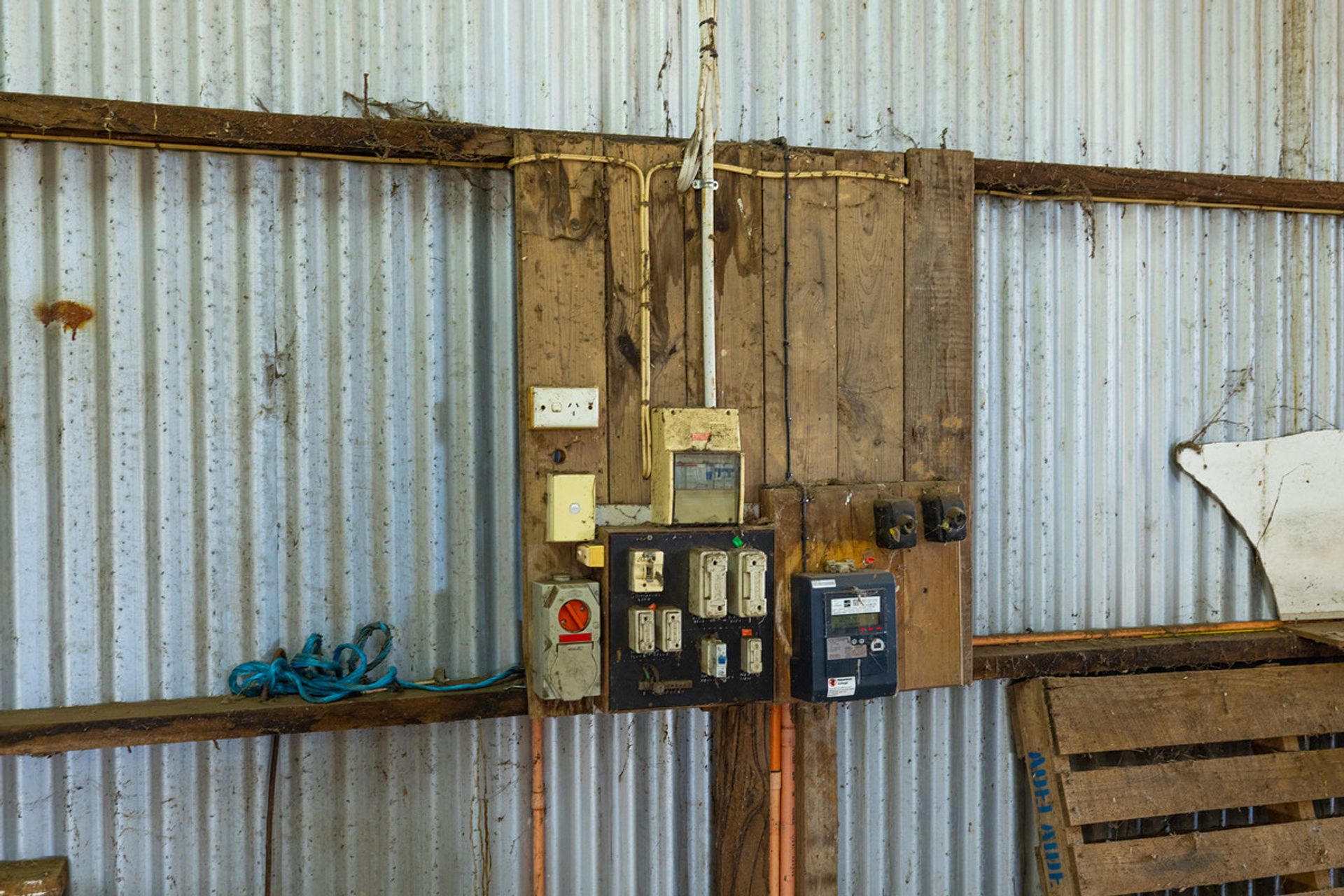 Power connected with 240/440 volt power outlet (for woolpress) in woolshed. Electric pump on bore.